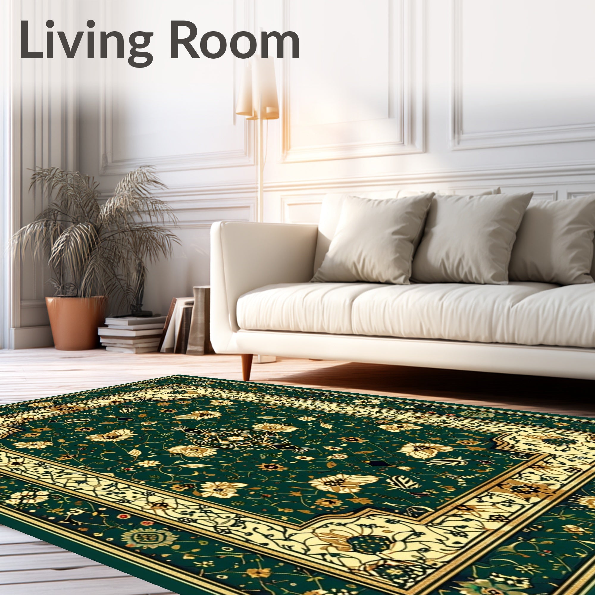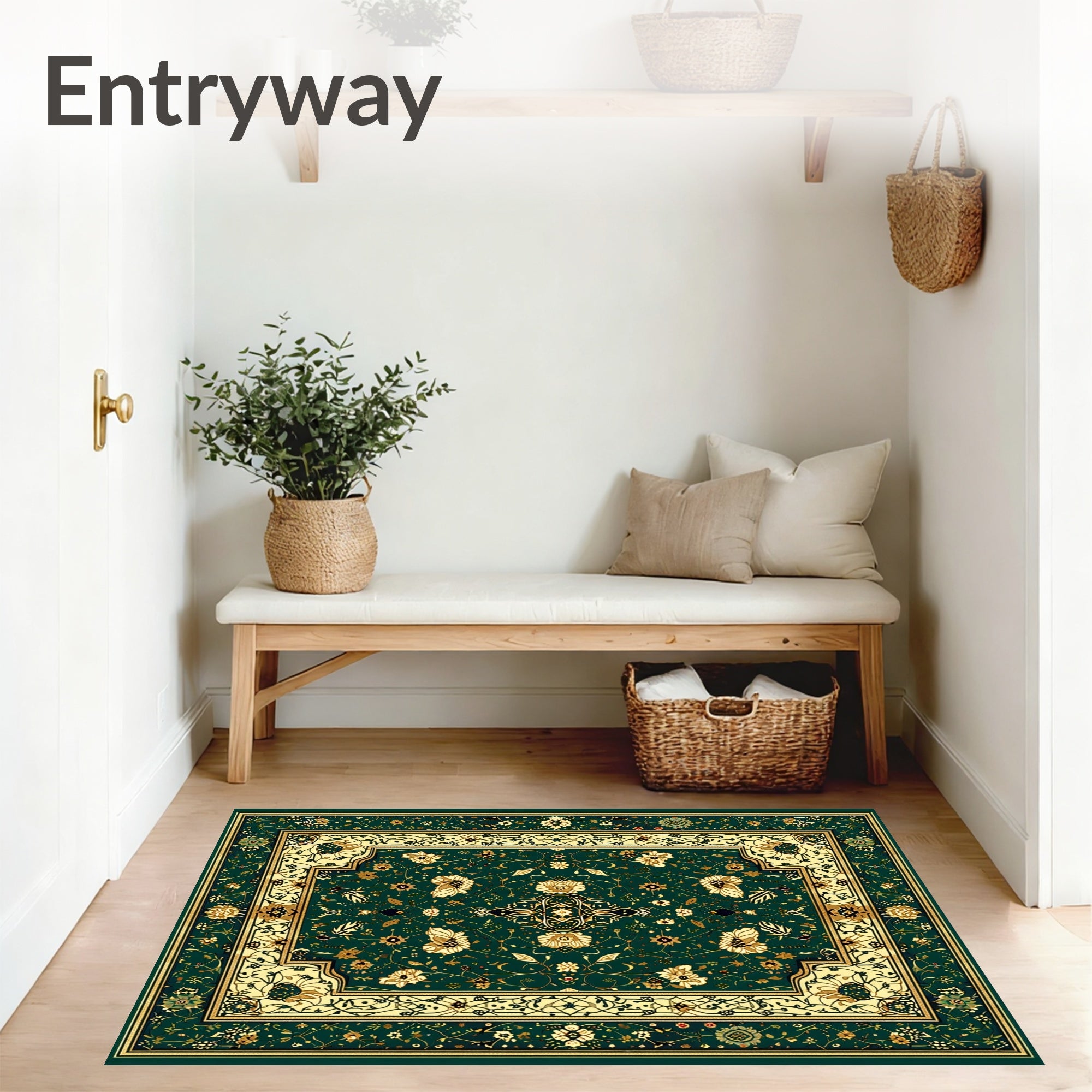 Ultra Soft Area Rug, Non Slip, Stain Resistant, Washable Area Rugs for Living Room, Bedroom, Intricate Boho Area with Abstract Animal Motif and Floral Accents(Green) Overview: