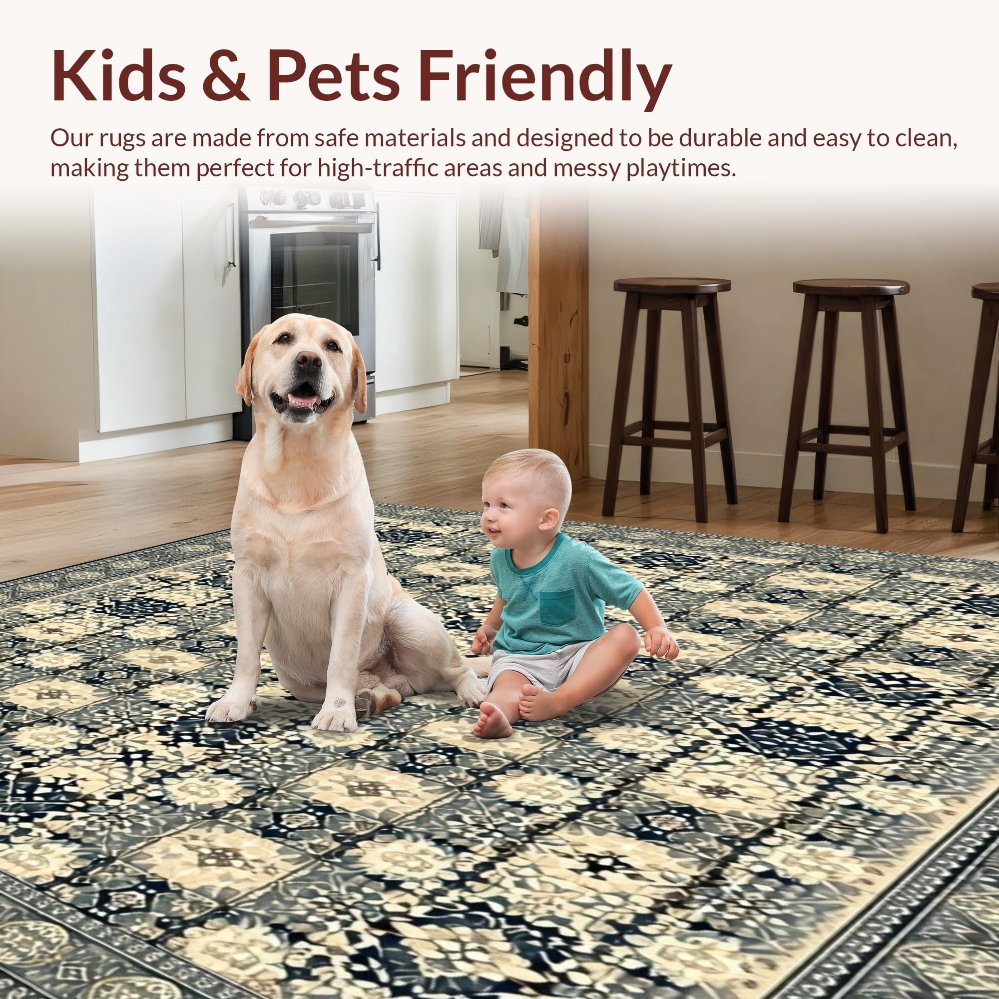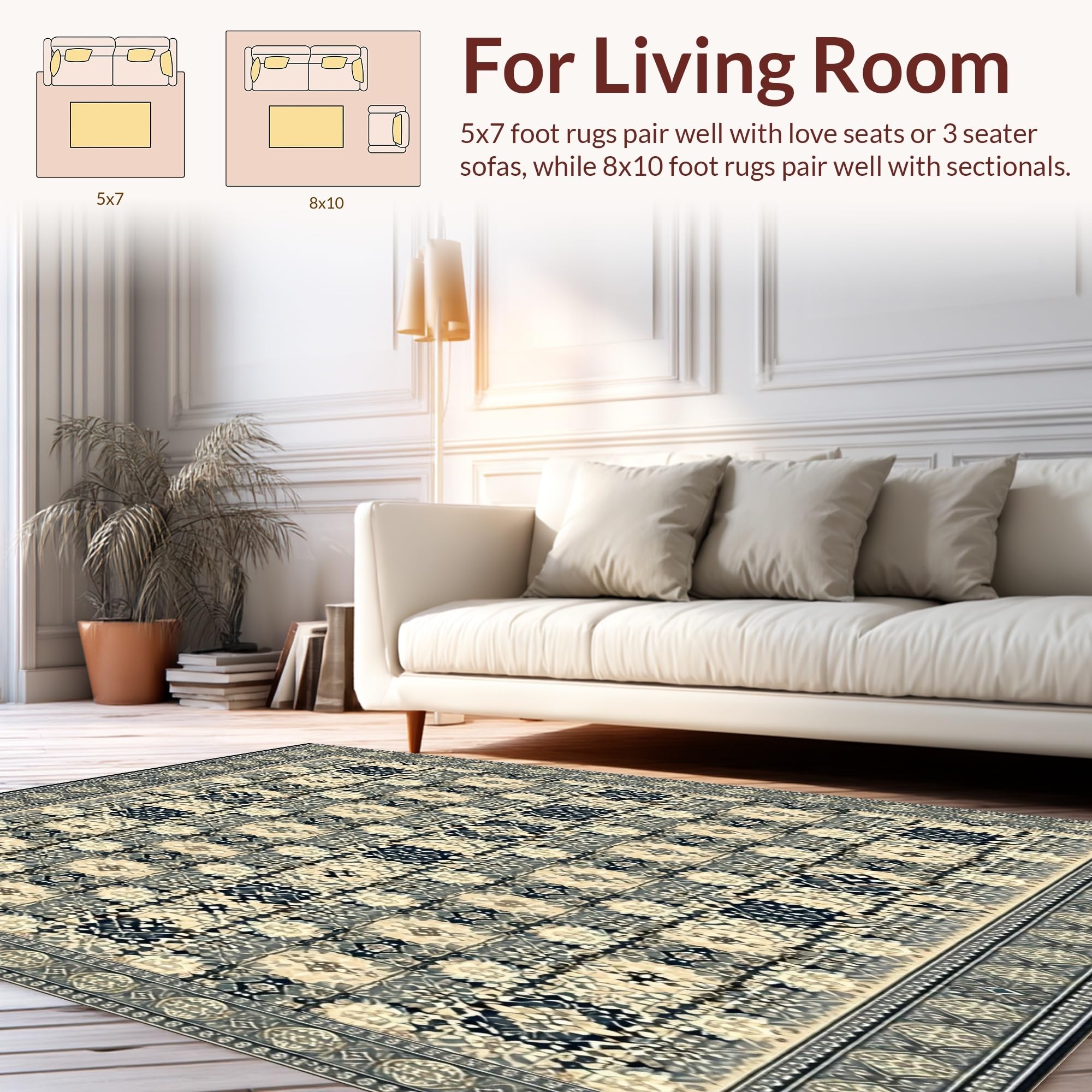 Ultra Soft Area Rug, Non Slip, Stain Resistant, Washable Area Rugs for Living Room, Bedroom, Intricate Cross Area with Beige and Charcoal(Beige) Overview: