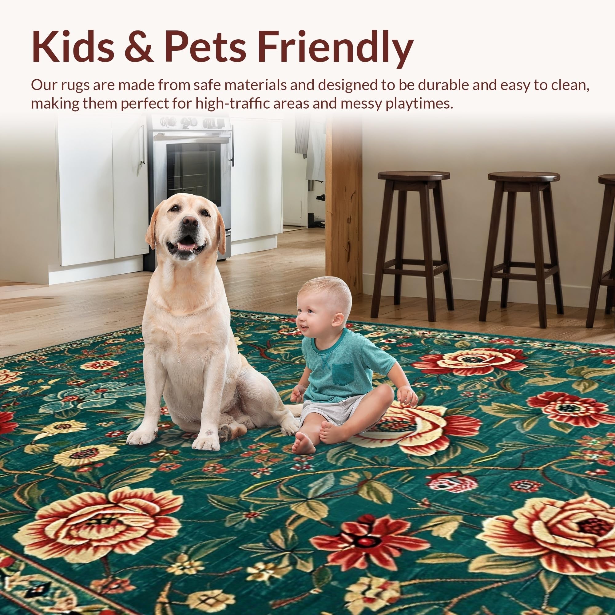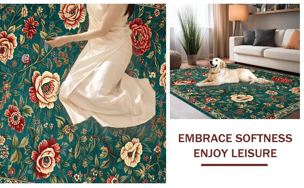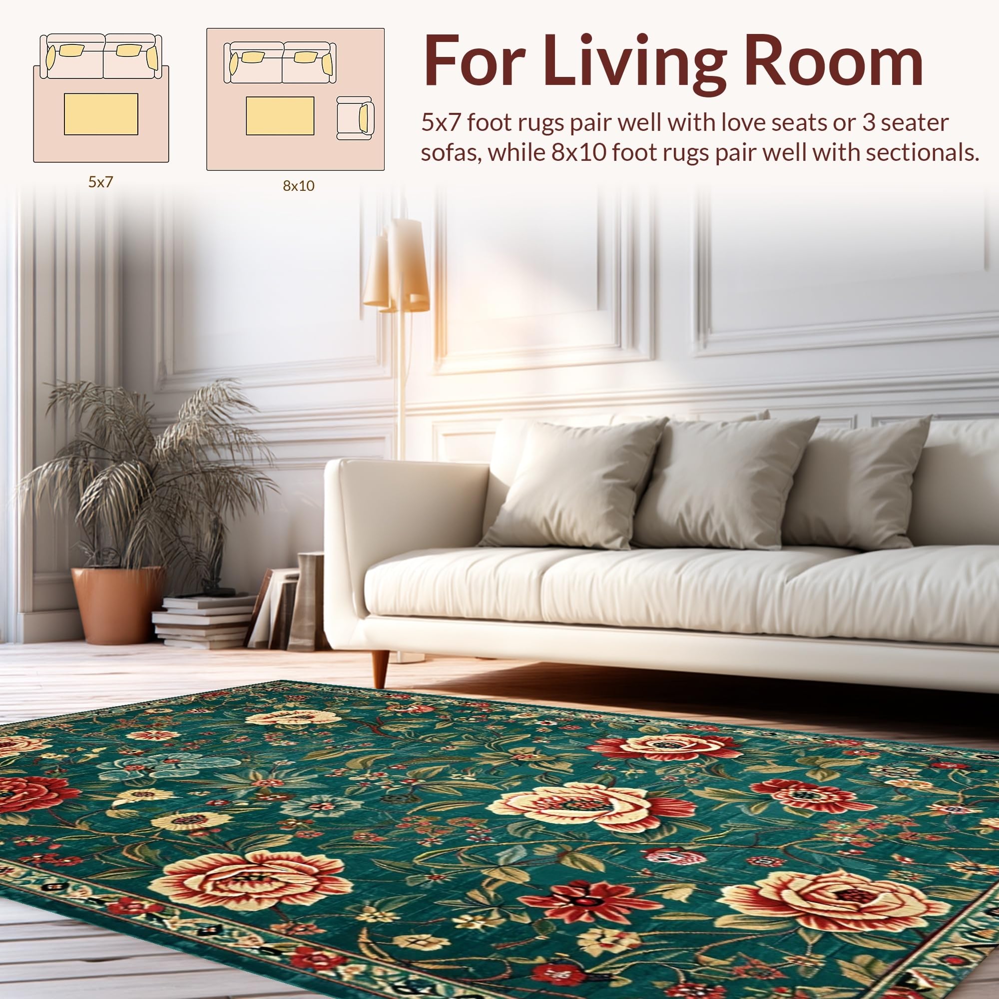 Ultra Soft Area Rug, Non Slip, Stain Resistant, Washable Area Rugs for Living Room, Bedroom, Intricate Floral Art Nouveau Style(Green) Overview: