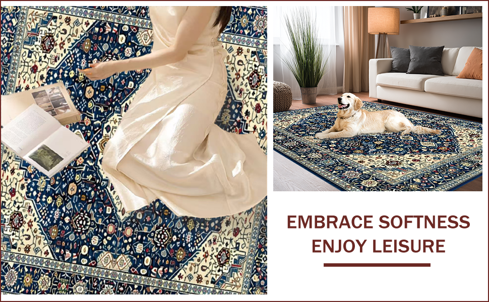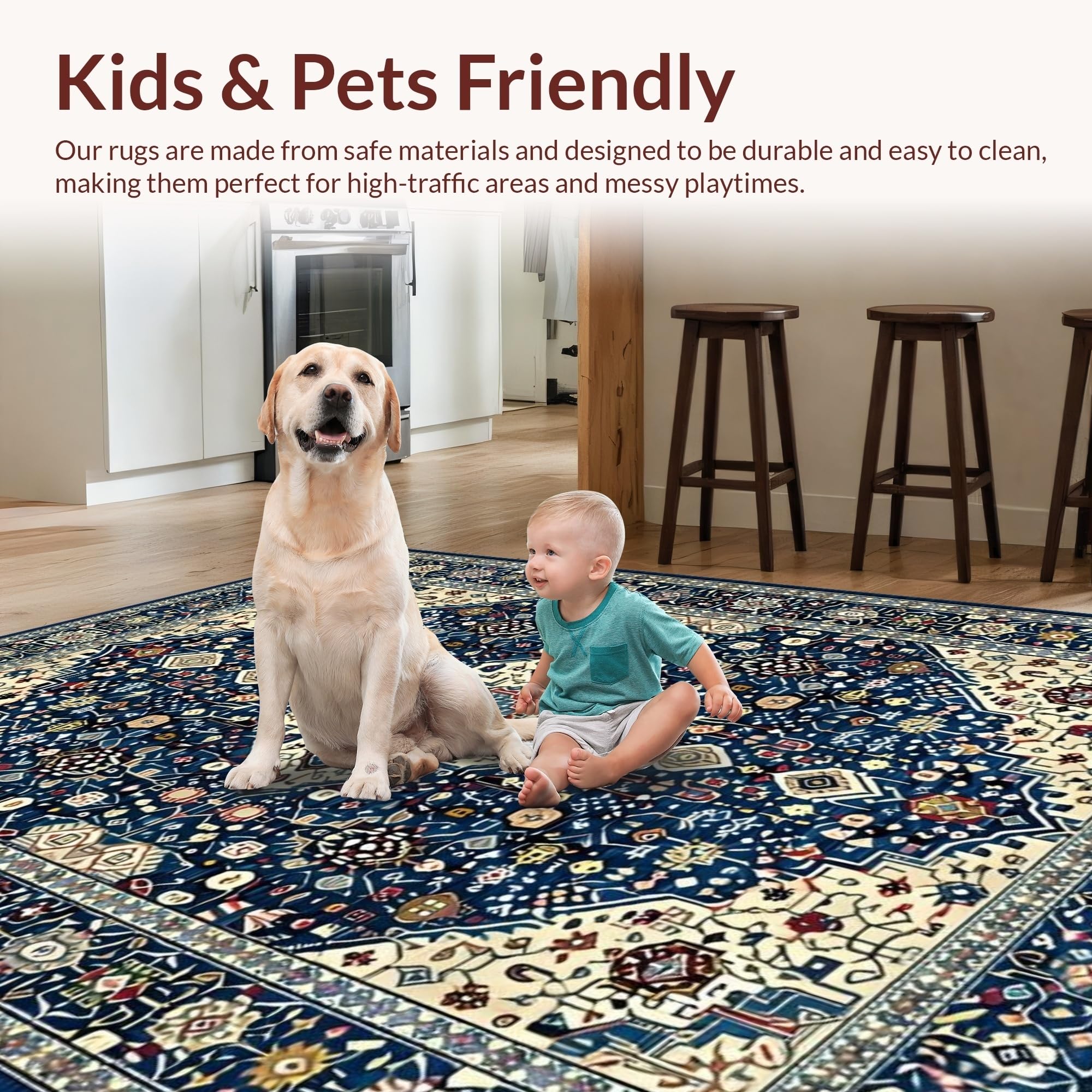 Ultra Soft Area Rug, Non Slip, Stain Resistant, Washable Area Rugs for Living Room, Bedroom, Intricate Floral Ogee Style(Blue) Overview: