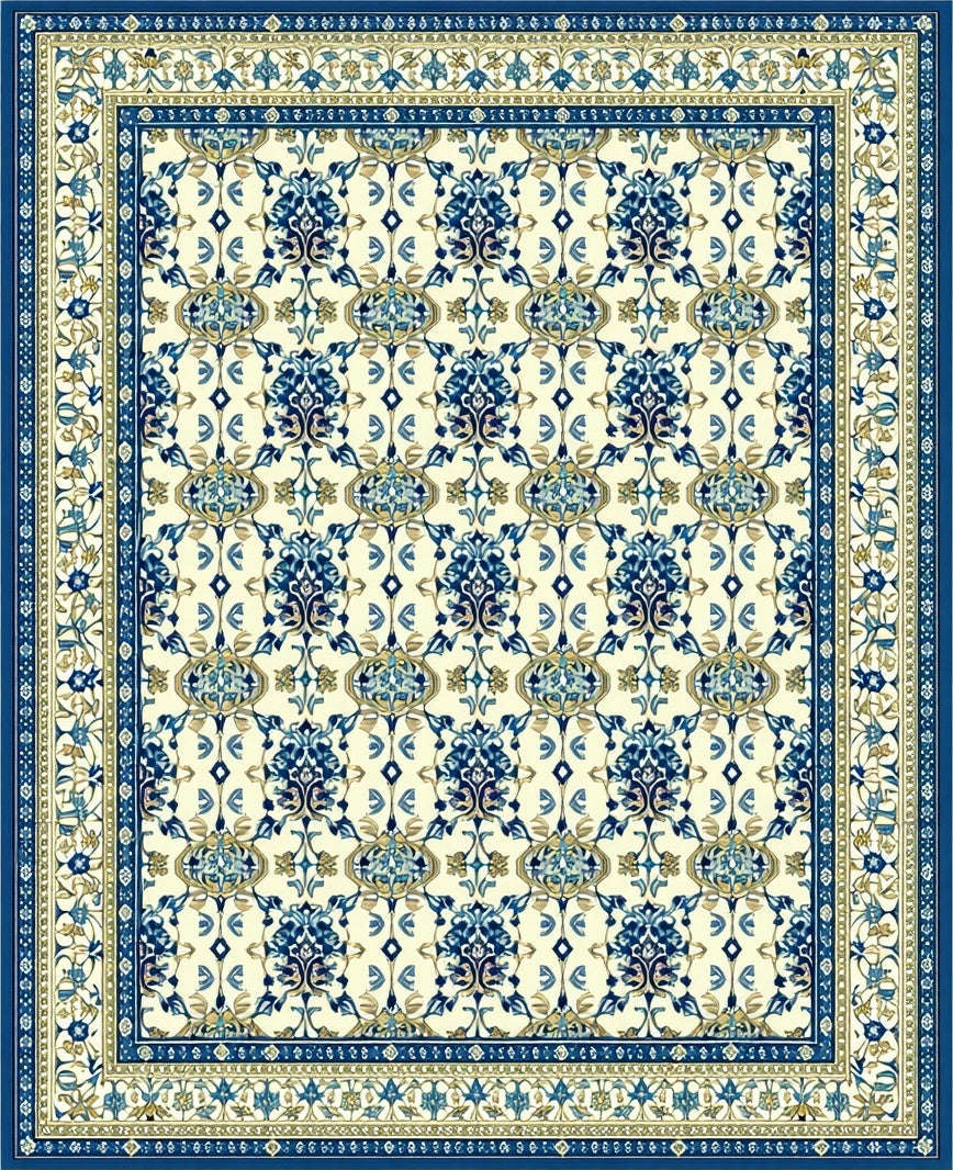 Intricate Floral Trellis with Elegant Beige and Sea Design(Ivory)