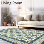 Flatwoven High Traffic Area Rug, Intricate Floral Trellis with Elegant Beige and Sea Design, Non Slip, Stain Resistant, Washable Area Rugs for Living Room, Bedroom (Ivory) Overview: