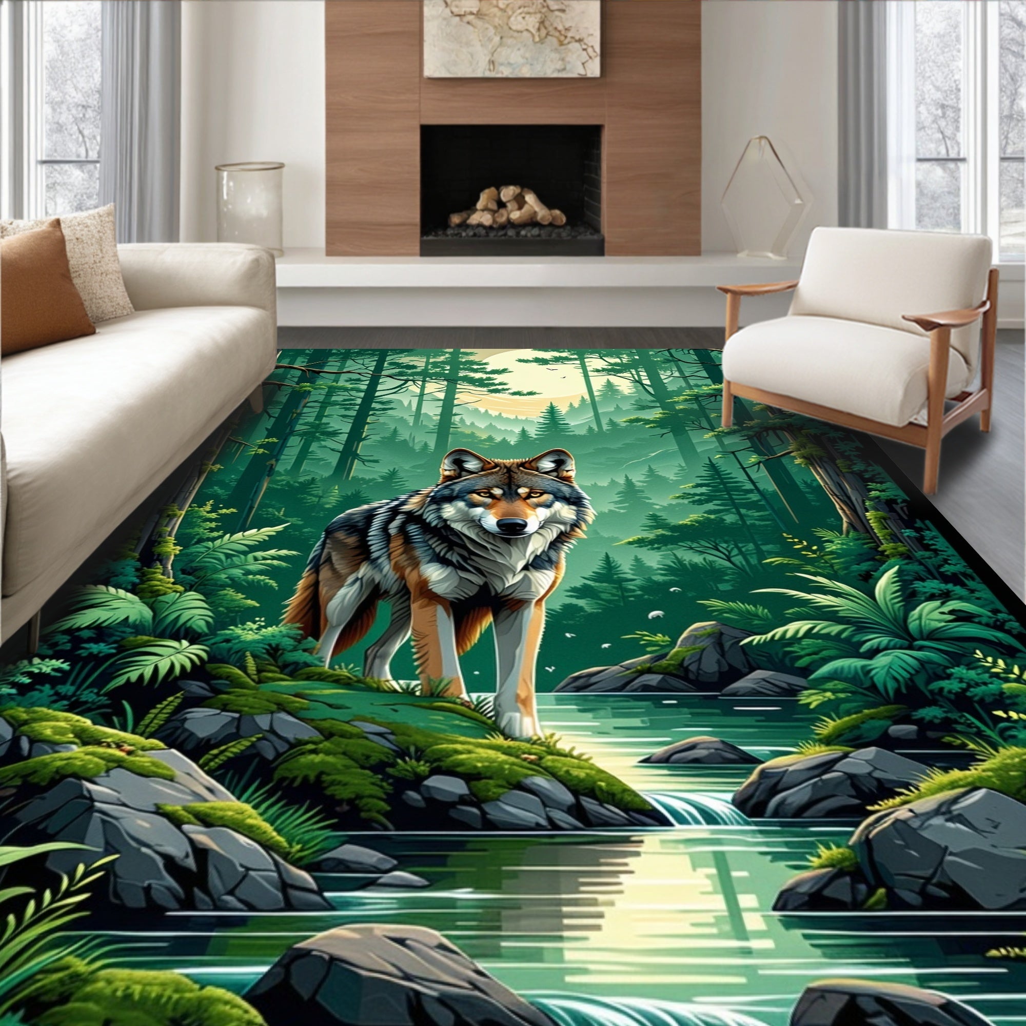 Flatwoven High Traffic Area Rug, Intricate Forest Scene Print, Non Slip, Stain Resistant, Washable Area Rugs for Living Room, Bedroom (Green) Overview: