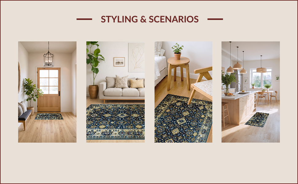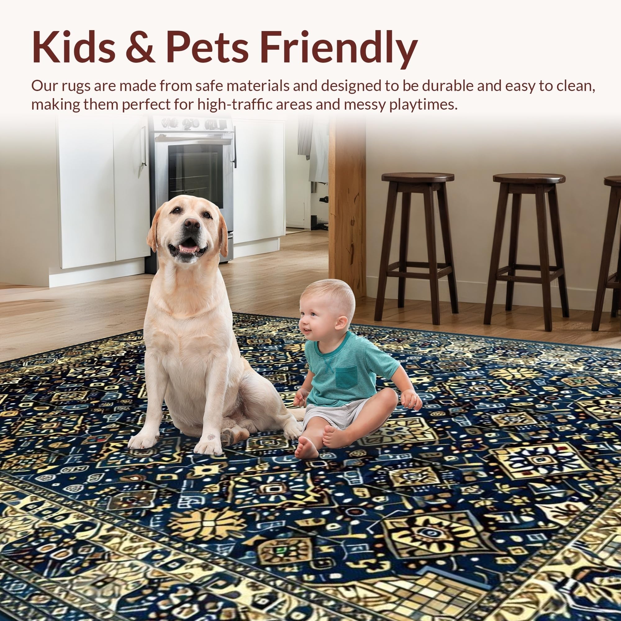 Ultra Soft Area Rug, Non Slip, Stain Resistant, Washable Area Rugs for Living Room, Bedroom, Intricate Medallion Patterned Aesthetic(Gold) Overview: