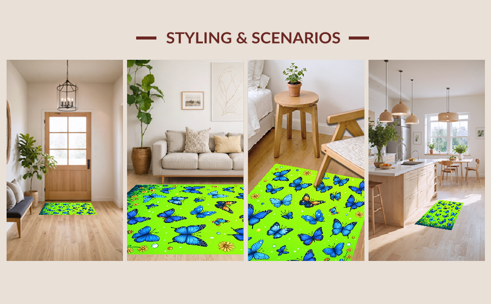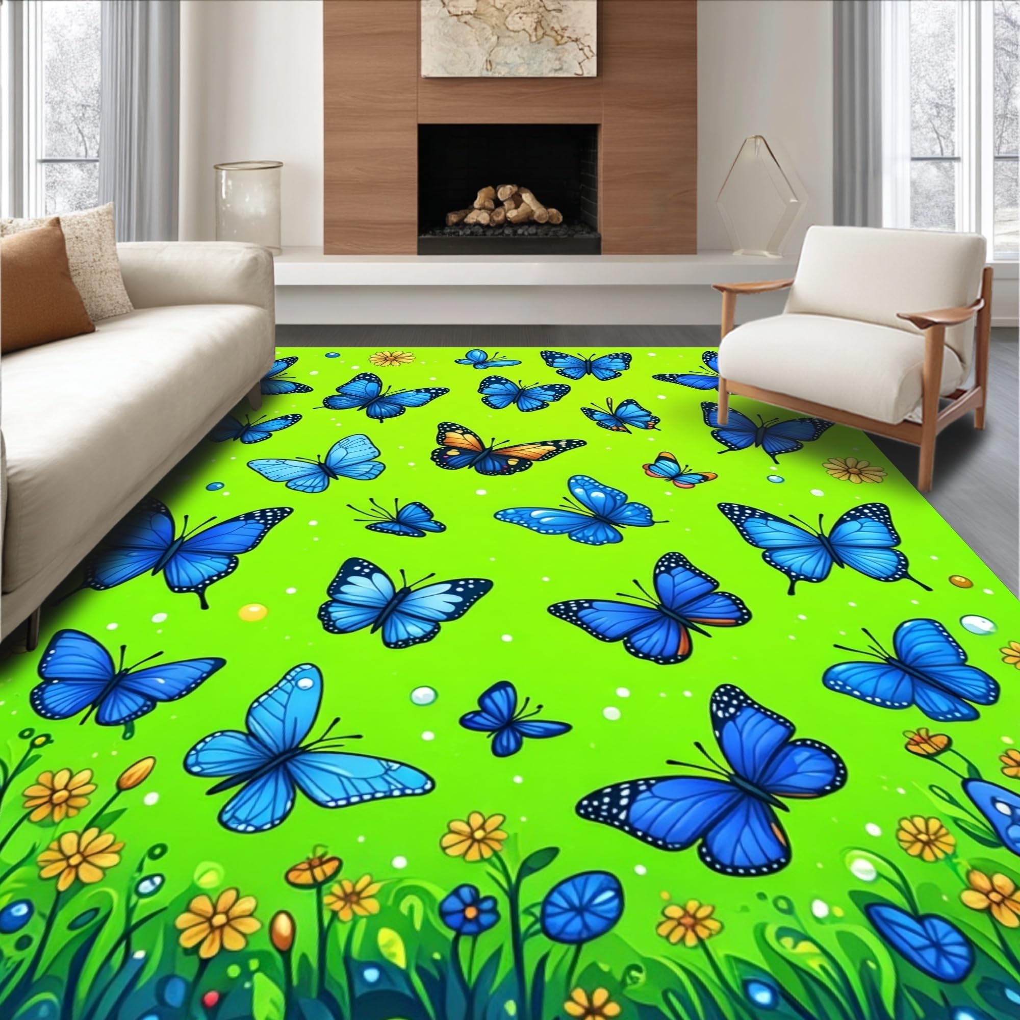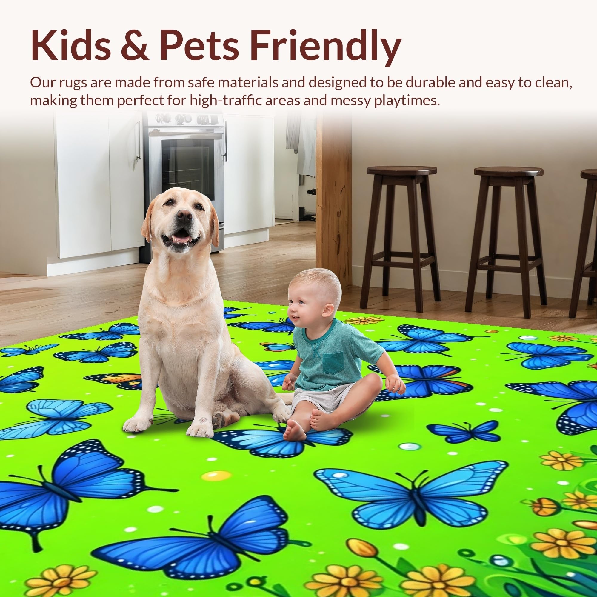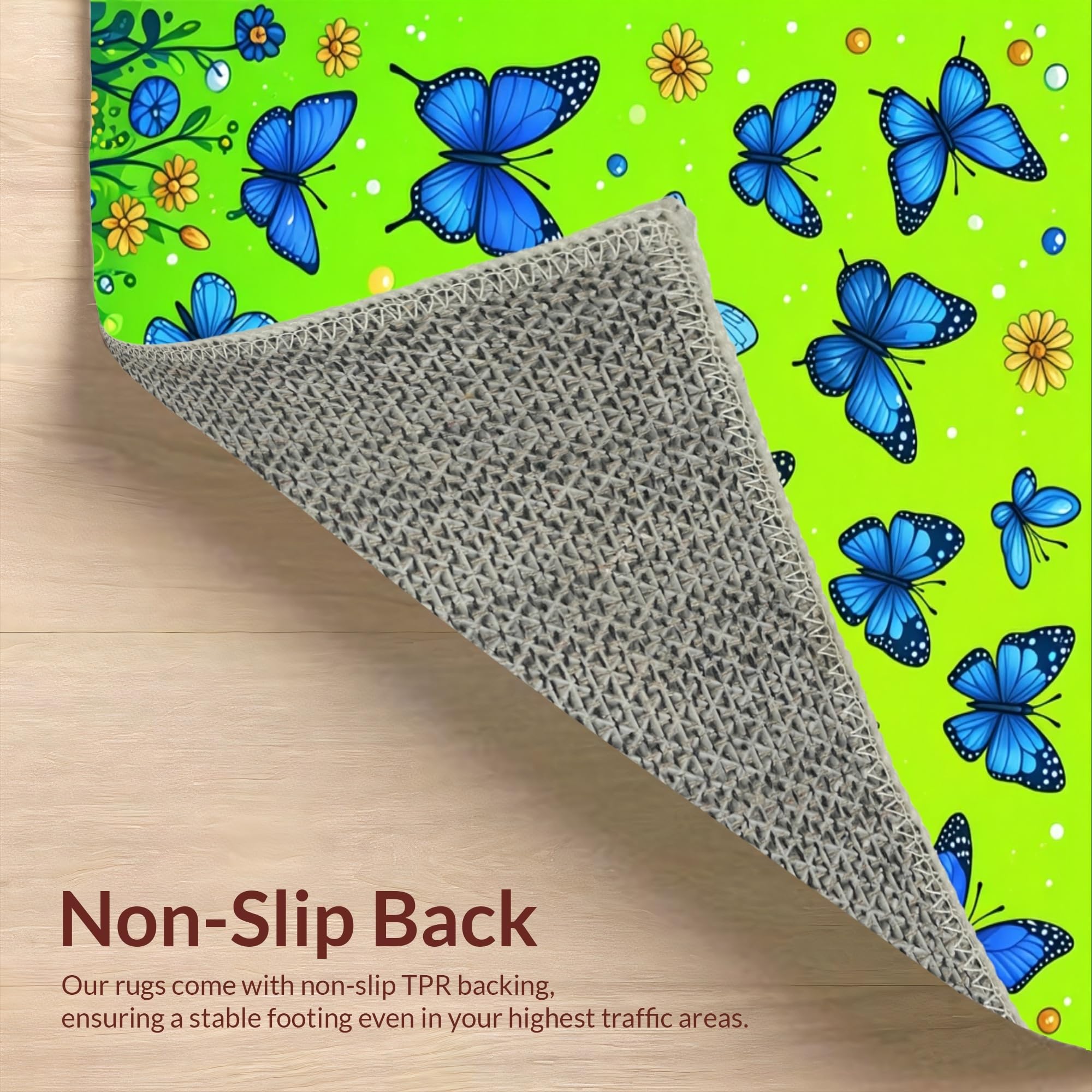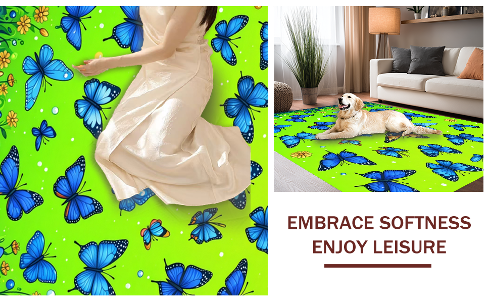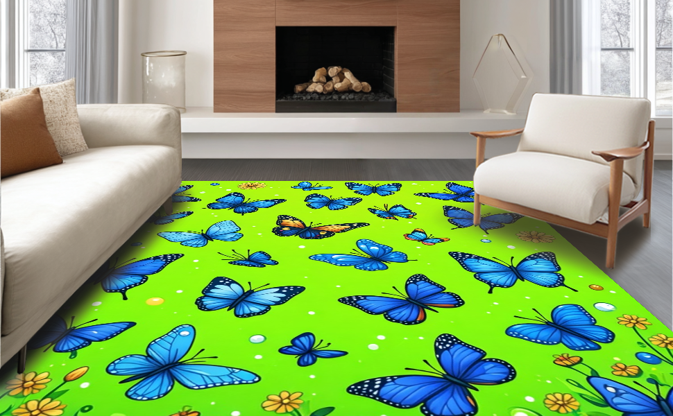 Ultra Soft Area Rug, Non Slip, Stain Resistant, Washable Area Rugs for Living Room, Bedroom, Intricate Nature-Themed Whimsical Touch(Blue) Overview: