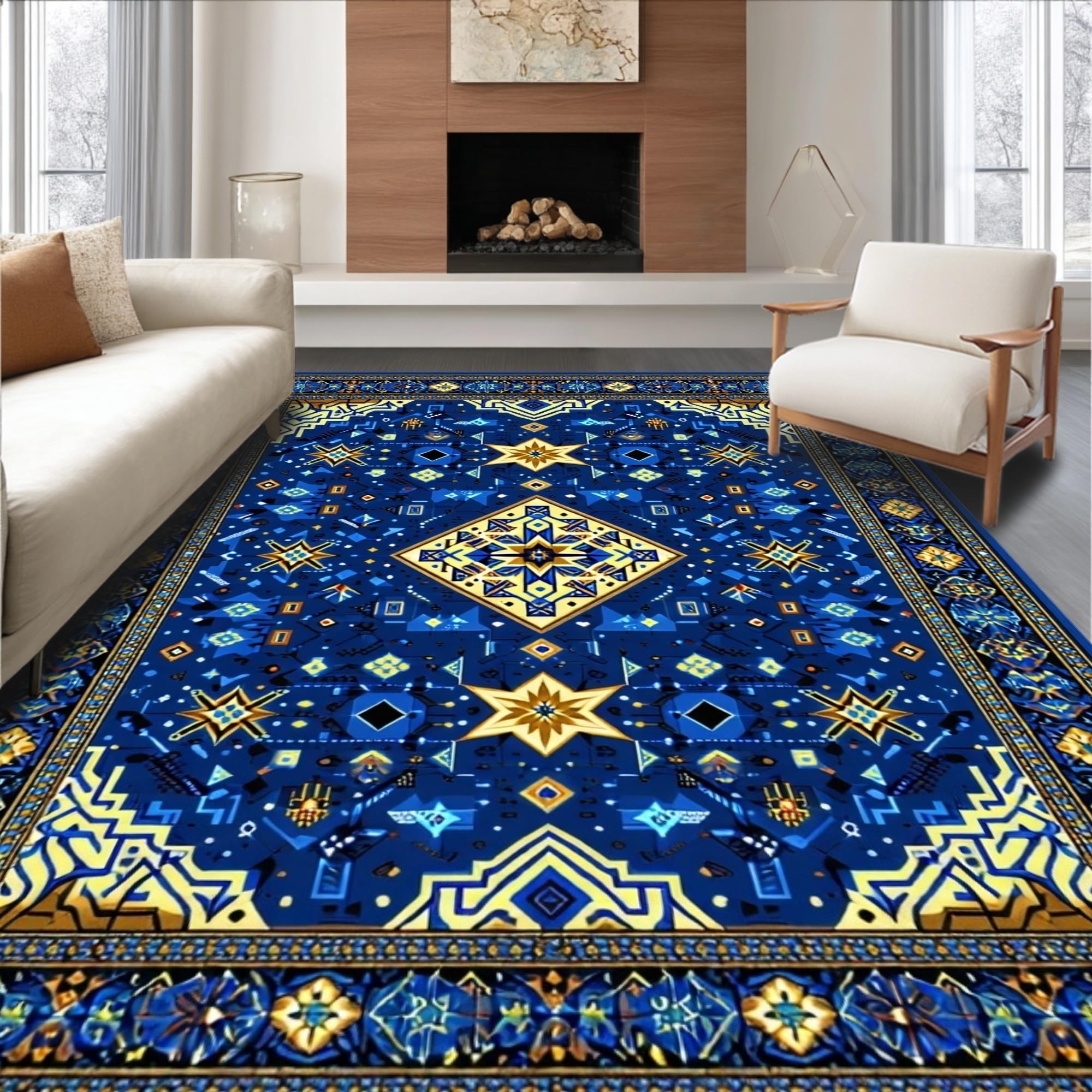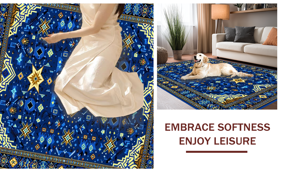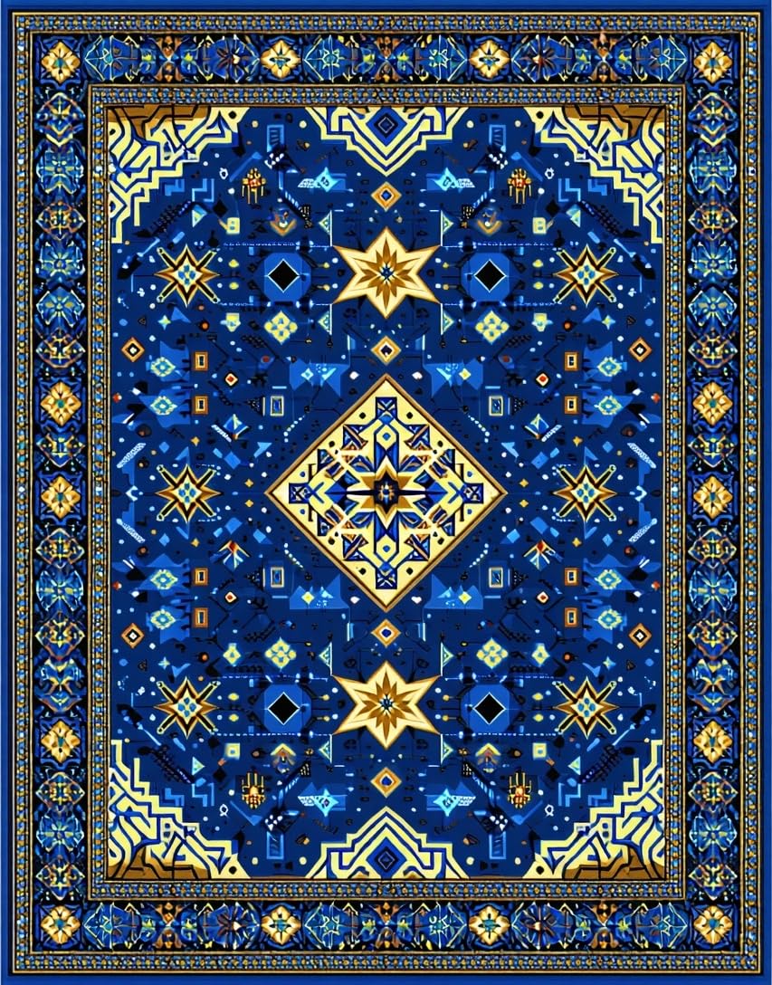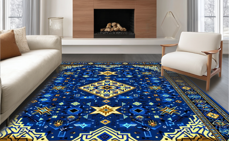 Ultra Soft Area Rug, Non Slip, Stain Resistant, Washable Area Rugs for Living Room, Bedroom, Intricate Selcuk Star Aesthetic(Blue) Overview:
