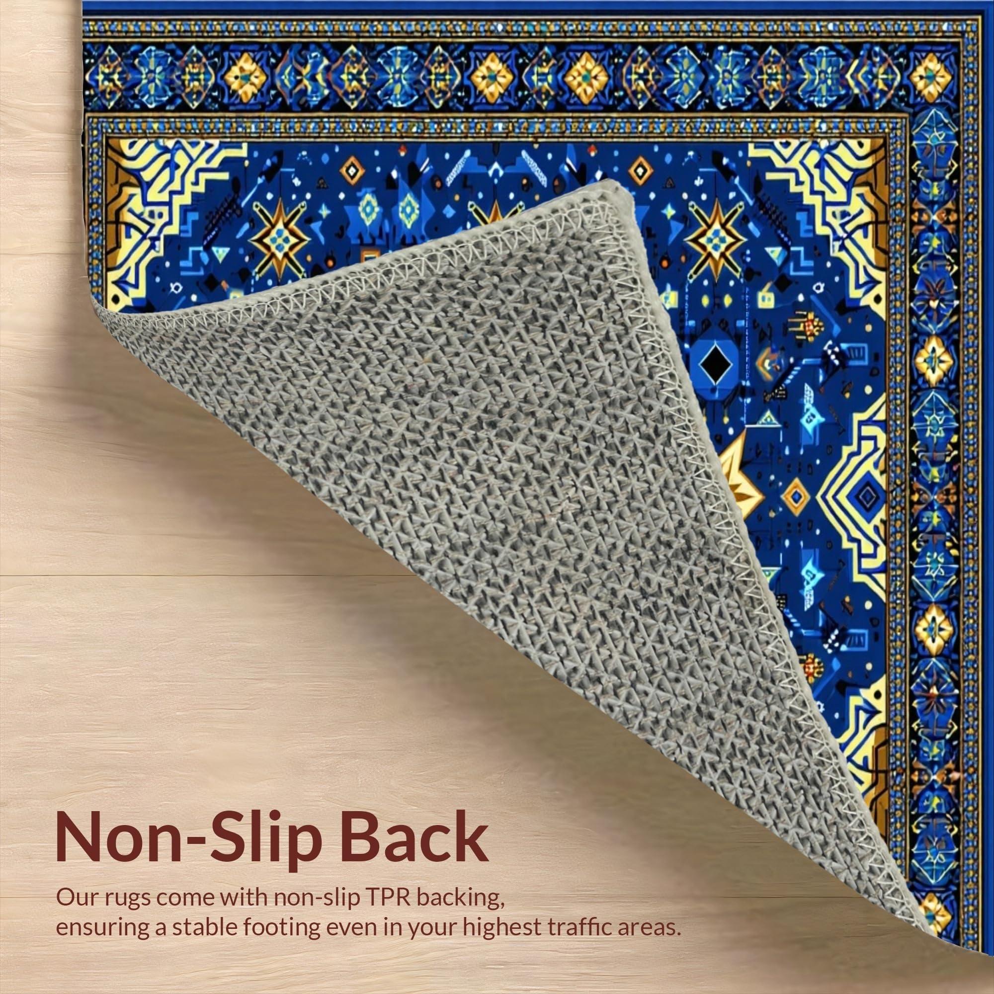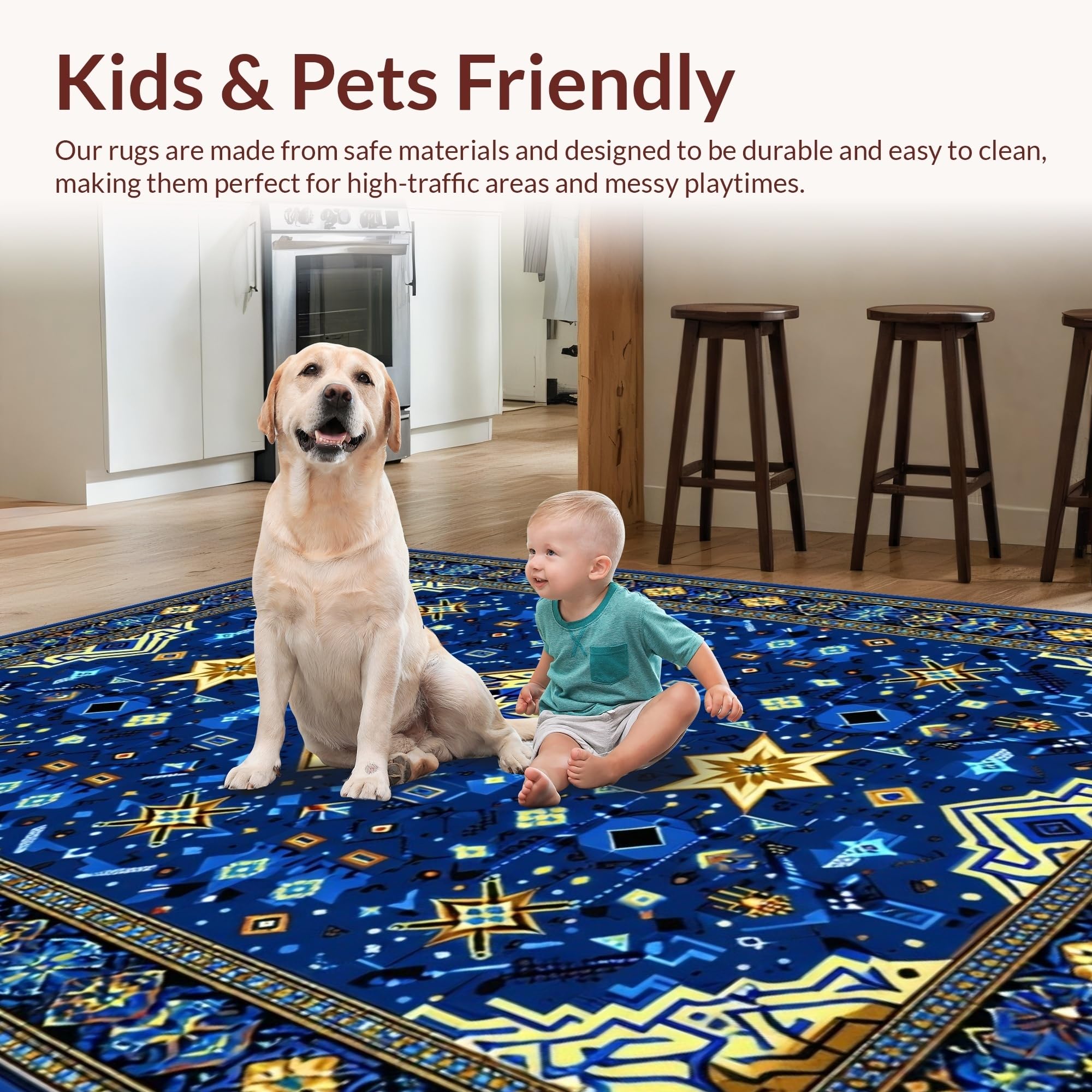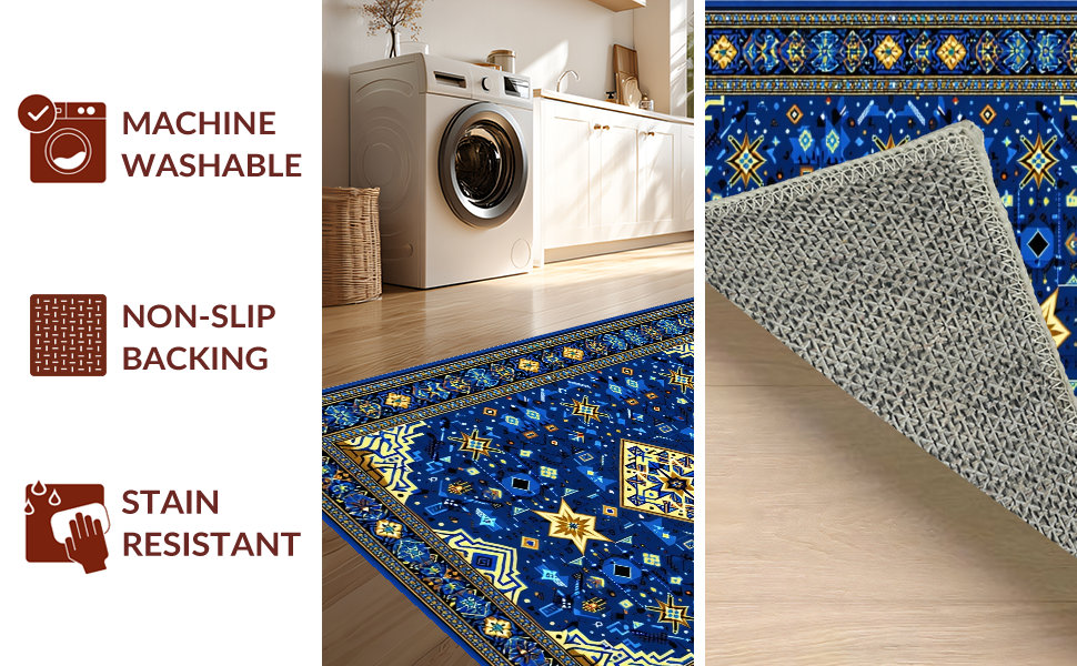 Ultra Soft Area Rug, Non Slip, Stain Resistant, Washable Area Rugs for Living Room, Bedroom, Intricate Selcuk Star Aesthetic(Blue) Overview:
