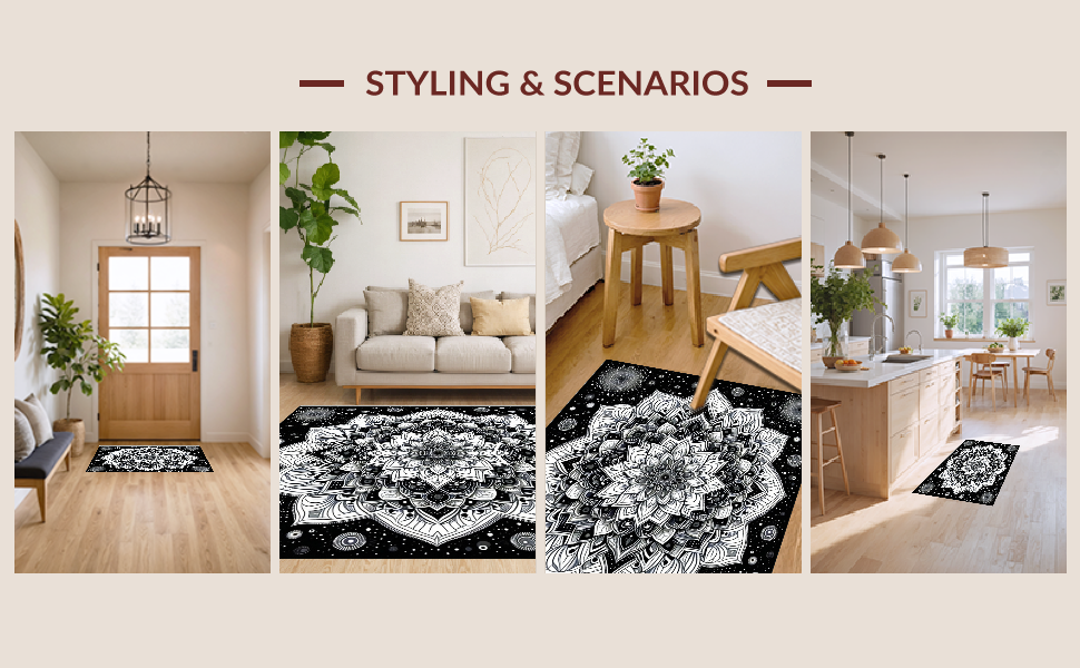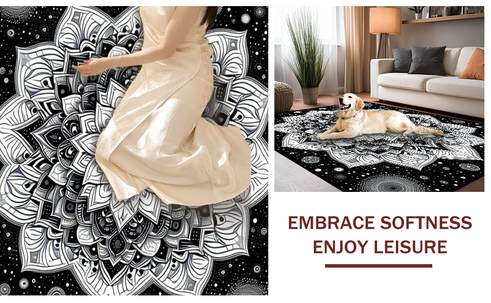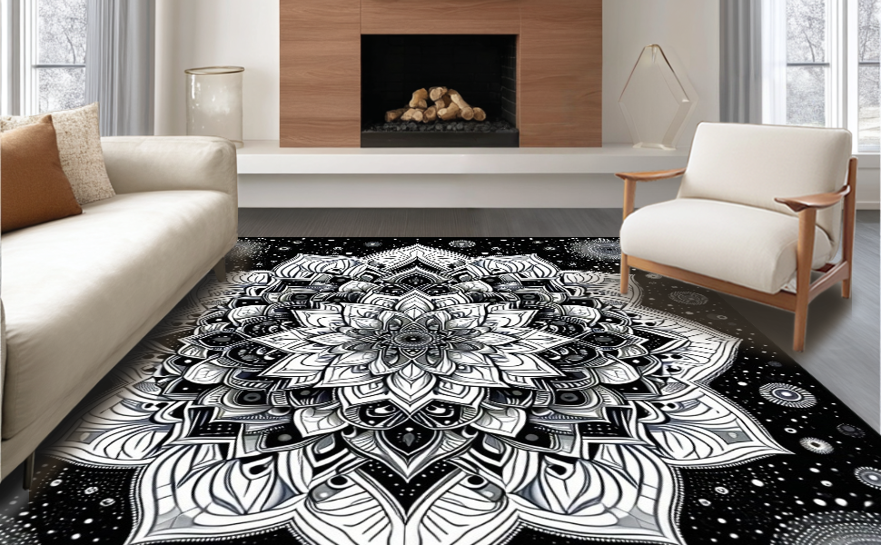 Ultra Soft Area Rug, Non Slip, Stain Resistant, Washable Area Rugs for Living Room, Bedroom, Intricate Tasseled Geometric Style(Black) Overview:
