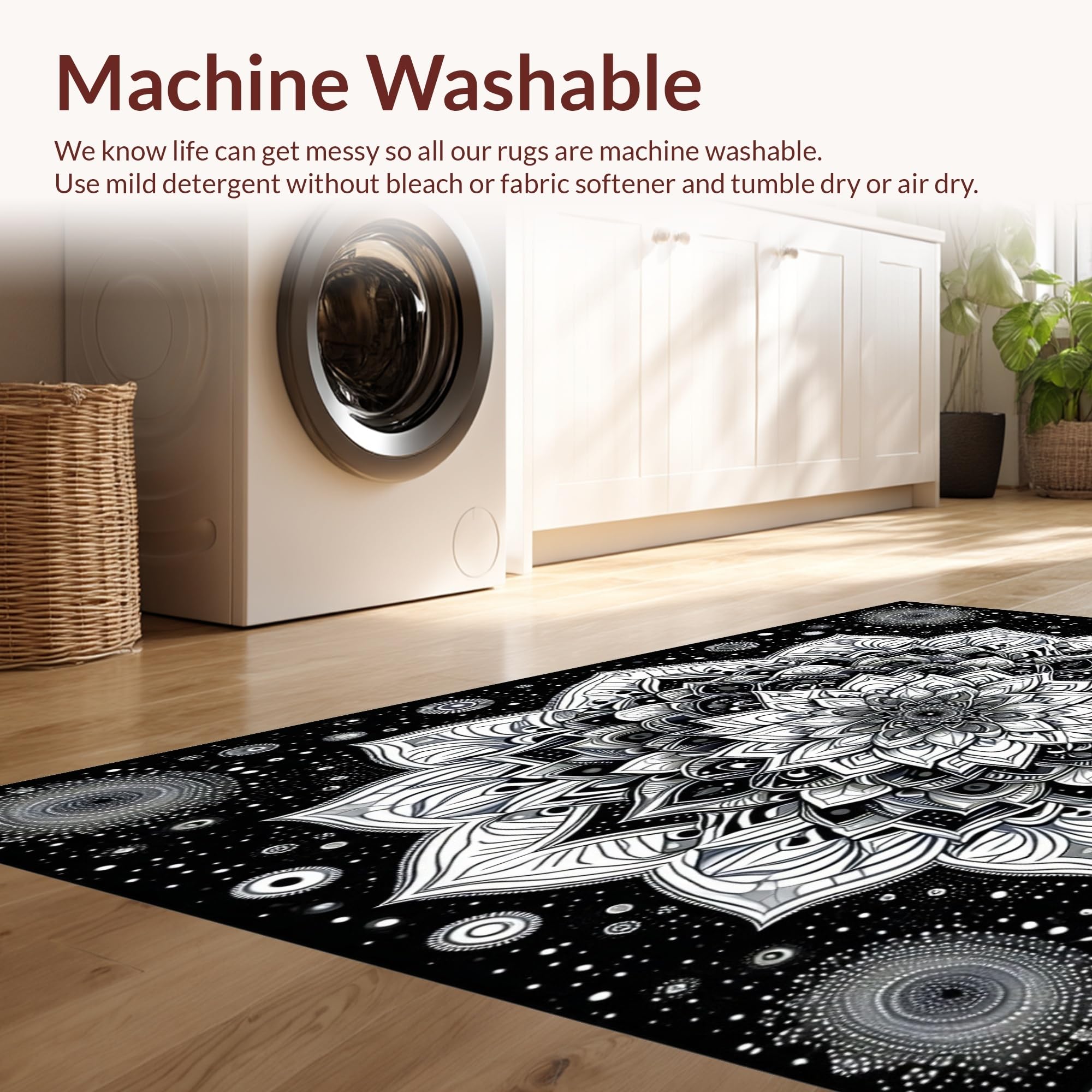 - Machine Washable: Our rugs can be easily thrown in the wash machine.
