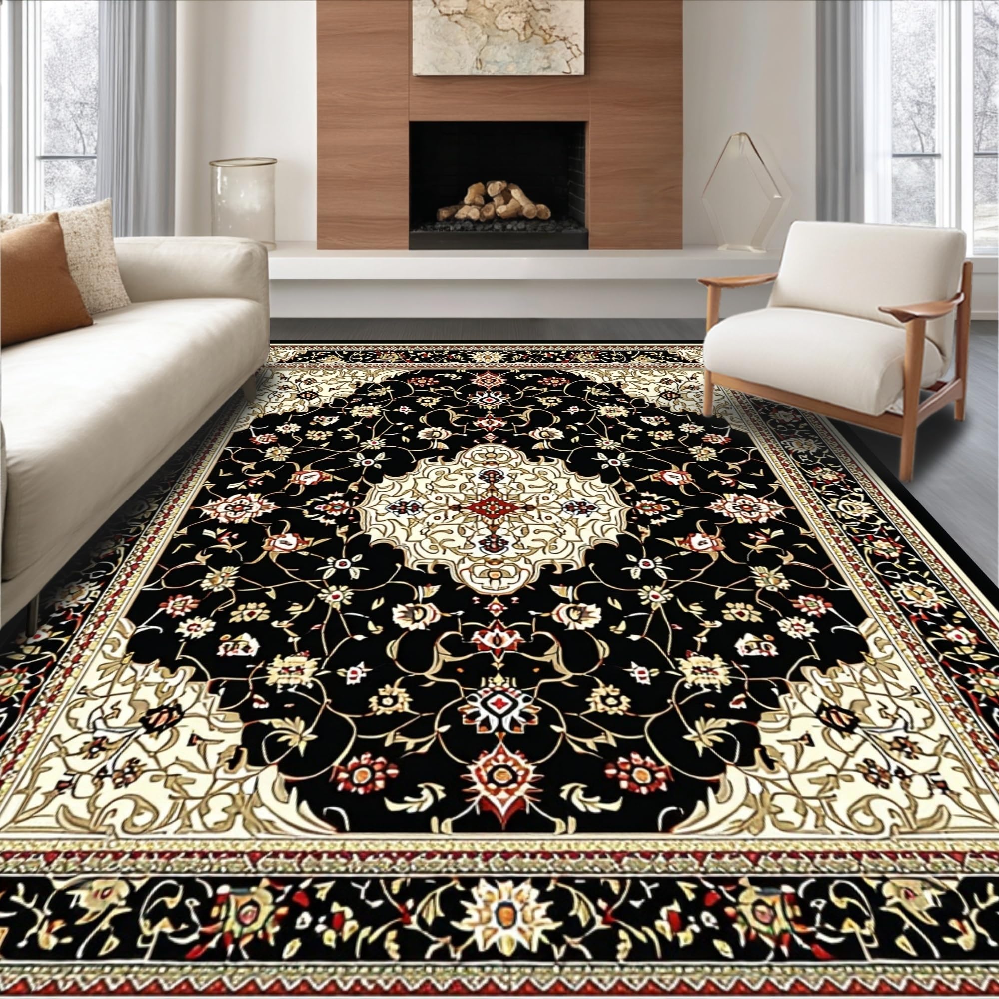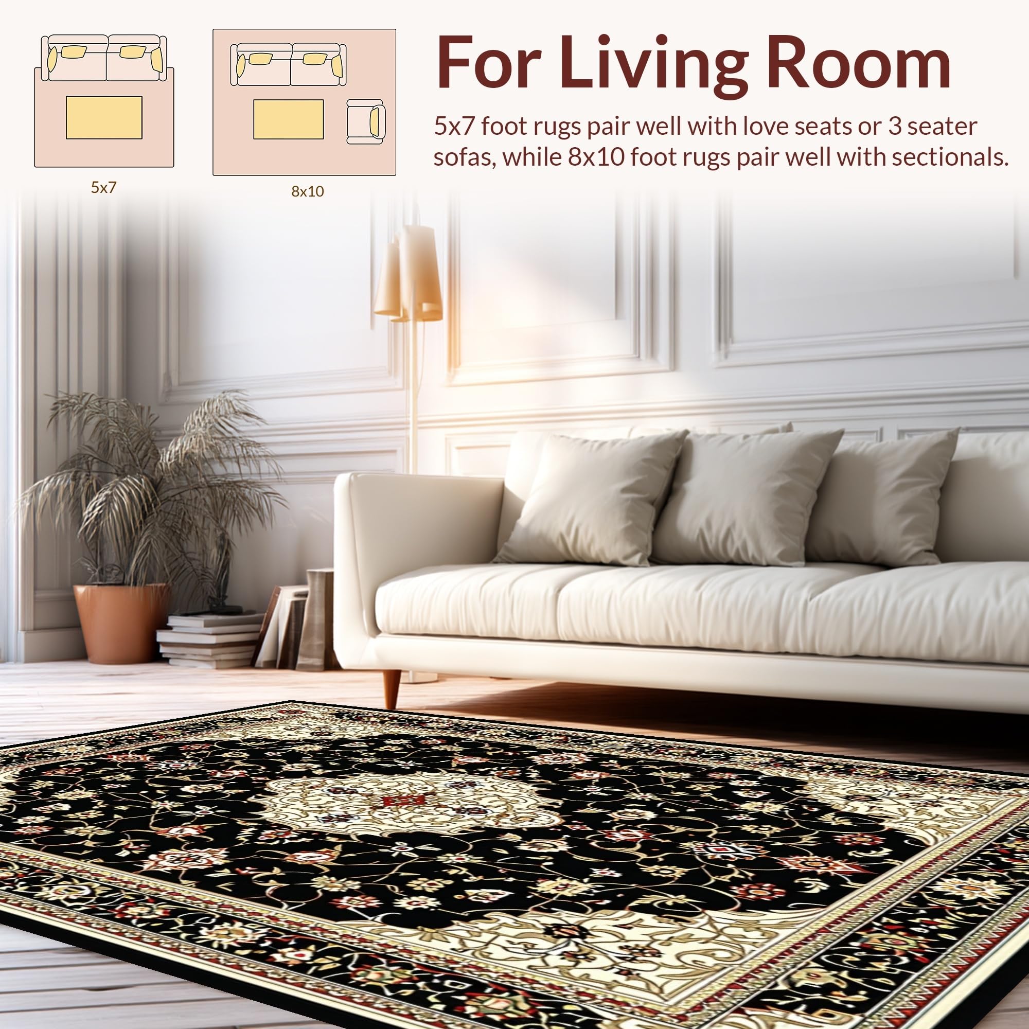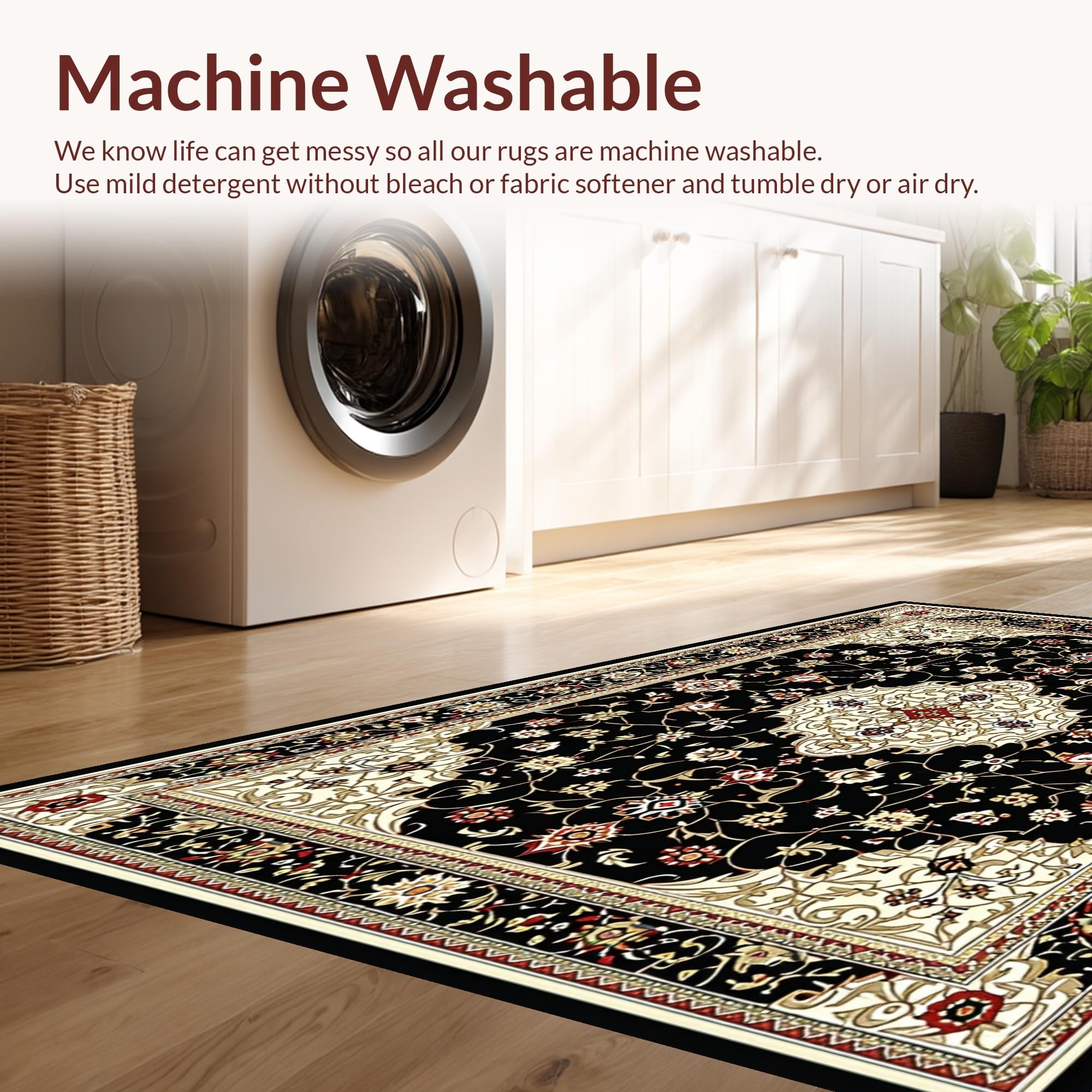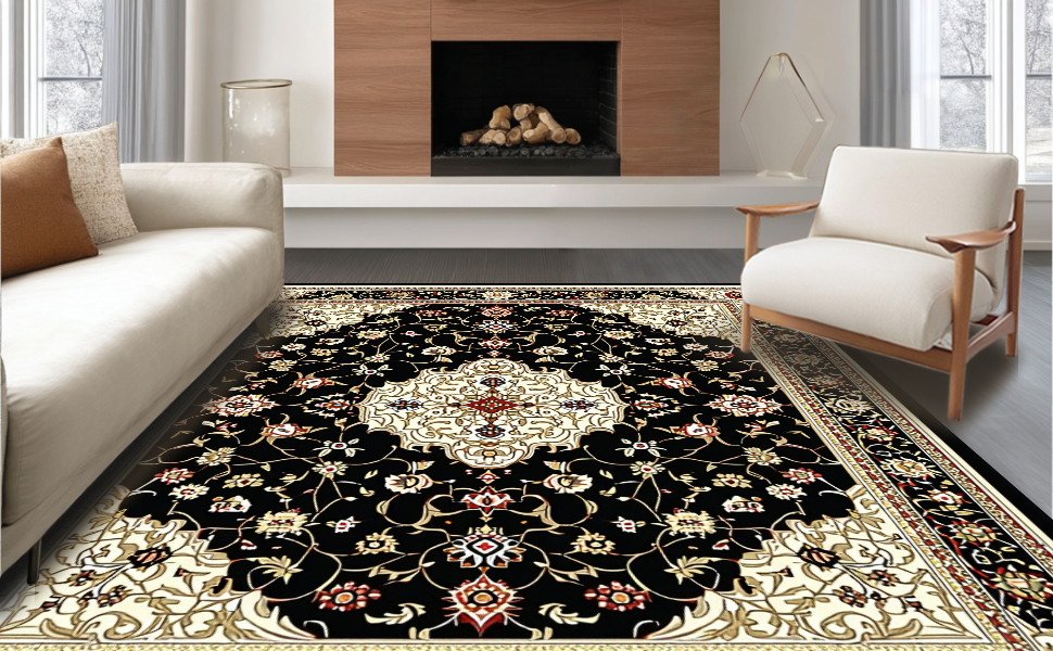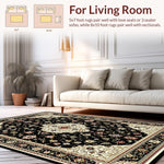 Ultra Soft Area Rug, Non Slip, Stain Resistant, Washable Area Rugs for Living Room, Bedroom, Intricate Vintage Medallion Glamour Piece(Black) Overview: