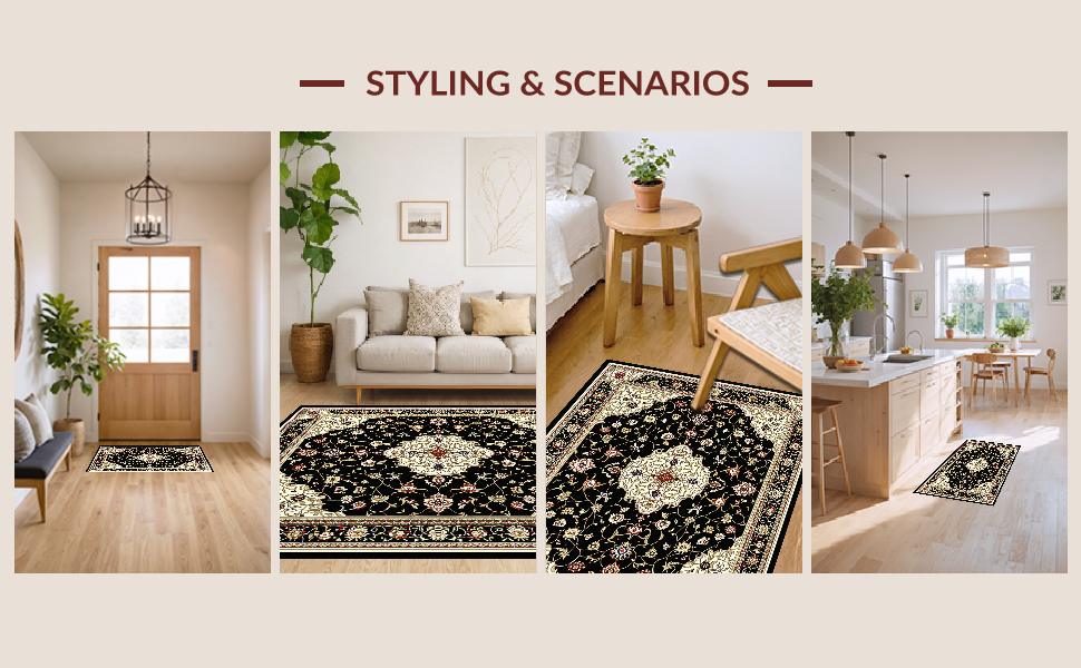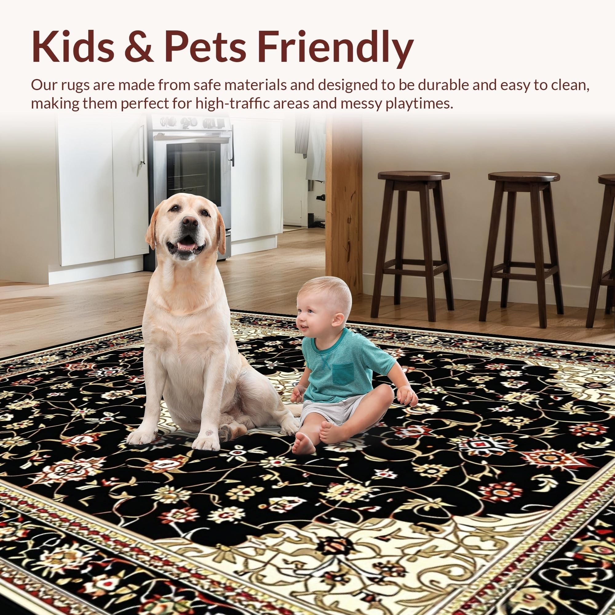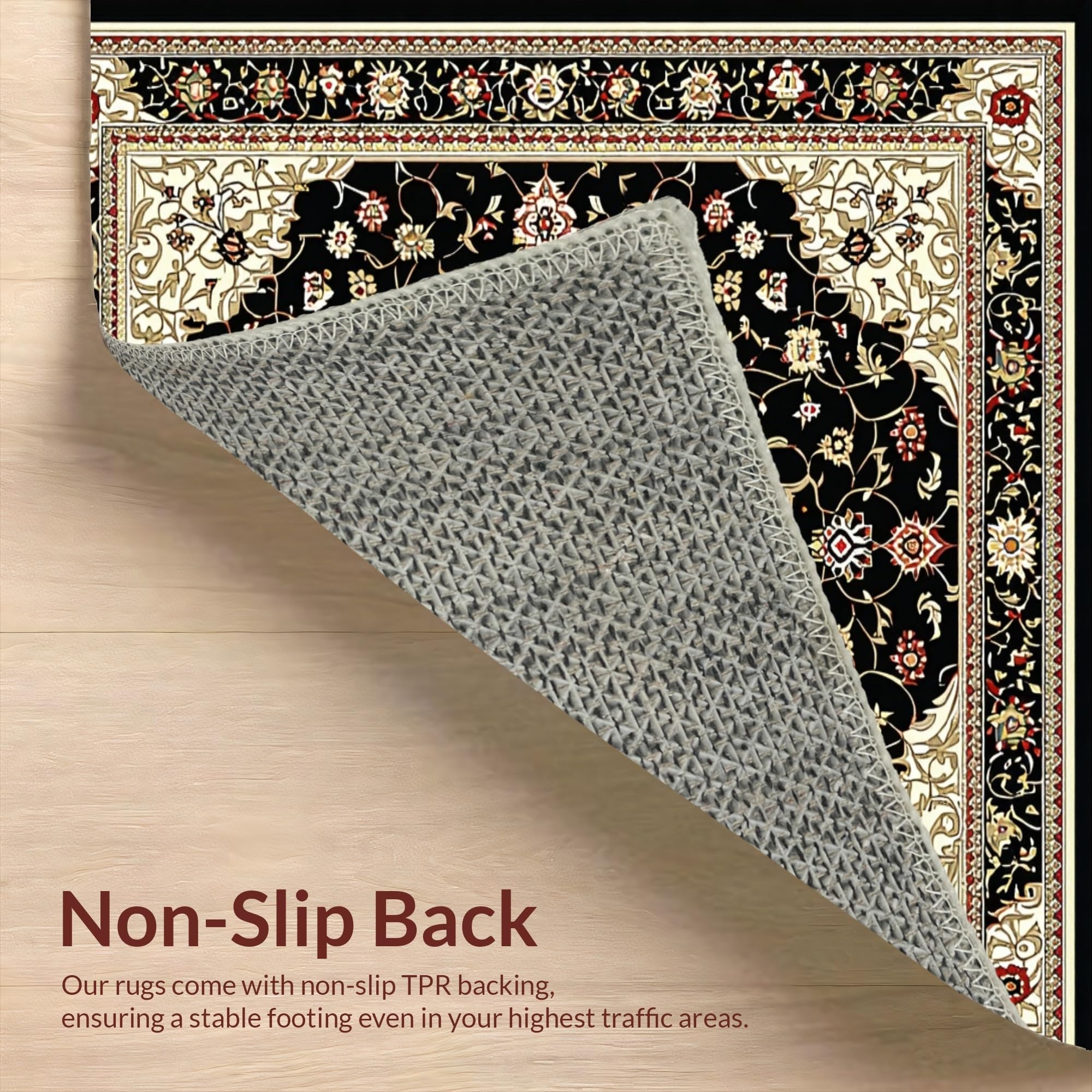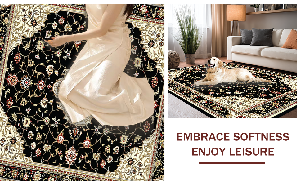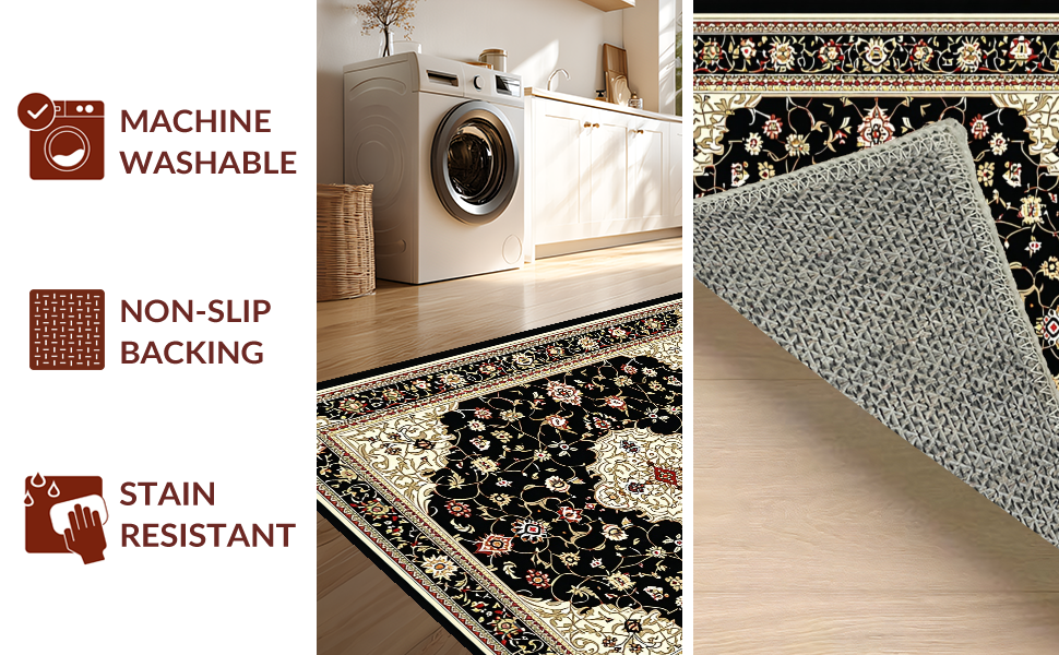 Ultra Soft Area Rug, Non Slip, Stain Resistant, Washable Area Rugs for Living Room, Bedroom, Intricate Vintage Medallion Glamour Piece(Black) Overview: