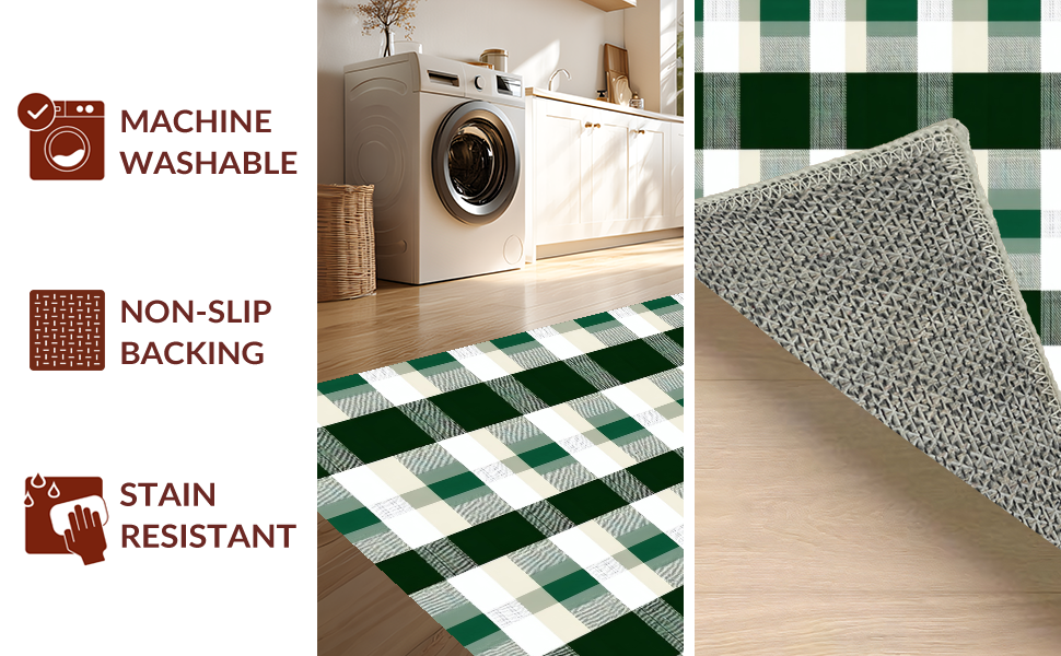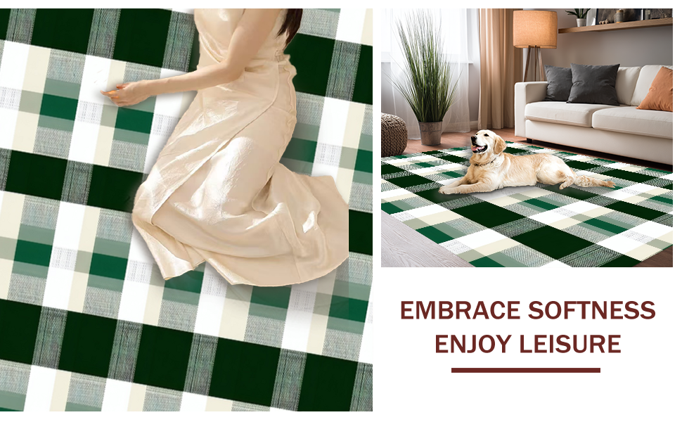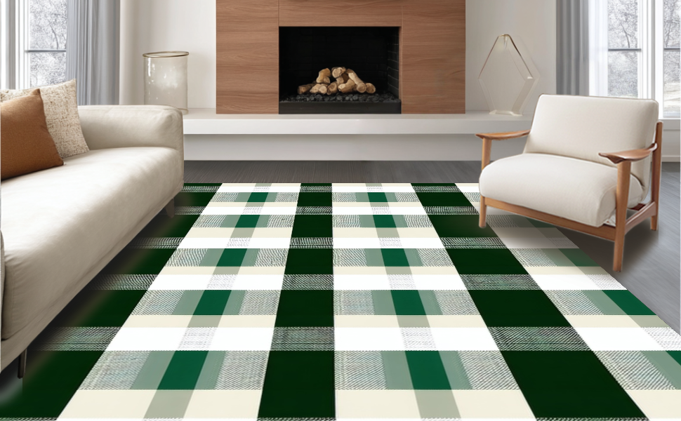 Ultra Soft Area Rug, Non Slip, Stain Resistant, Washable Area Rugs for Living Room, Bedroom, Inviting Classic Grid Visual Appeal(Green) Overview: