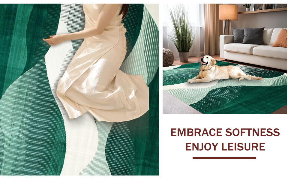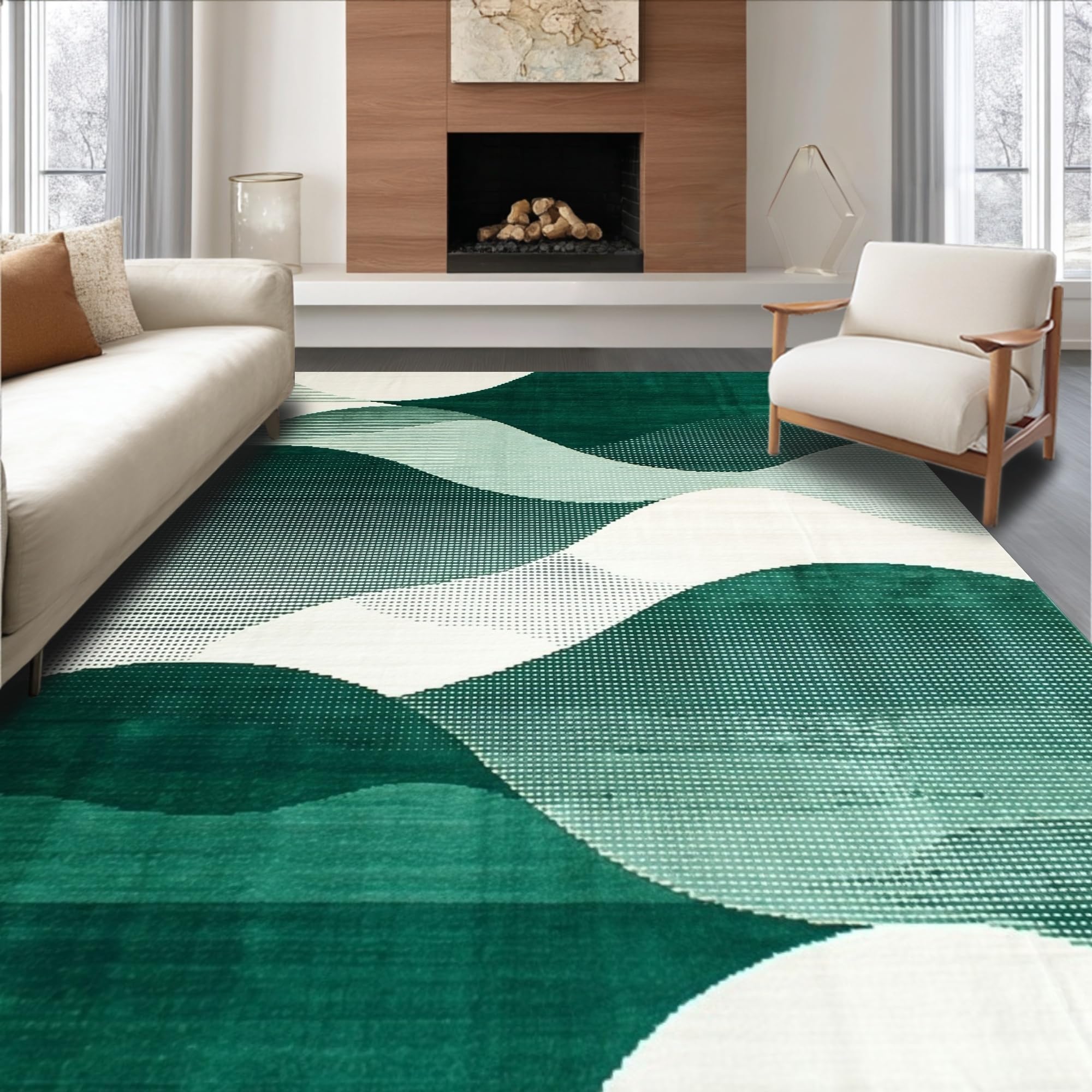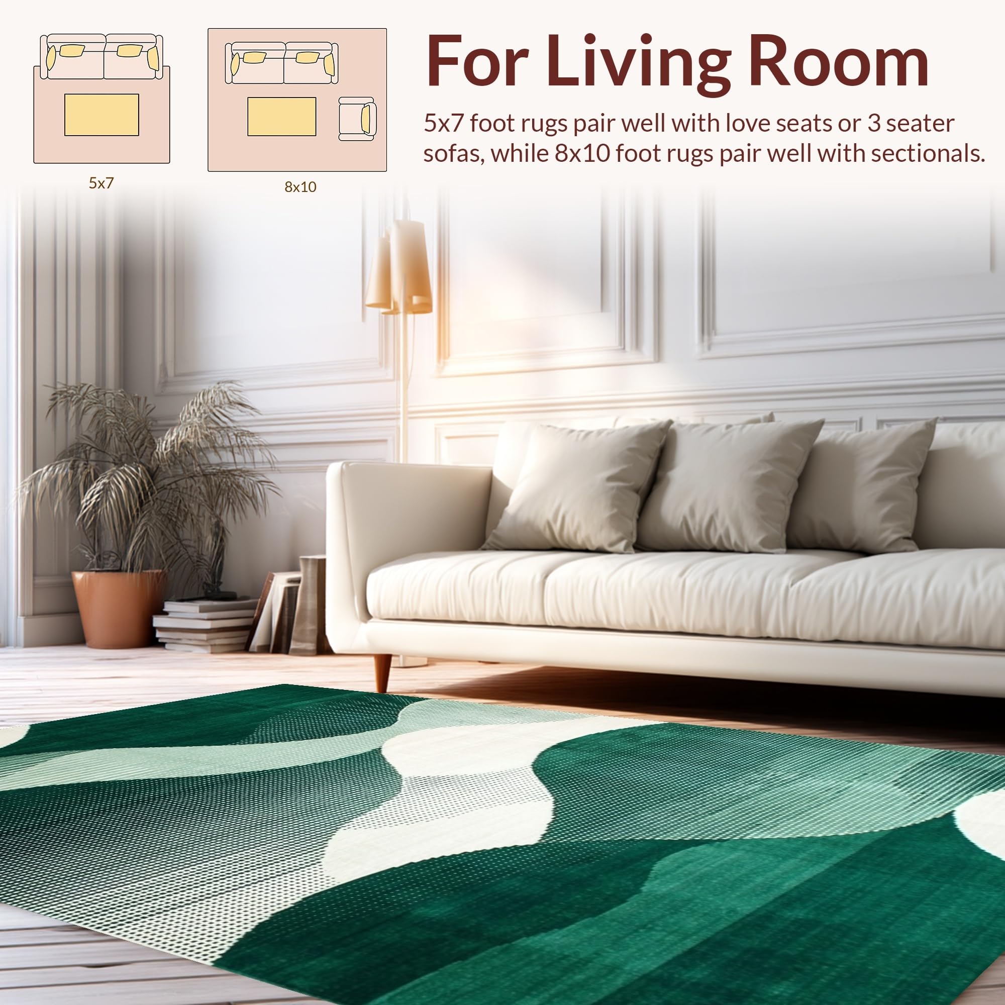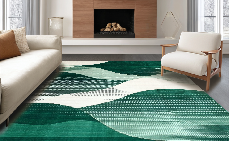 Ultra Soft Area Rug, Non Slip, Stain Resistant, Washable Area Rugs for Living Room, Bedroom, Inviting Cozy Curvilinear Forms(Green) Overview: