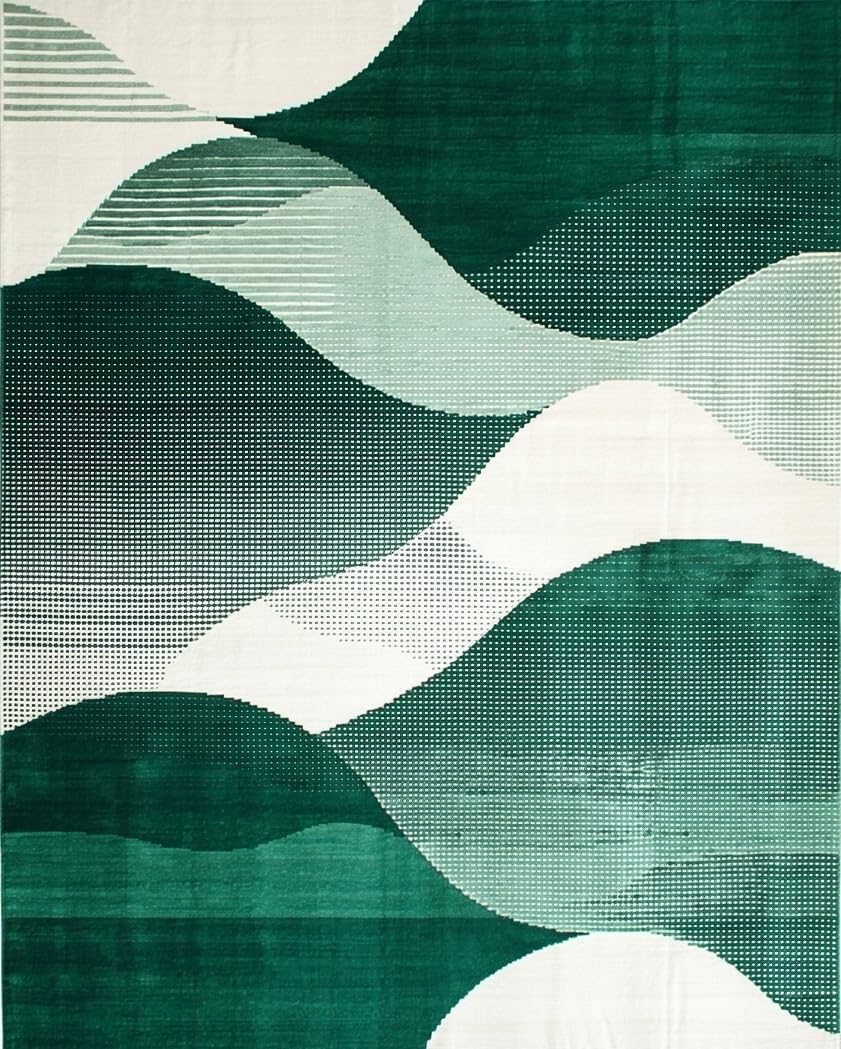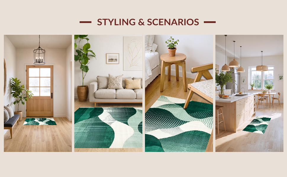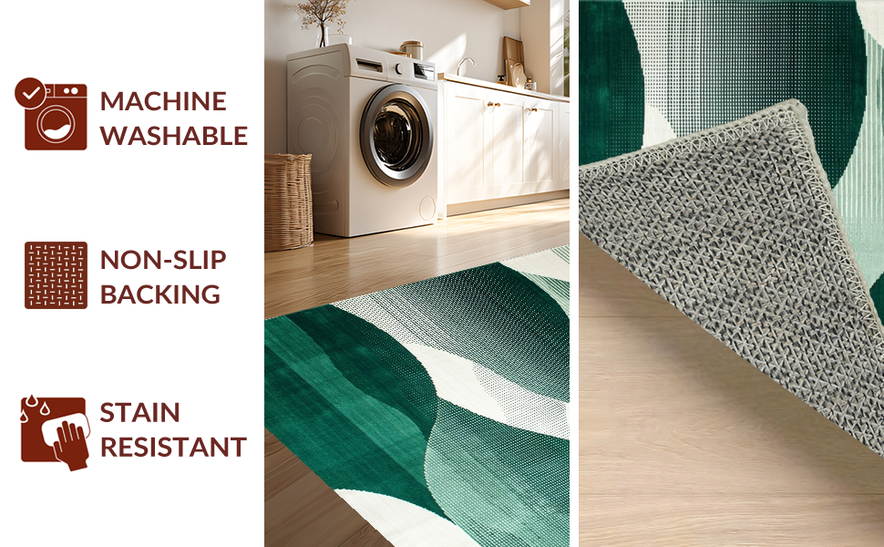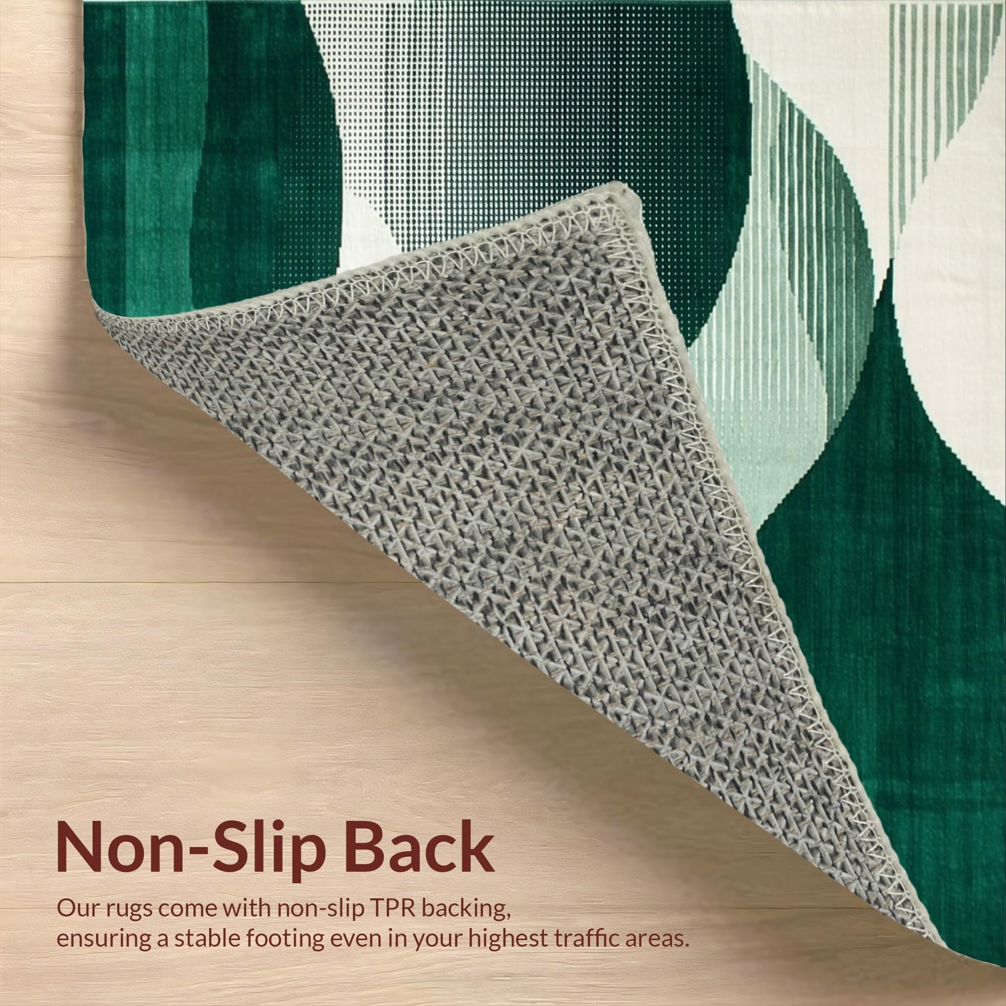 Ultra Soft Area Rug, Non Slip, Stain Resistant, Washable Area Rugs for Living Room, Bedroom, Inviting Cozy Curvilinear Forms(Green) Overview: