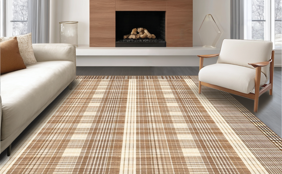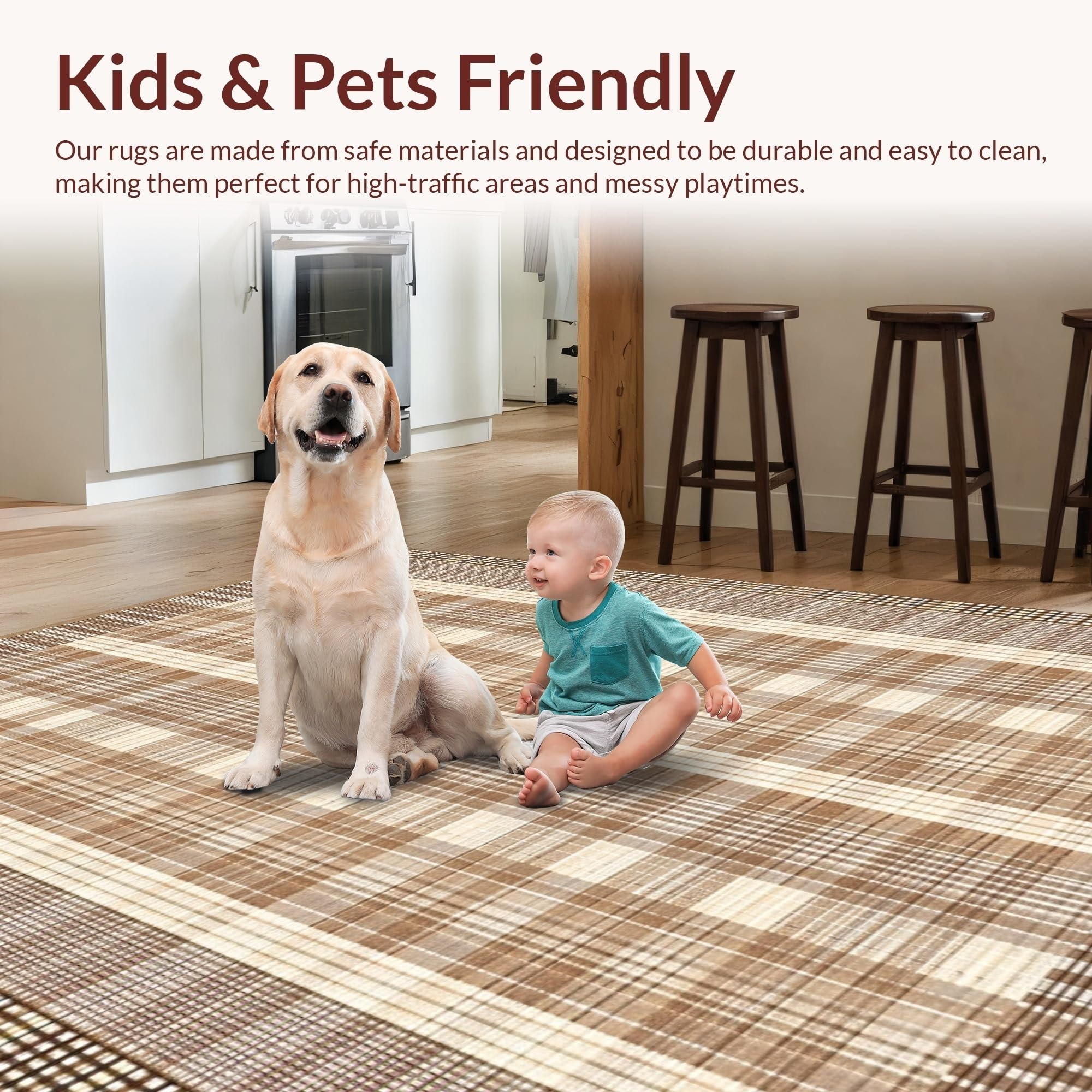 Ultra Soft Area Rug, Non Slip, Stain Resistant, Washable Area Rugs for Living Room, Bedroom, Inviting Cozy Geometric Composition(Beige) Overview: