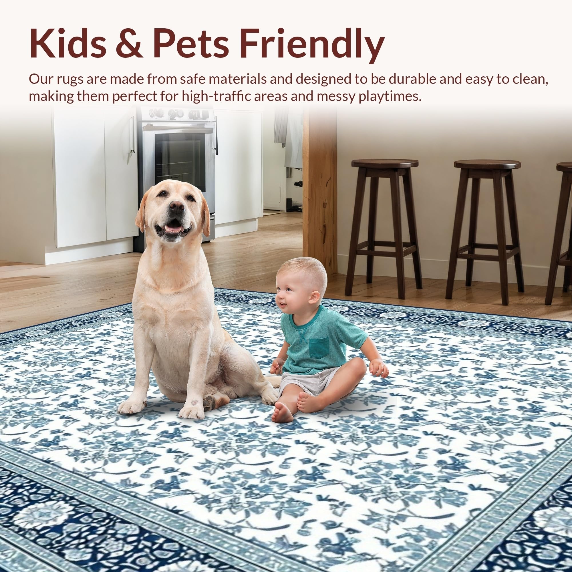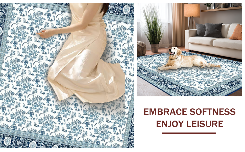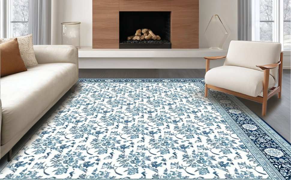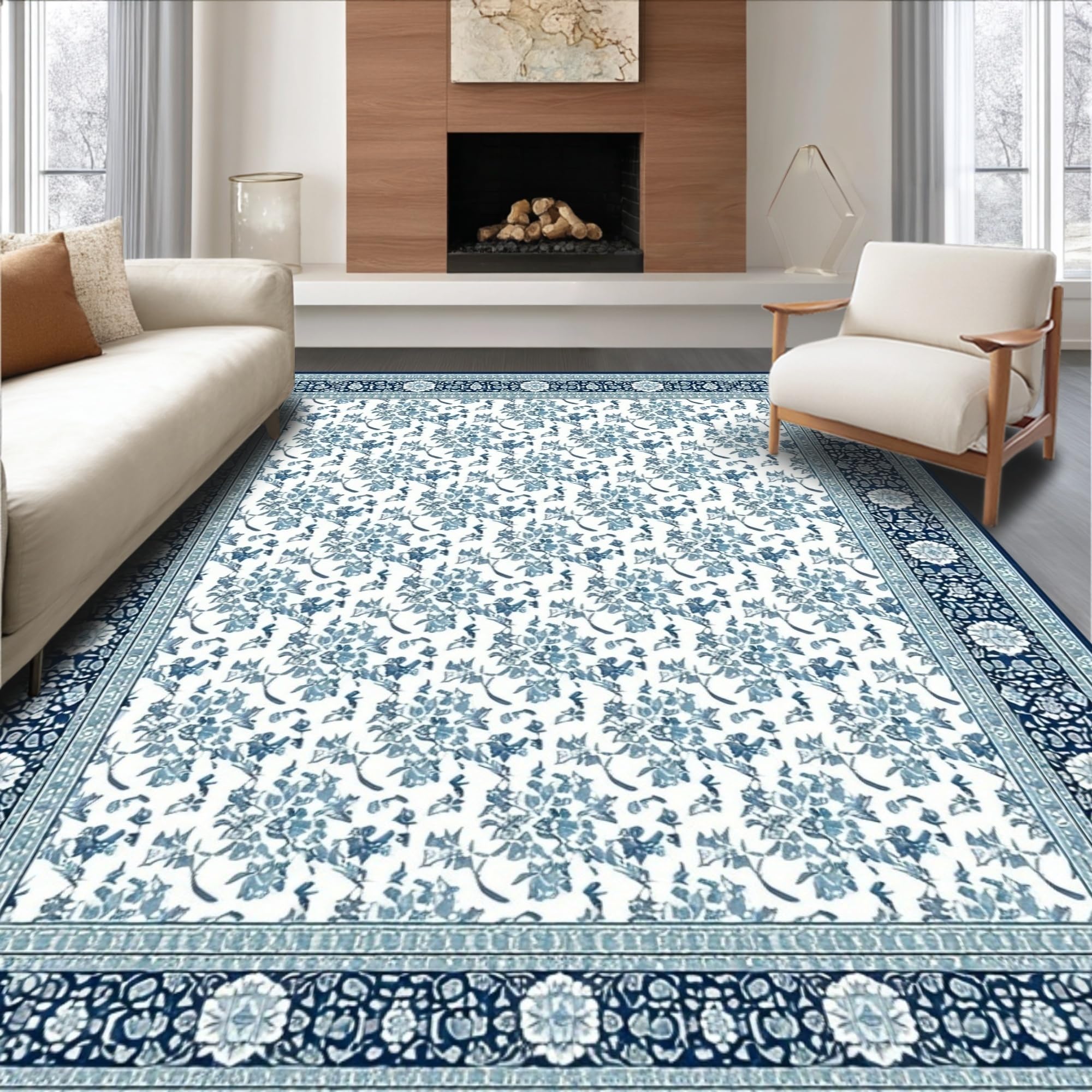 Ultra Soft Area Rug, Non Slip, Stain Resistant, Washable Area Rugs for Living Room, Bedroom, Inviting Pastel Floral Composition(Blue) Overview: