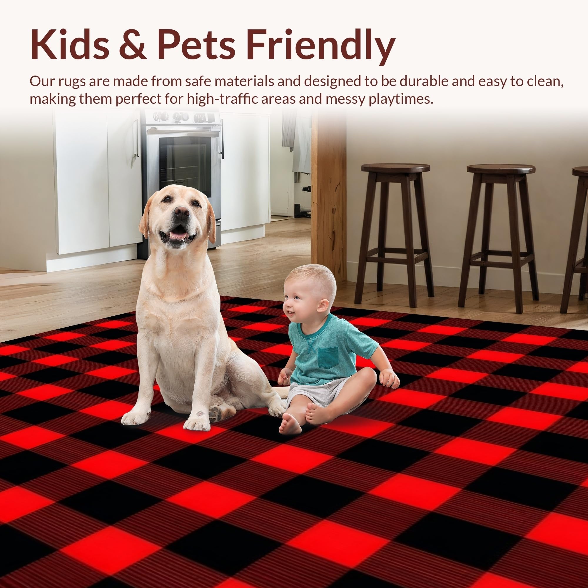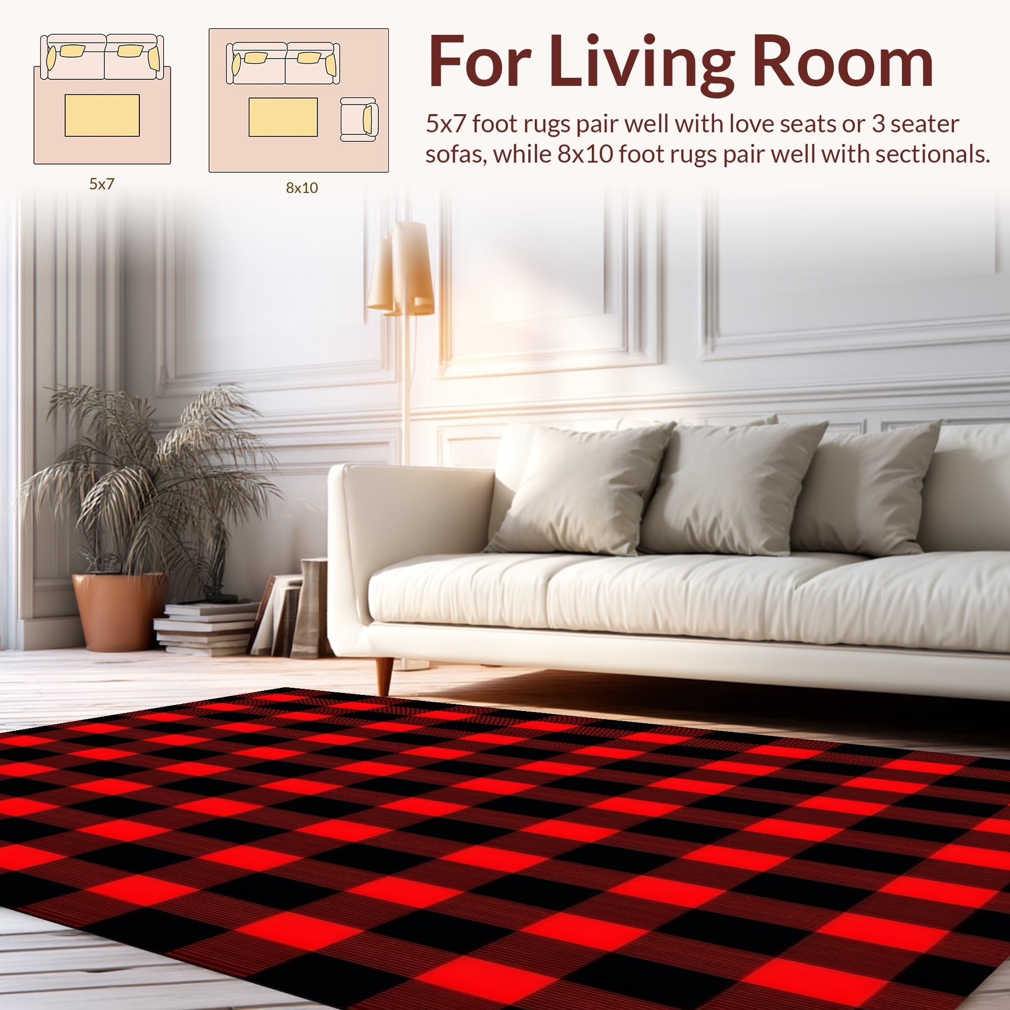 Ultra Soft Area Rug, Non Slip, Stain Resistant, Washable Area Rugs for Living Room, Bedroom, Inviting Rustic Layered Design Scheme(Red) Overview: