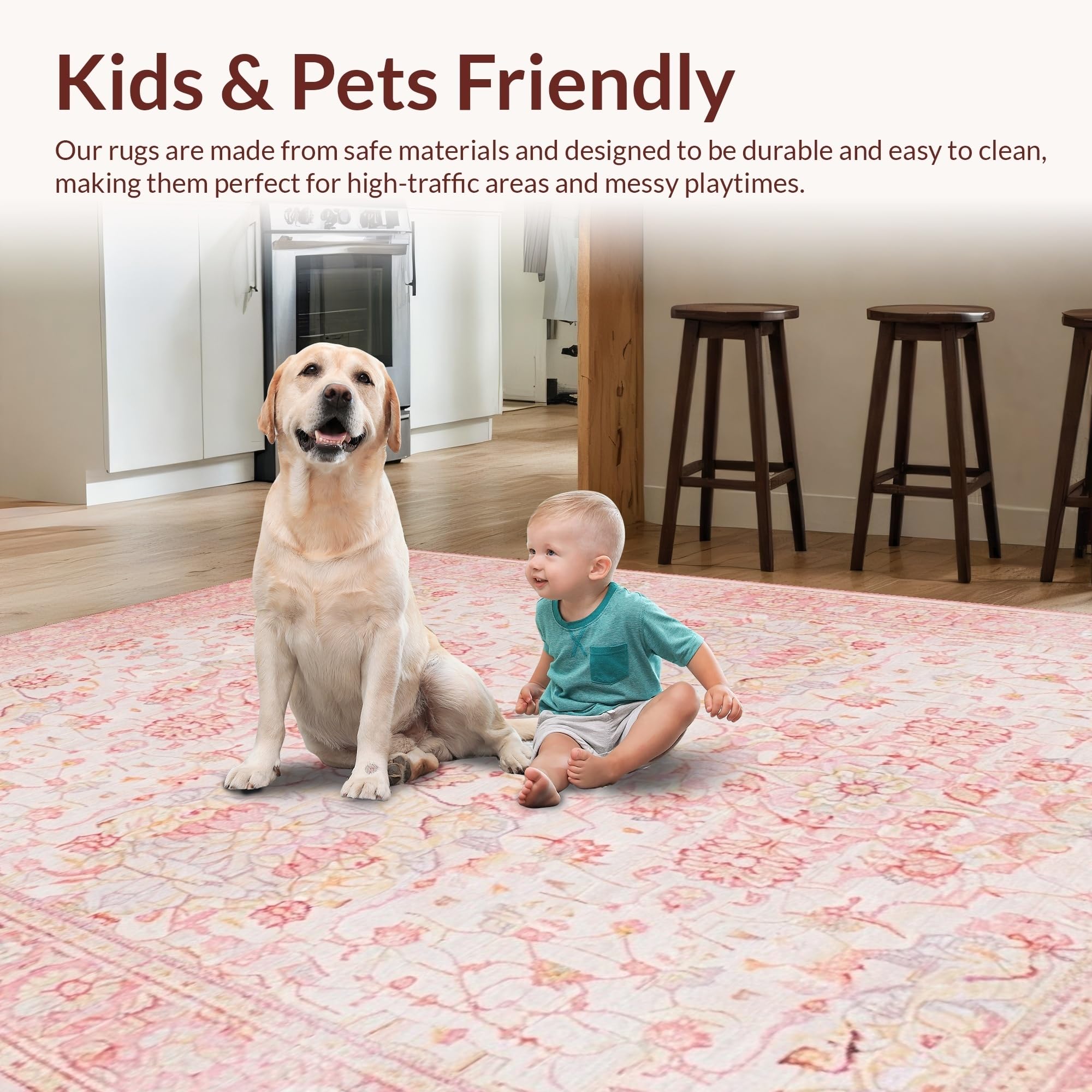 Ultra Soft Area Rug, Non Slip, Stain Resistant, Washable Area Rugs for Living Room, Bedroom, Inviting Textured Warmth in Design(Pink) Overview: