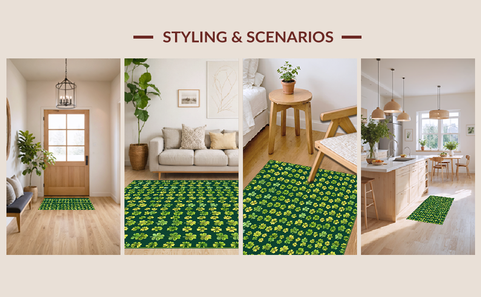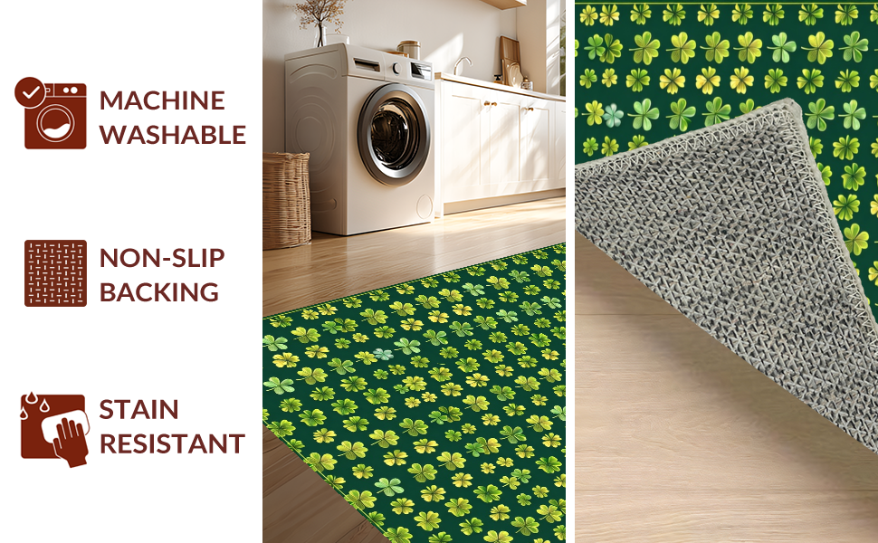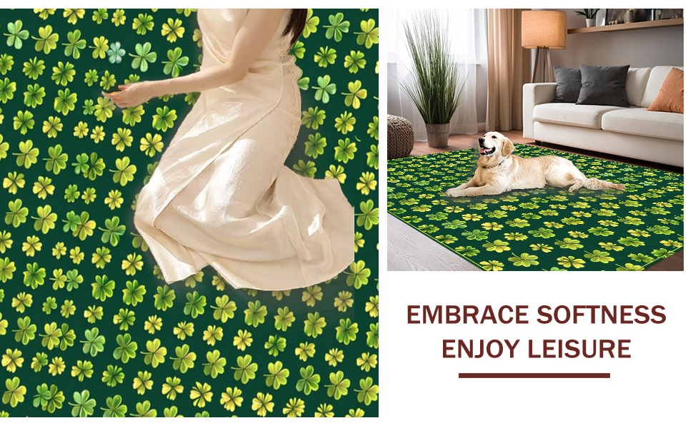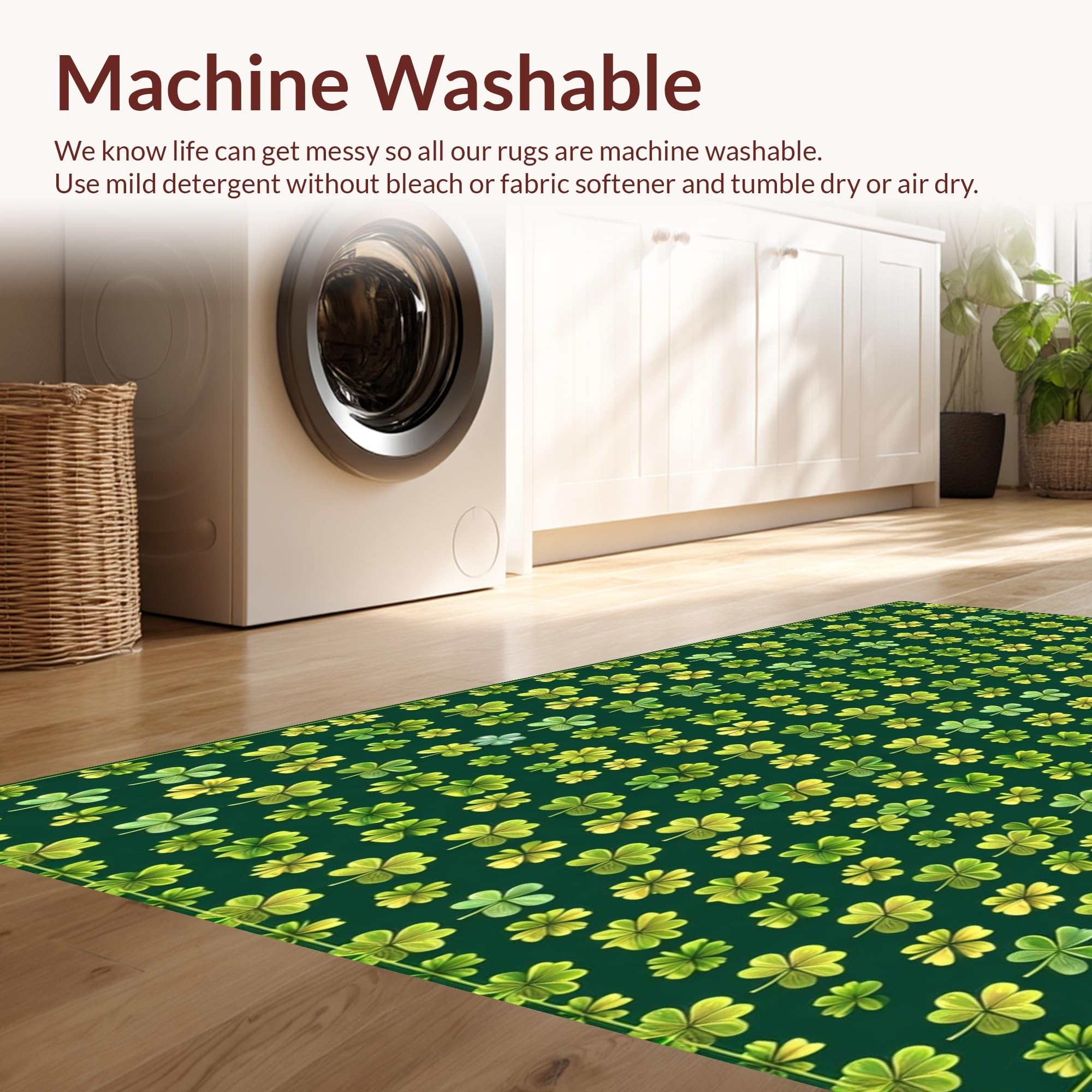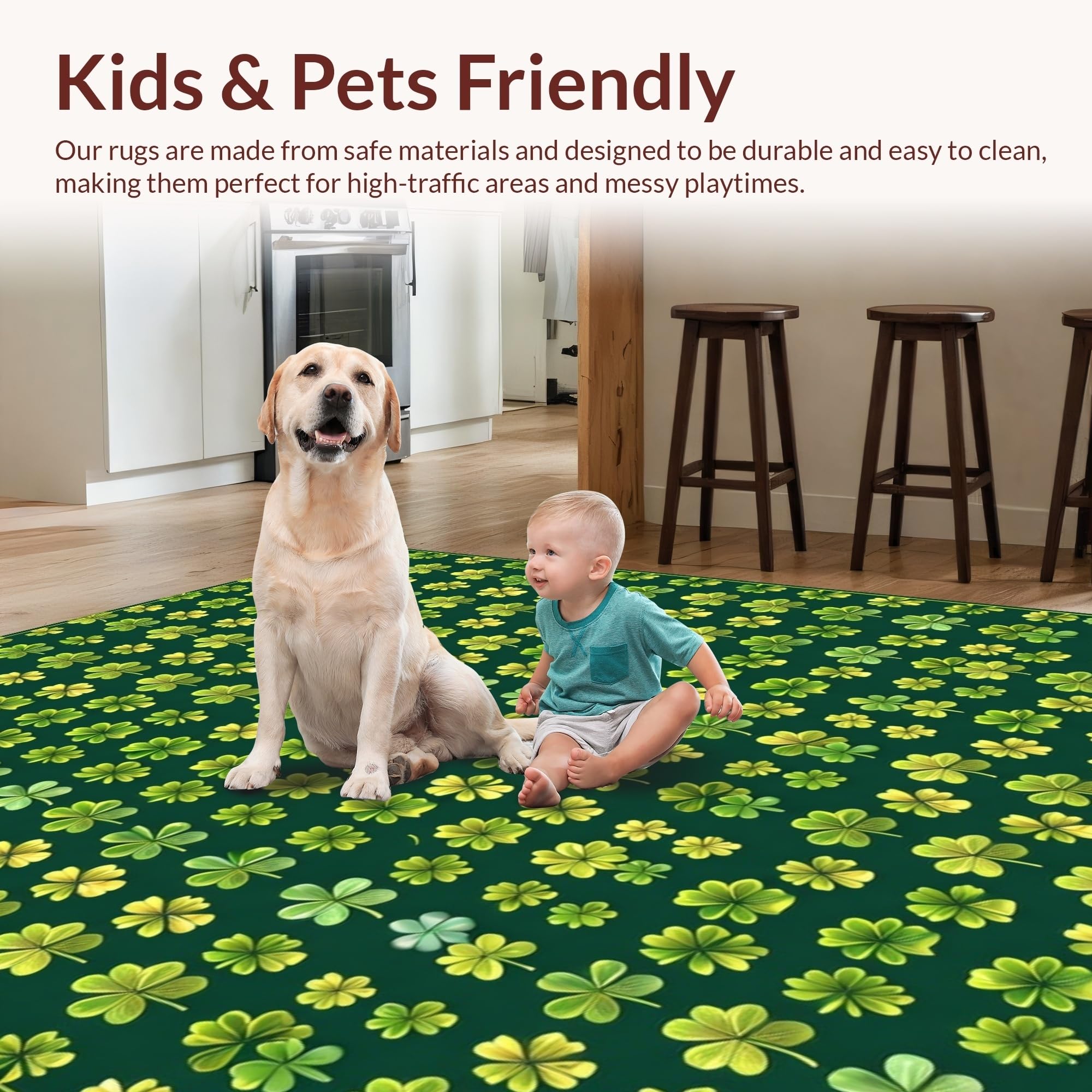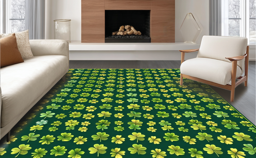 Ultra Soft Area Rug, Non Slip, Stain Resistant, Washable Area Rugs for Living Room, Bedroom, Inviting Whimsical Shamrock Design(Green) Overview: