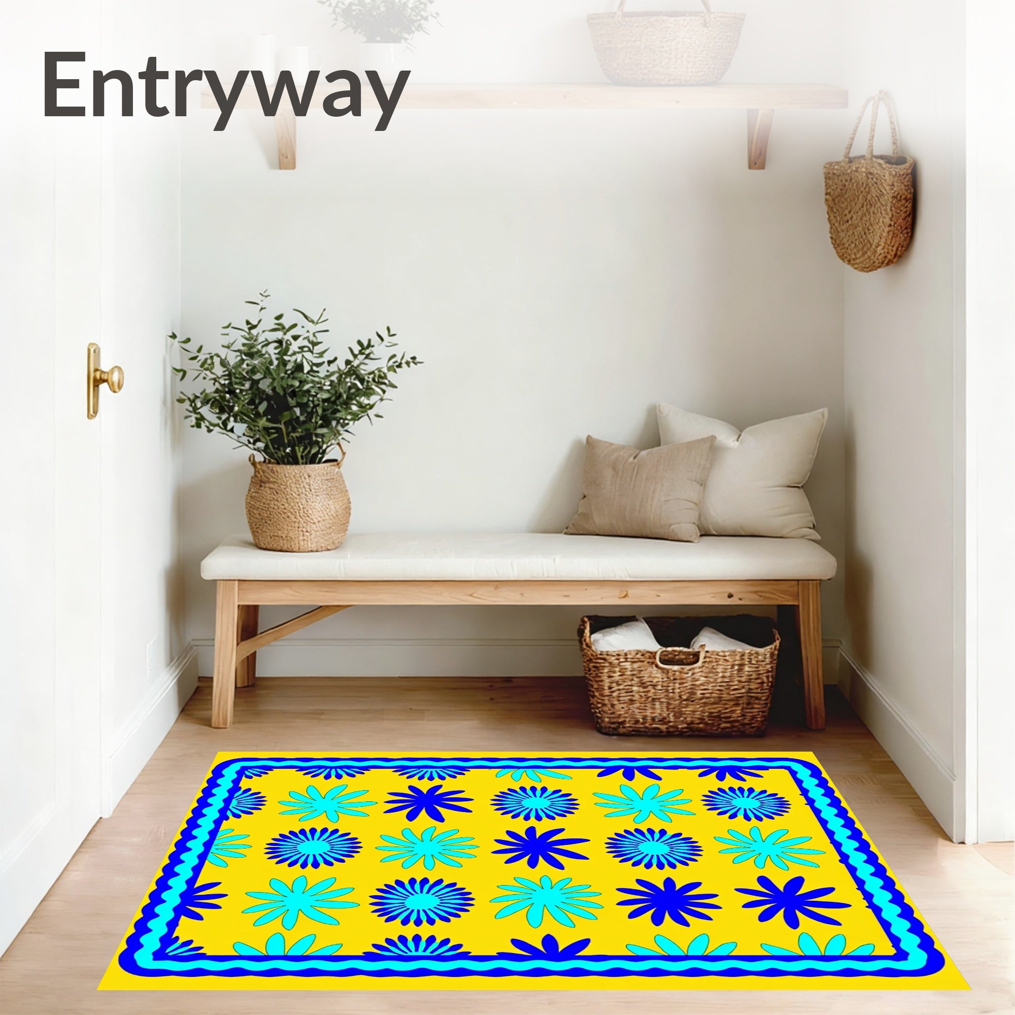 Flatwoven High Traffic Area Rug, Island Tropical Braid Exotic, Non Slip, Stain Resistant, Washable Area Rugs for Living Room, Bedroom (Yellow) Overview: