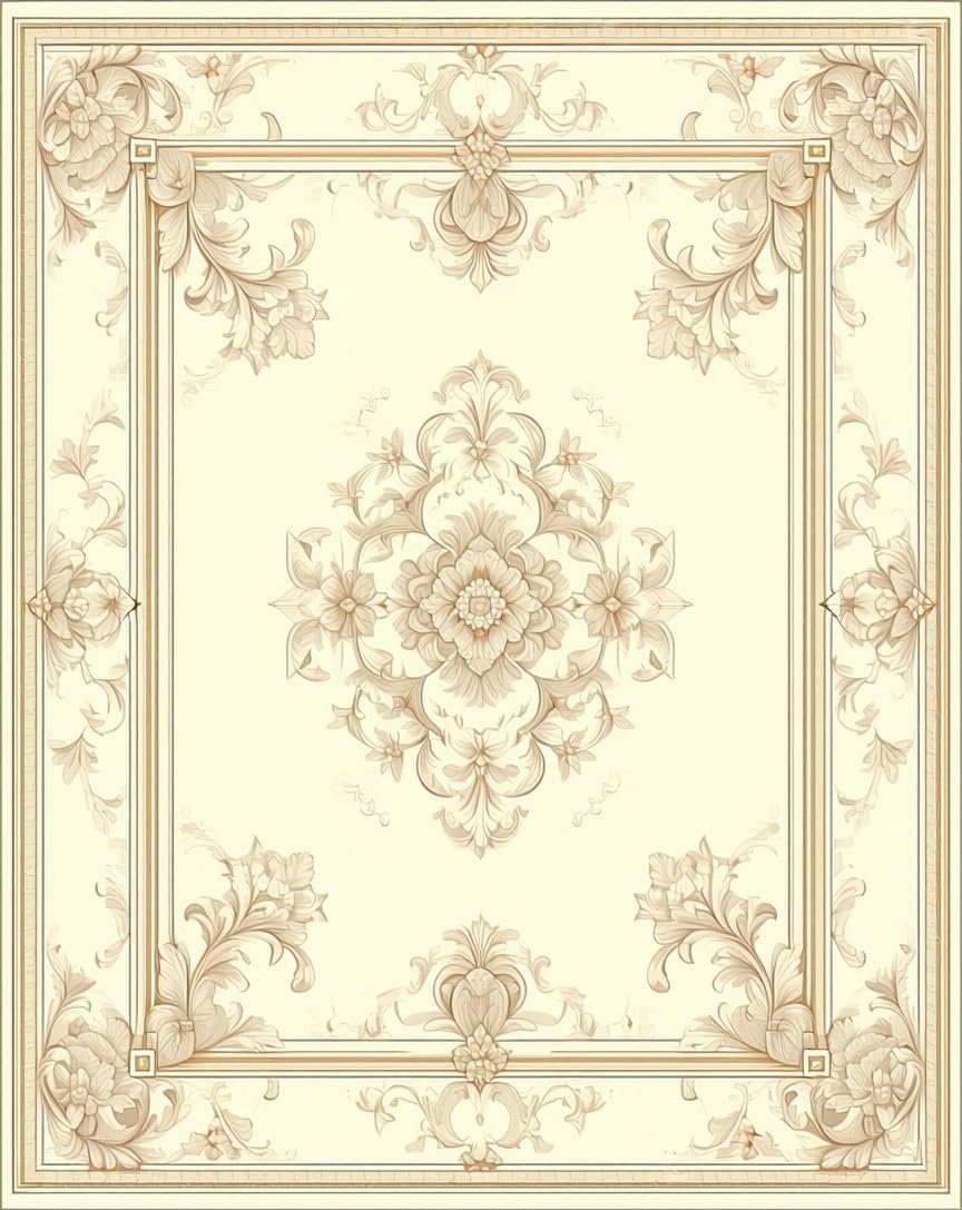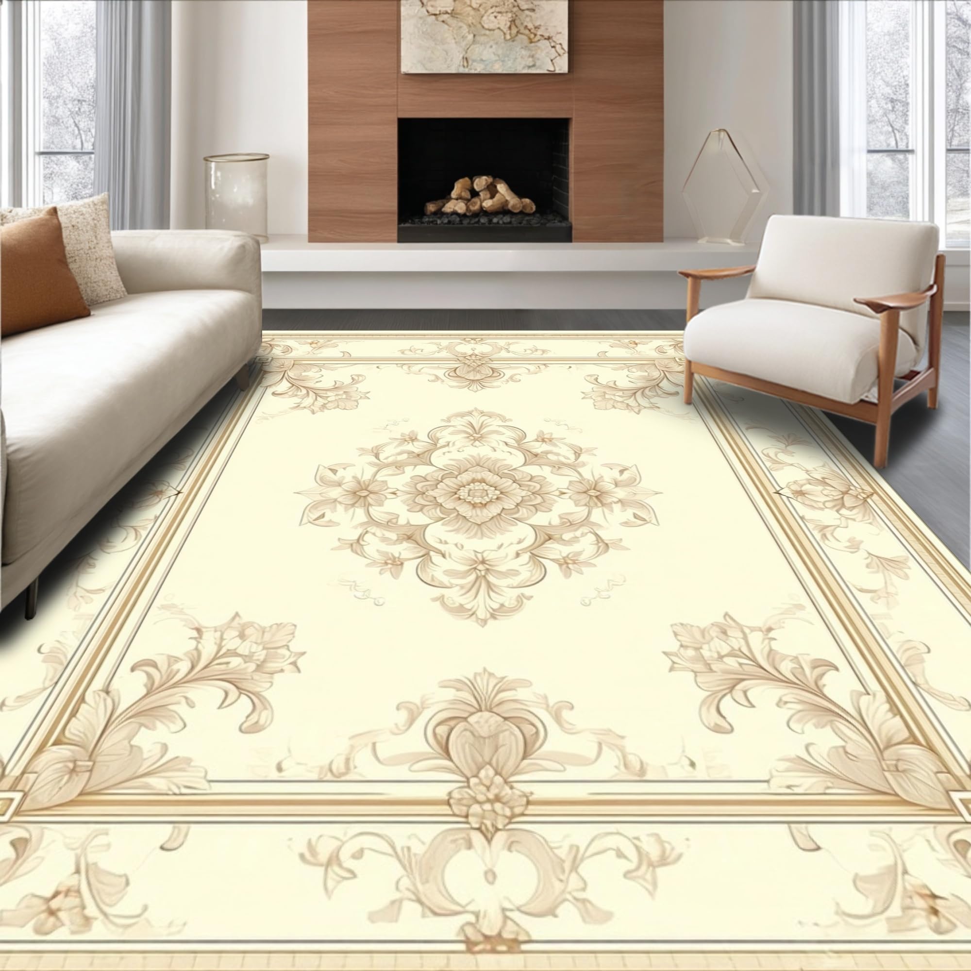 Ultra Soft Area Rug, Non Slip, Stain Resistant, Washable Area Rugs for Living Room, Bedroom, Ivory Beige Baroque Medallion Decorative Scroll Motifs(Beige) Overview: