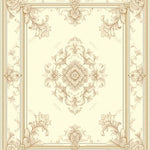 Ivory Beige Baroque Medallion Decorative Scroll Motifs(Beige)