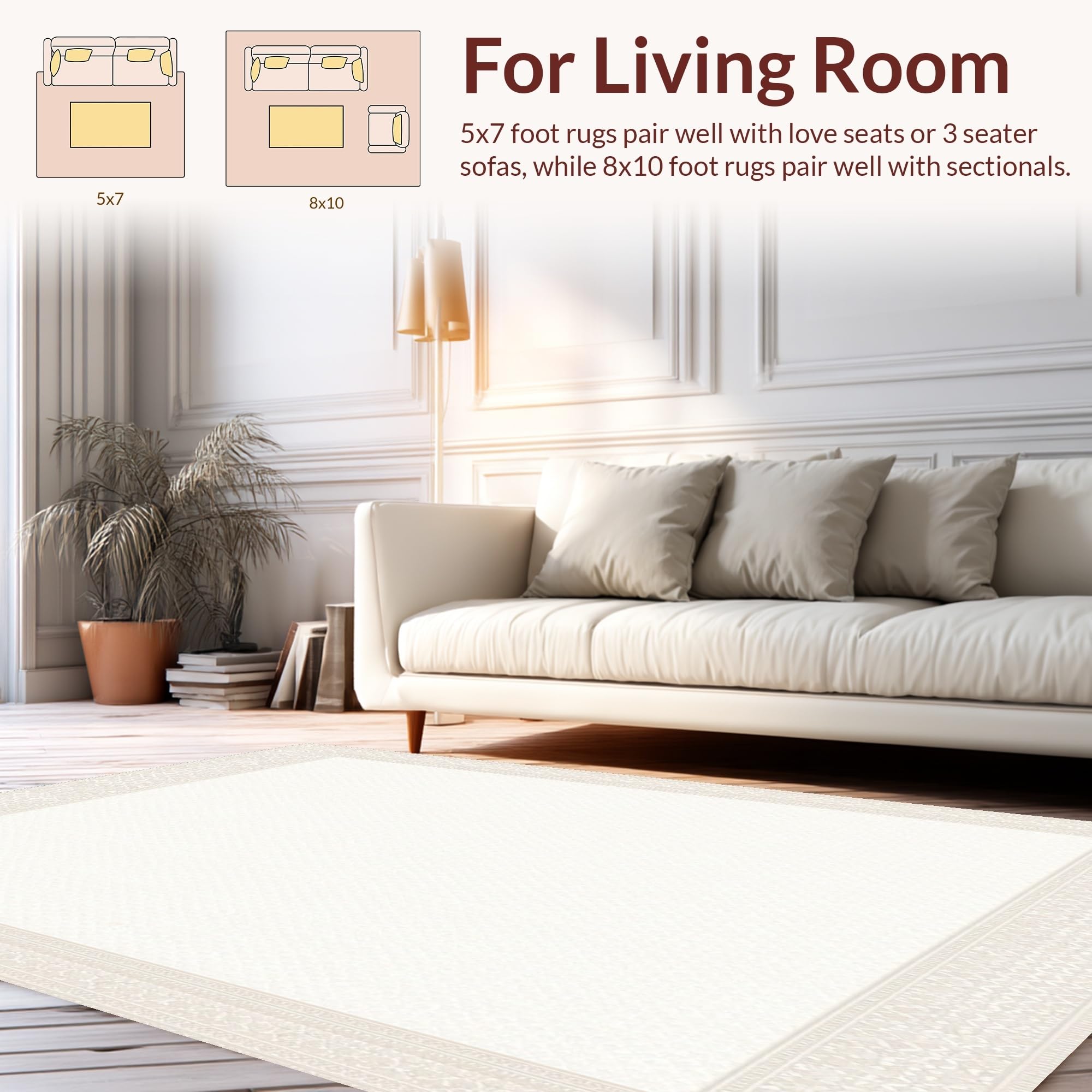 Ultra Soft Area Rug, Non Slip, Stain Resistant, Washable Area Rugs for Living Room, Bedroom, Ivory Beige with Quilted and Finish(Beige) Overview: