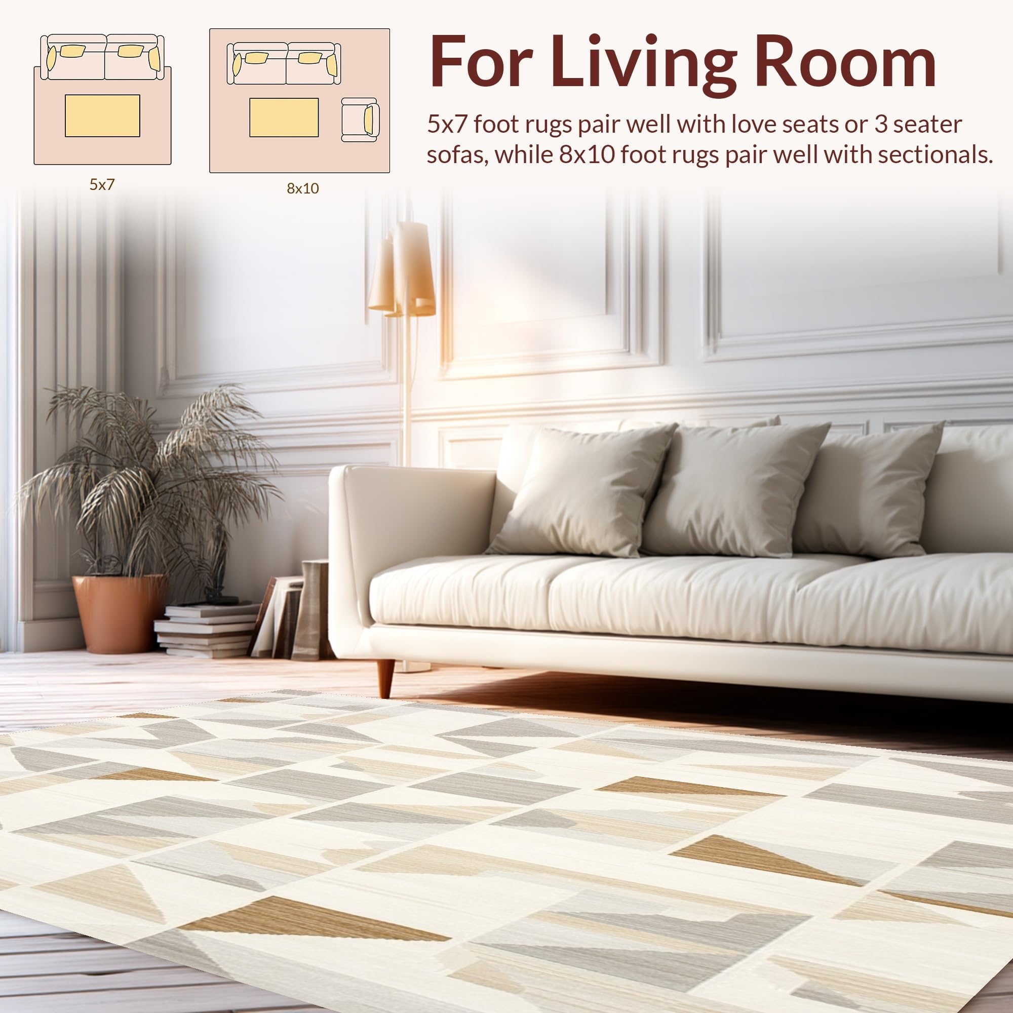 Ultra Soft Area Rug, Non Slip, Stain Resistant, Washable Area Rugs for Living Room, Bedroom, Ivory Dream Modern Geometric with Light Tones(Beige) Overview: