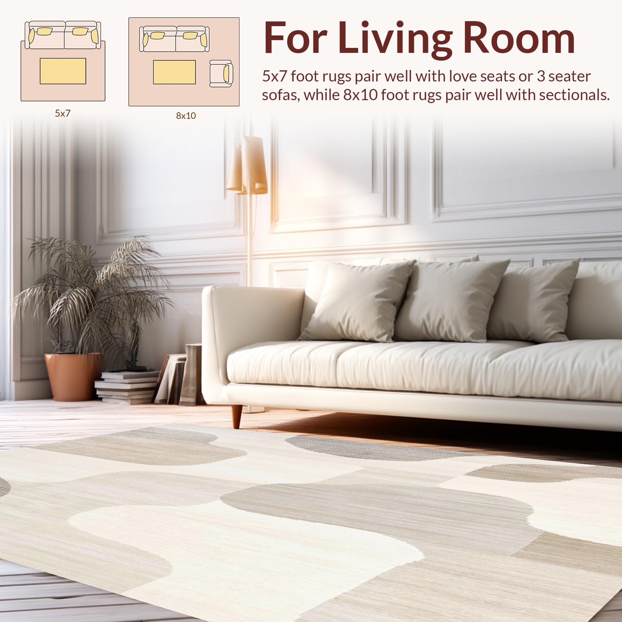 Ultra Soft Area Rug, Non Slip, Stain Resistant, Washable Area Rugs for Living Room, Bedroom, Ivory Echoes Area Cream Abstract Texture Illusion(Beige) Overview: