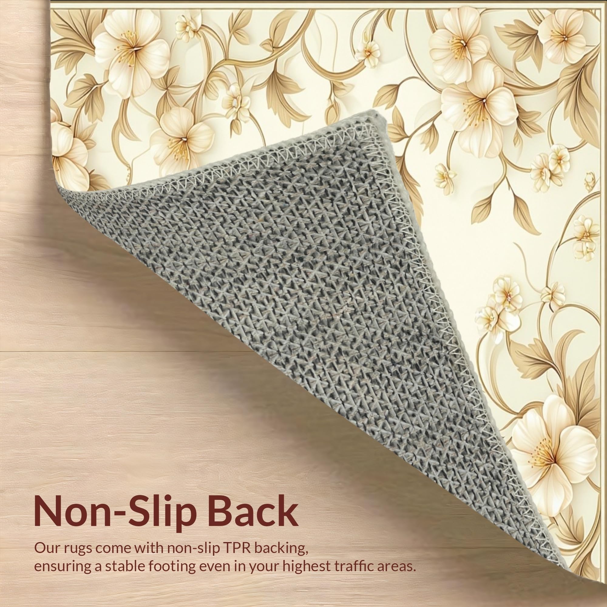 Ultra Soft Area Rug, Non Slip, Stain Resistant, Washable Area Rugs for Living Room, Bedroom, Ivory Garden Motif for Living Space Charm(Beige) Overview: