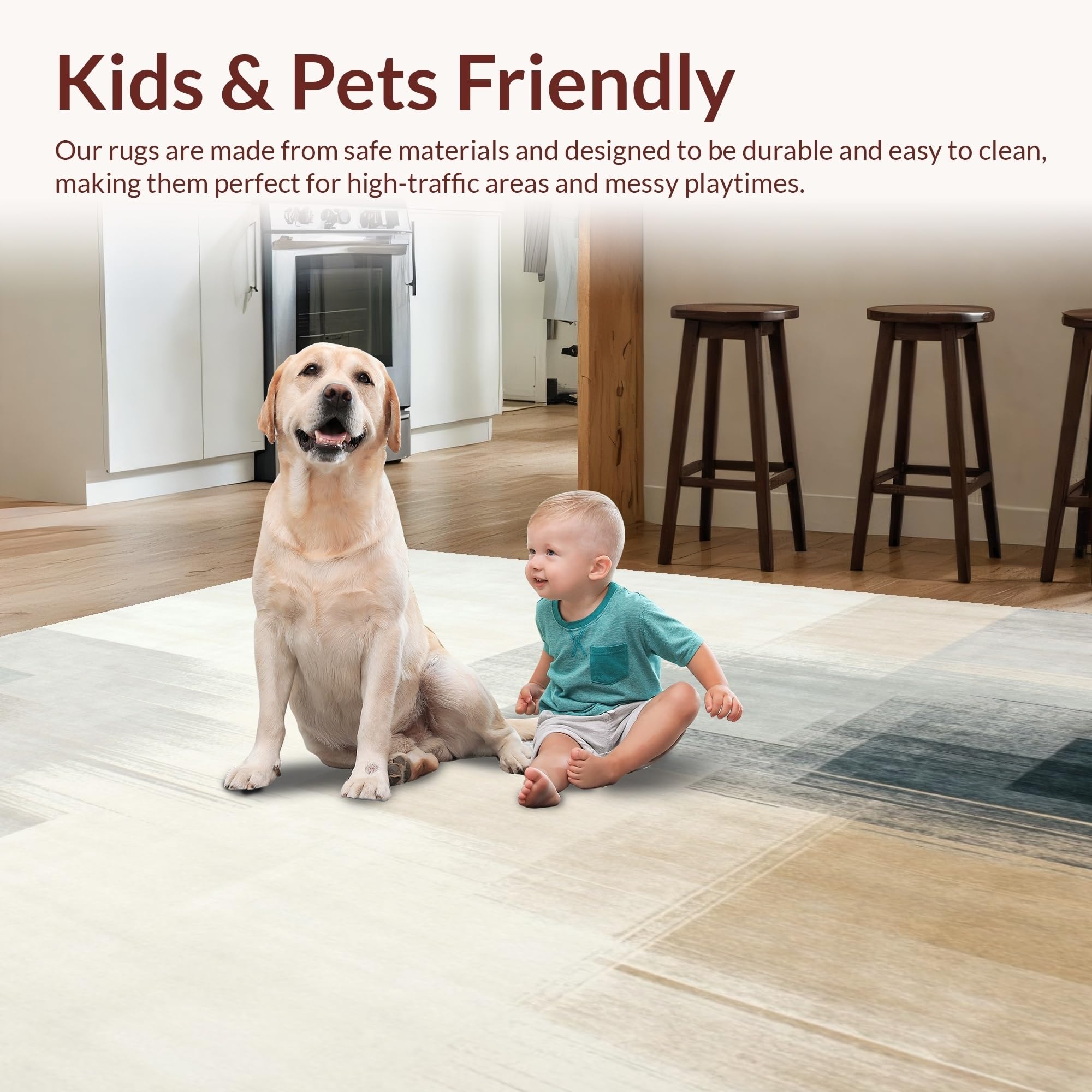 Ultra Soft Area Rug, Non Slip, Stain Resistant, Washable Area Rugs for Living Room, Bedroom, Ivory Whisper Contemporary Abstract Art for Elegant Interiors(Beige) Overview: