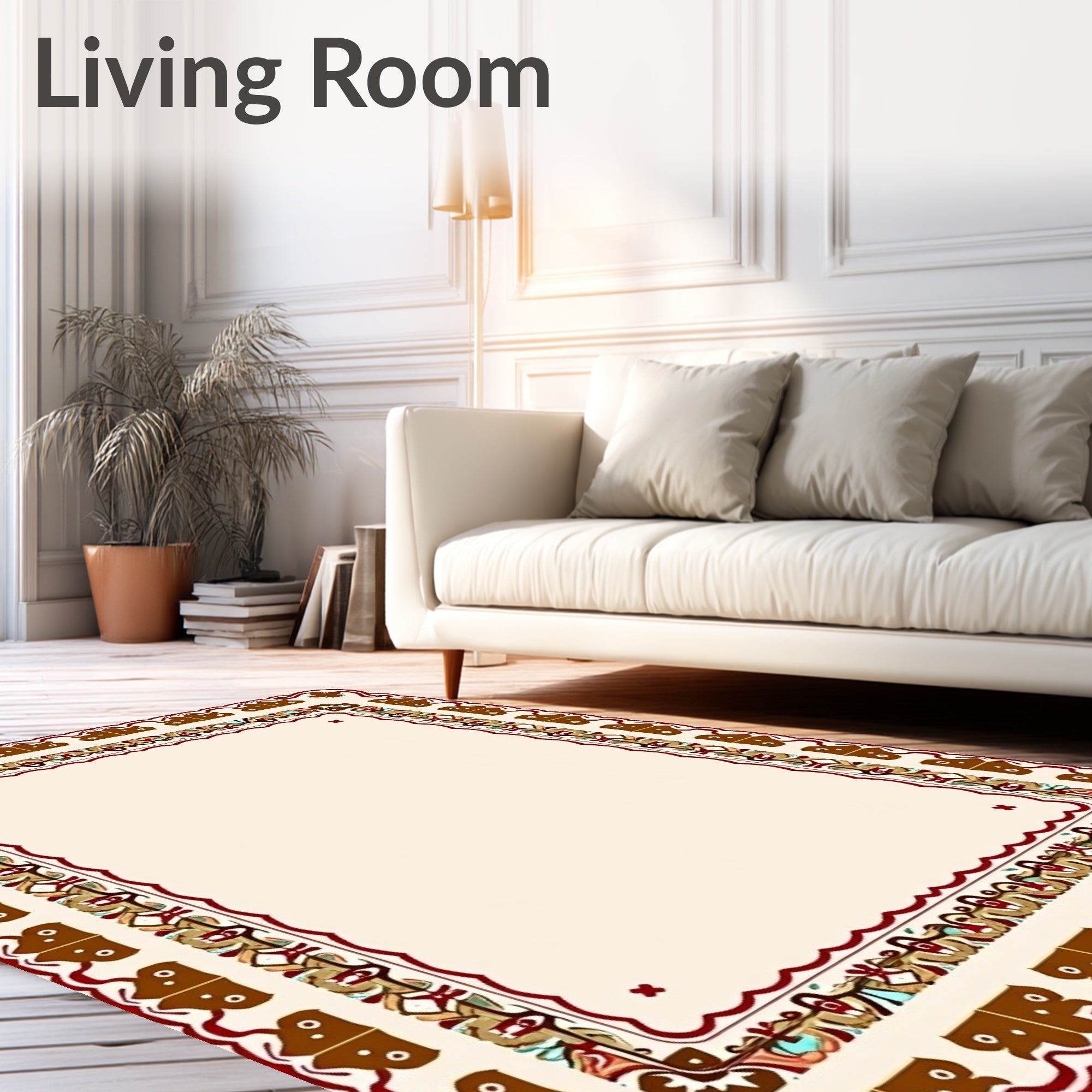 Ultra Soft Area Rug, Non Slip, Stain Resistant, Washable Area Rugs for Living Room, Bedroom, Jolly Gingerbread House Village with Frosted Peppermint Accents(Beige) Overview: