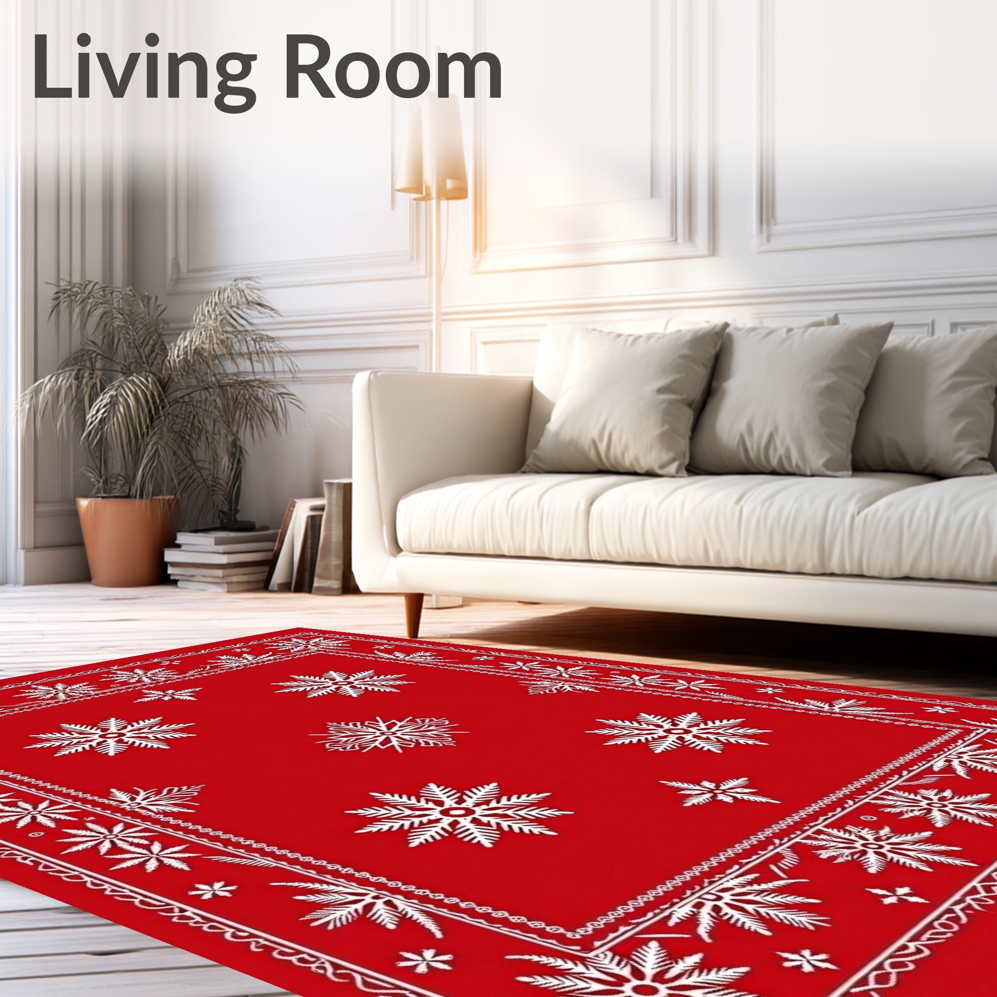 Ultra Soft Area Rug, Non Slip, Stain Resistant, Washable Area Rugs for Living Room, Bedroom, Jolly Holiday Celebration Magical Enchanted Wonderland Tapestry(Red) Overview: