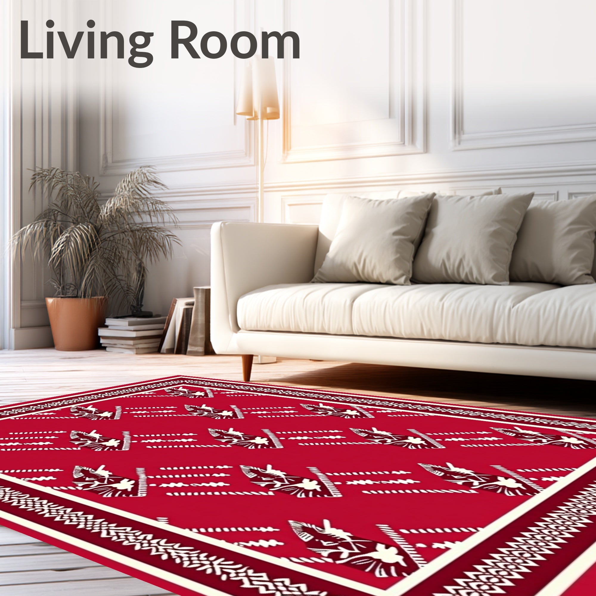 Ultra Soft Area Rug, Non Slip, Stain Resistant, Washable Area Rugs for Living Room, Bedroom, Jolly Pinecone Zigzag Festive Jubilee Unique(Red) Overview: