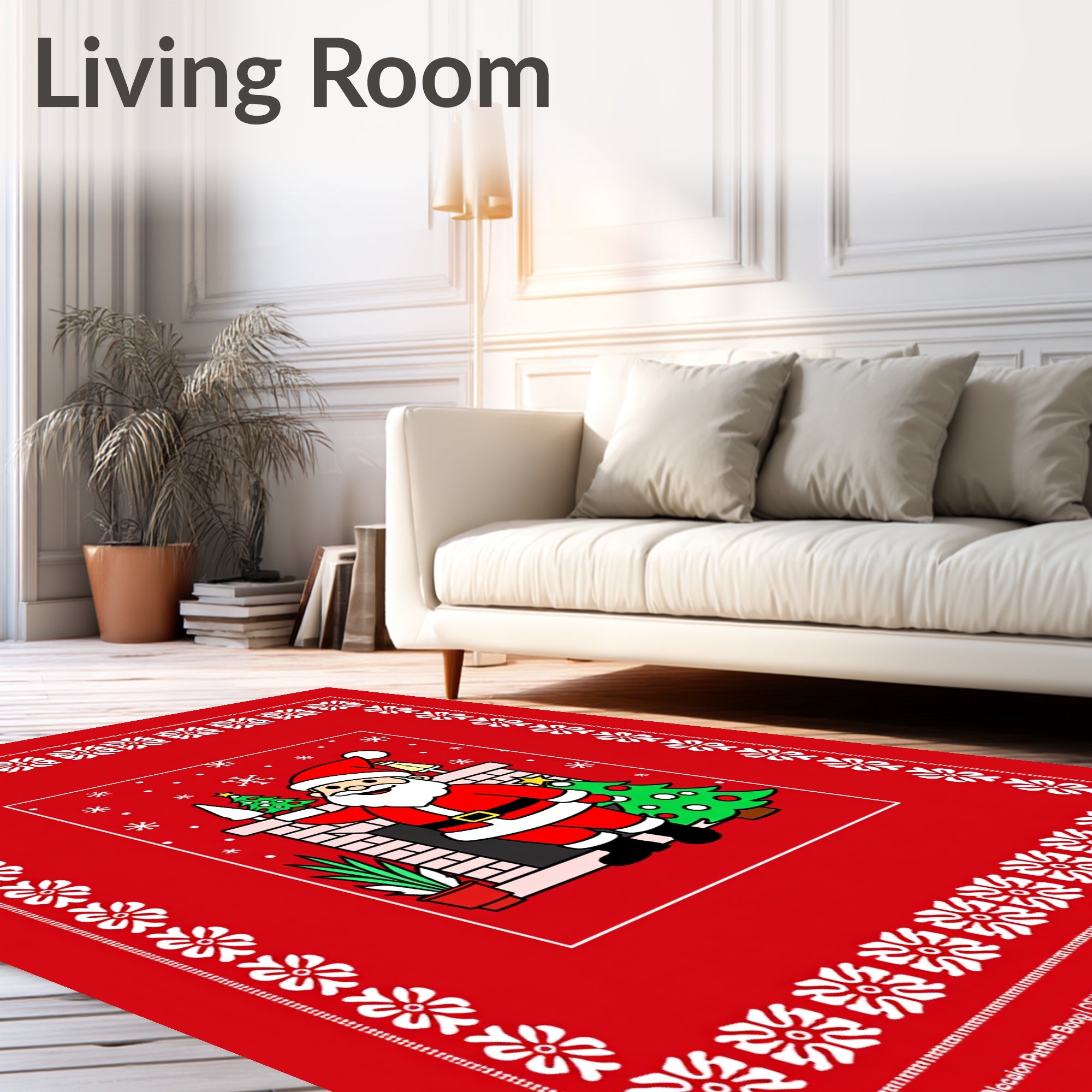 Ultra Soft Area Rug, Non Slip, Stain Resistant, Washable Area Rugs for Living Room, Bedroom, Jolly Saint Nick Hearth Wonderland Holiday Fireplace Festive(Red) Overview: