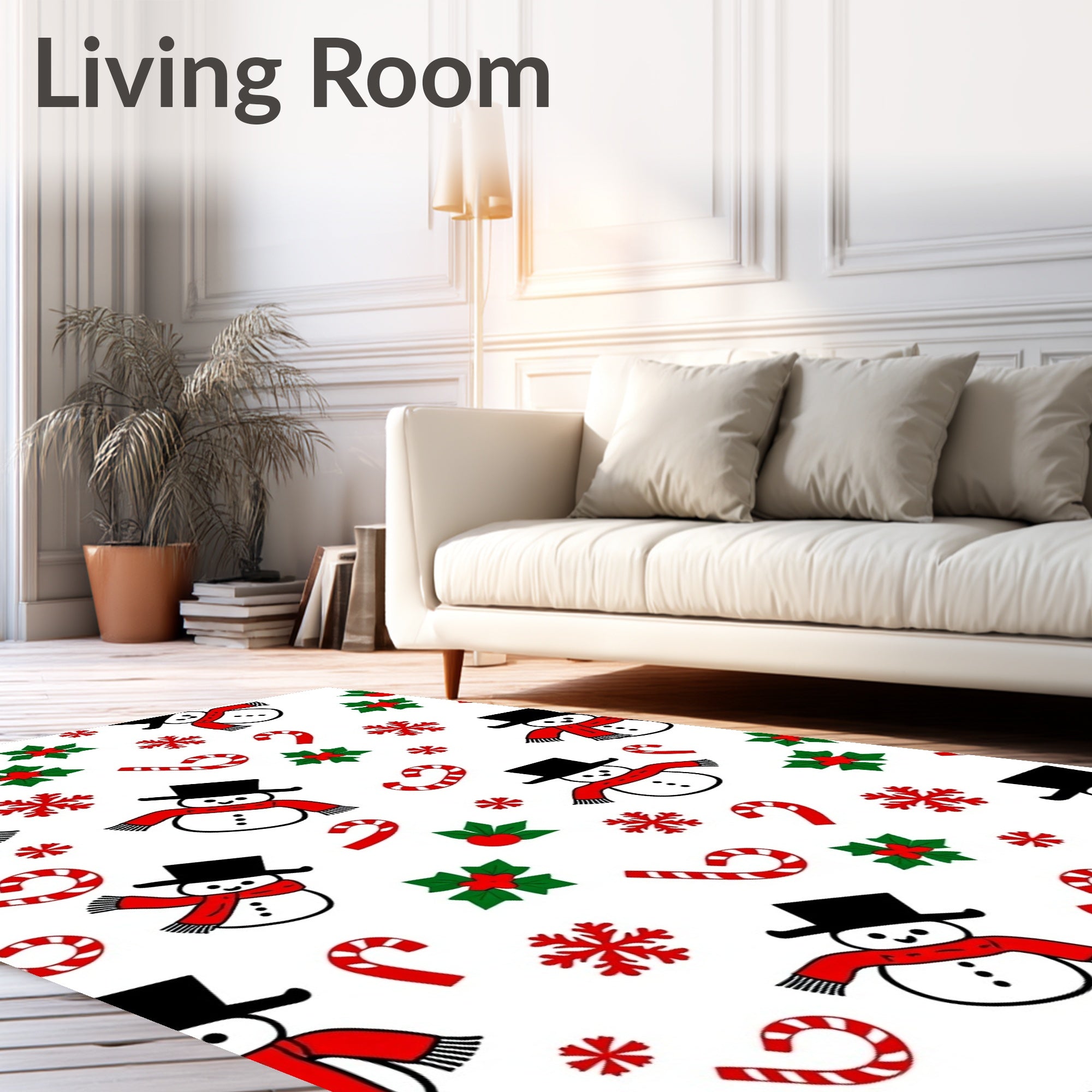 Ultra Soft Area Rug, Non Slip, Stain Resistant, Washable Area Rugs for Living Room, Bedroom, Jolly Snowman Frosty Winter Wonderland Holiday Festive(White) Overview: