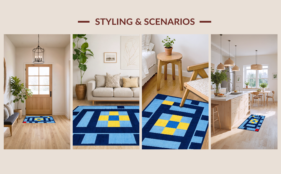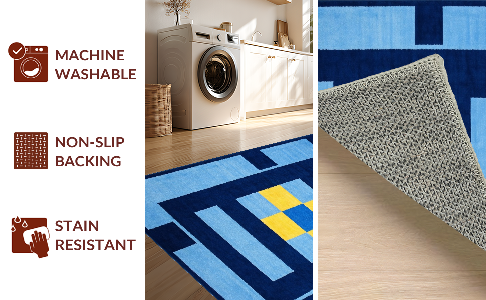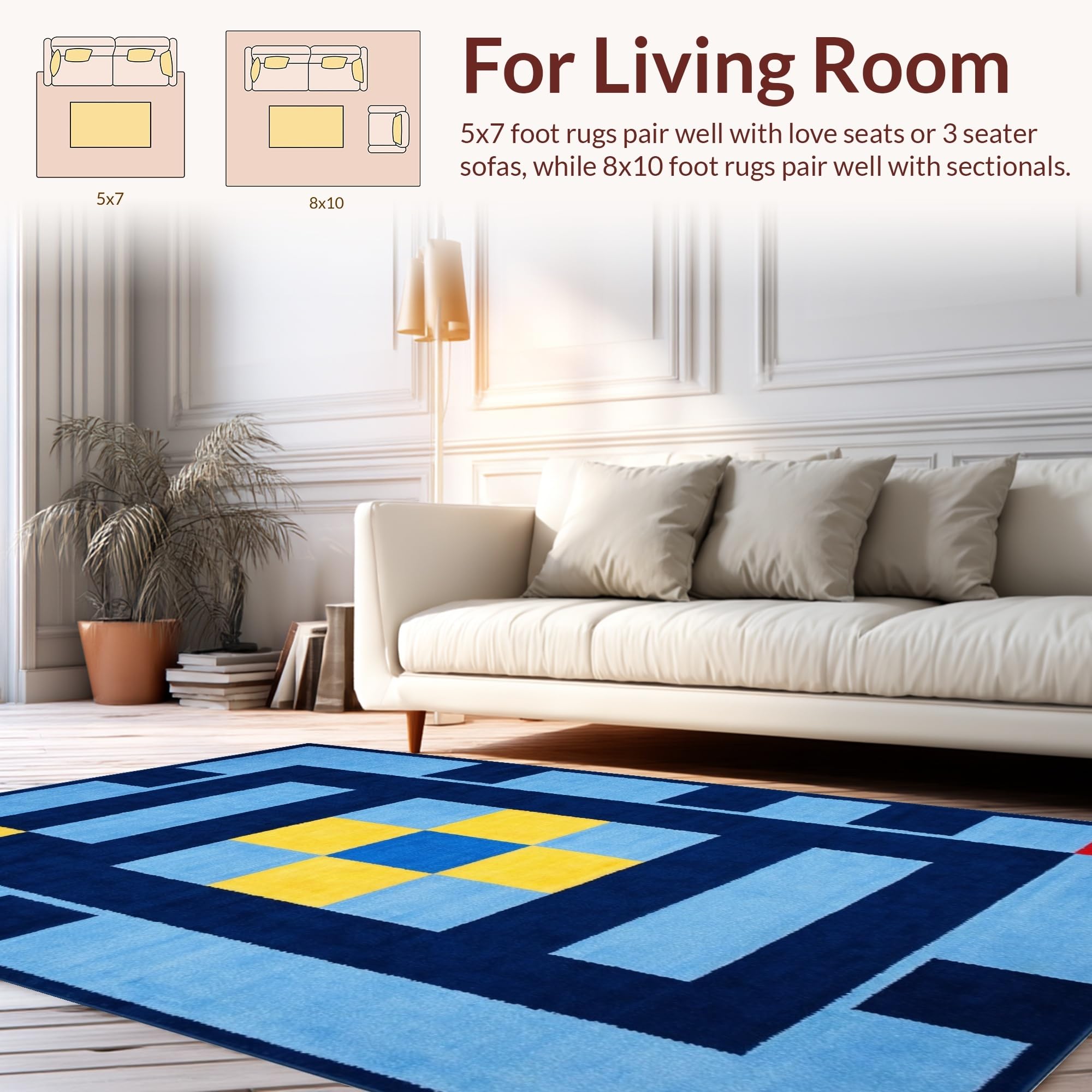 Ultra Soft Area Rug, Non Slip, Stain Resistant, Washable Area Rugs for Living Room, Bedroom, Joyful Activity-Focused Rug Design(Blue) Overview:
