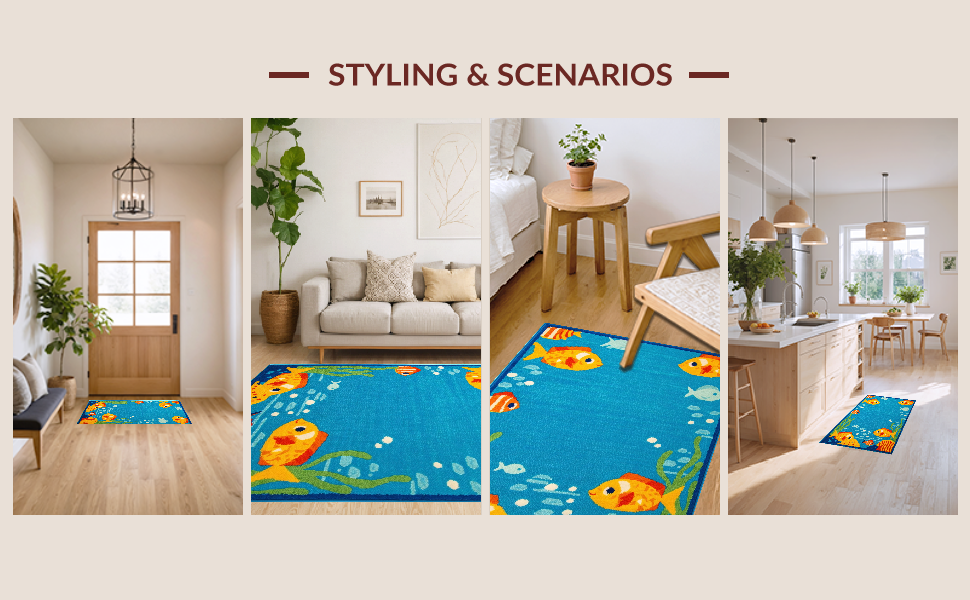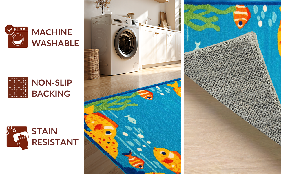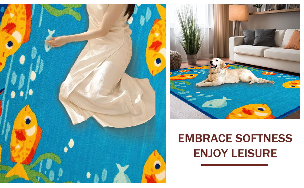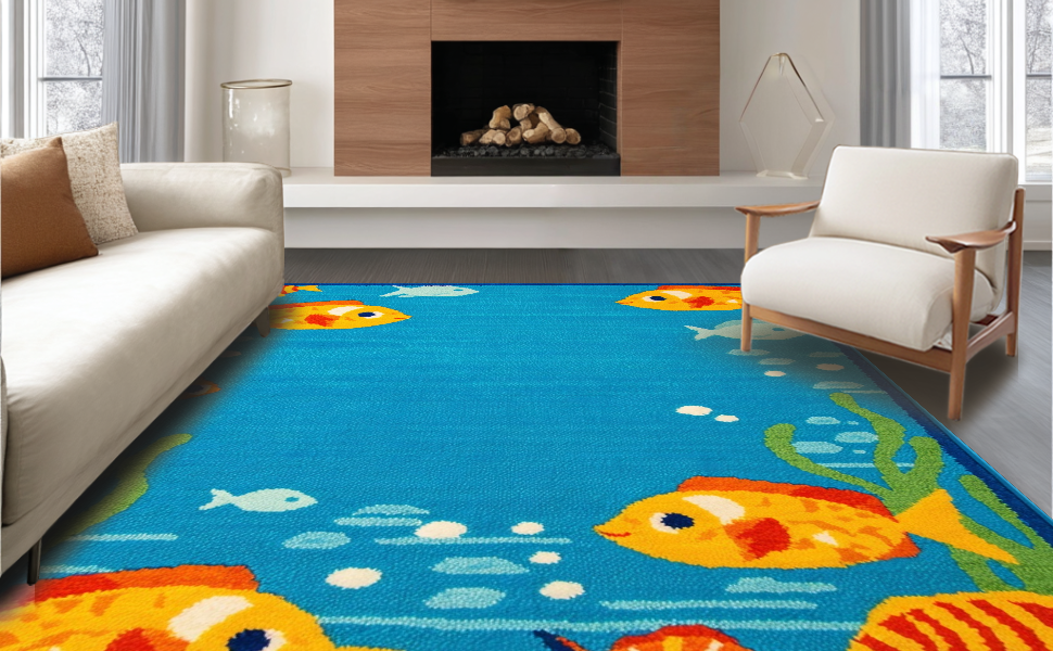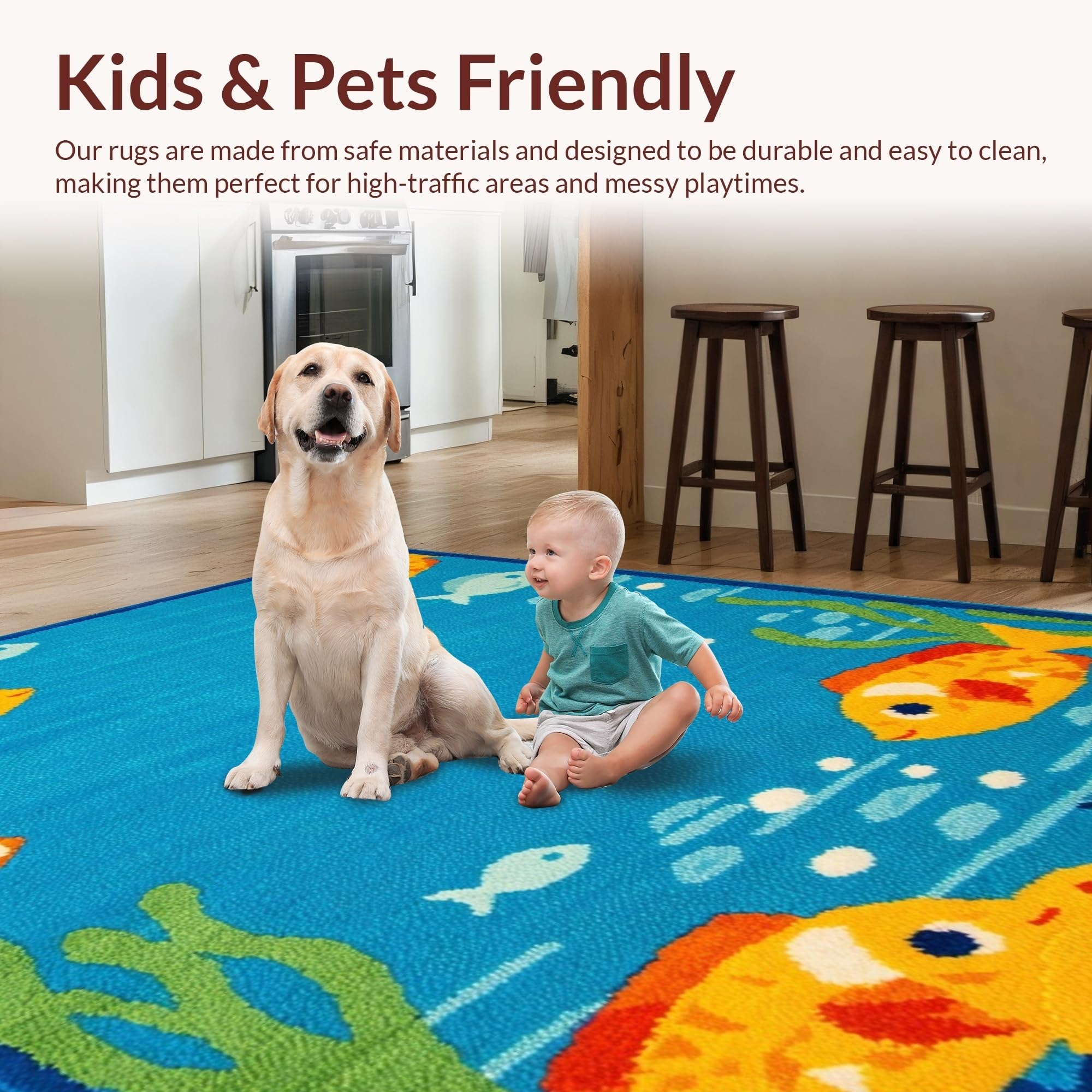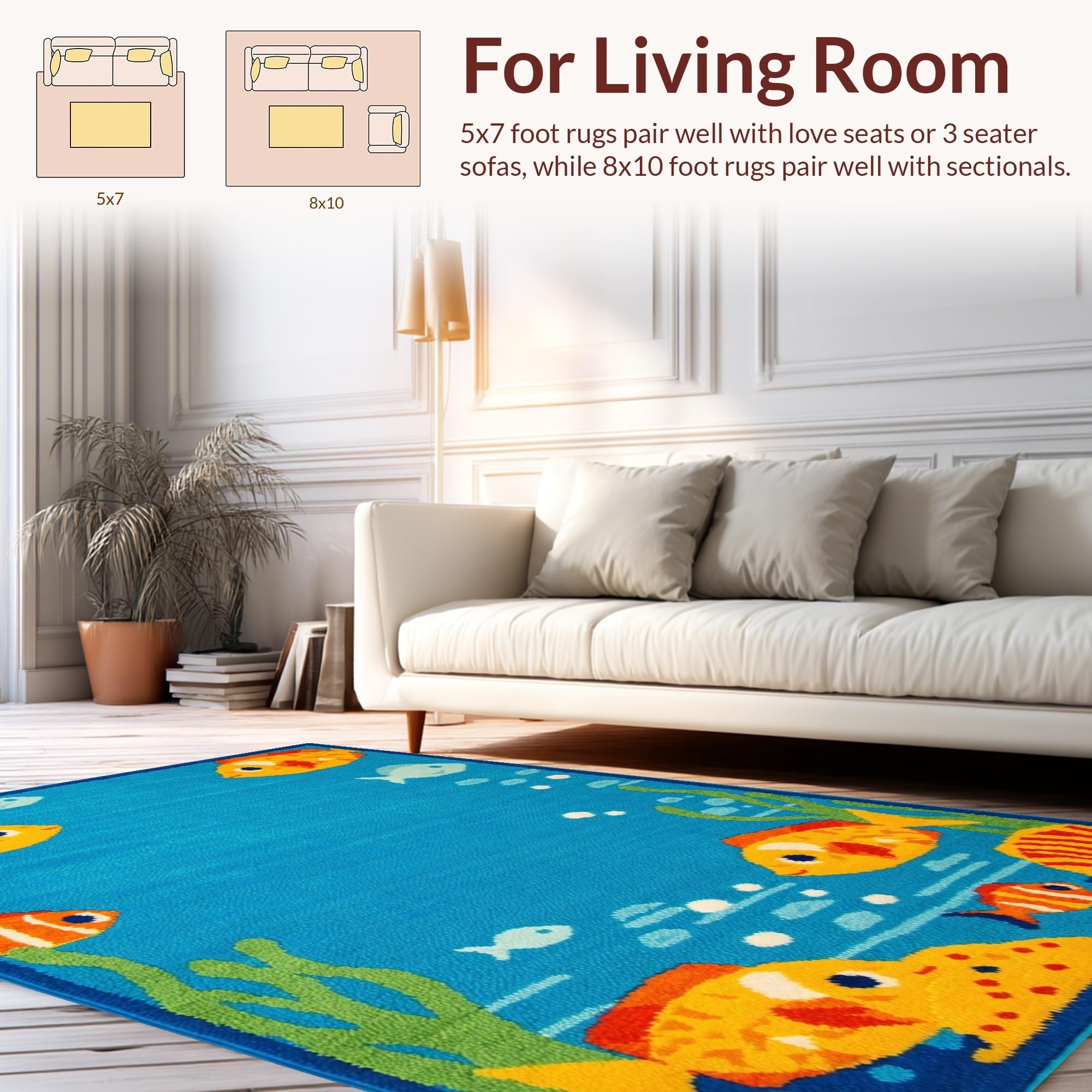 Ultra Soft Area Rug, Non Slip, Stain Resistant, Washable Area Rugs for Living Room, Bedroom, Joyful Aquatic Inspired Accent(Blue) Overview: