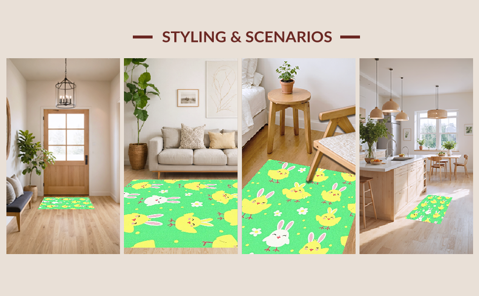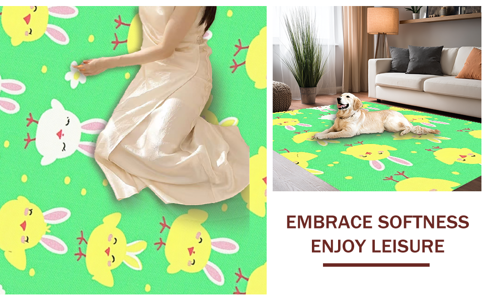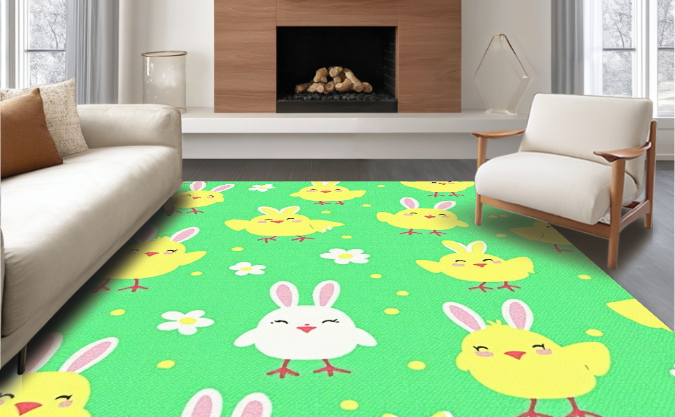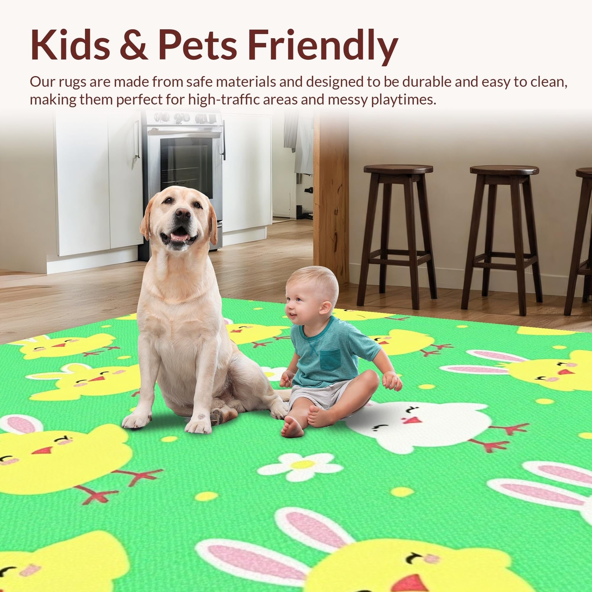 Ultra Soft Area Rug, Non Slip, Stain Resistant, Washable Area Rugs for Living Room, Bedroom, Joyful Bright Color Palette Design(Green) Overview: