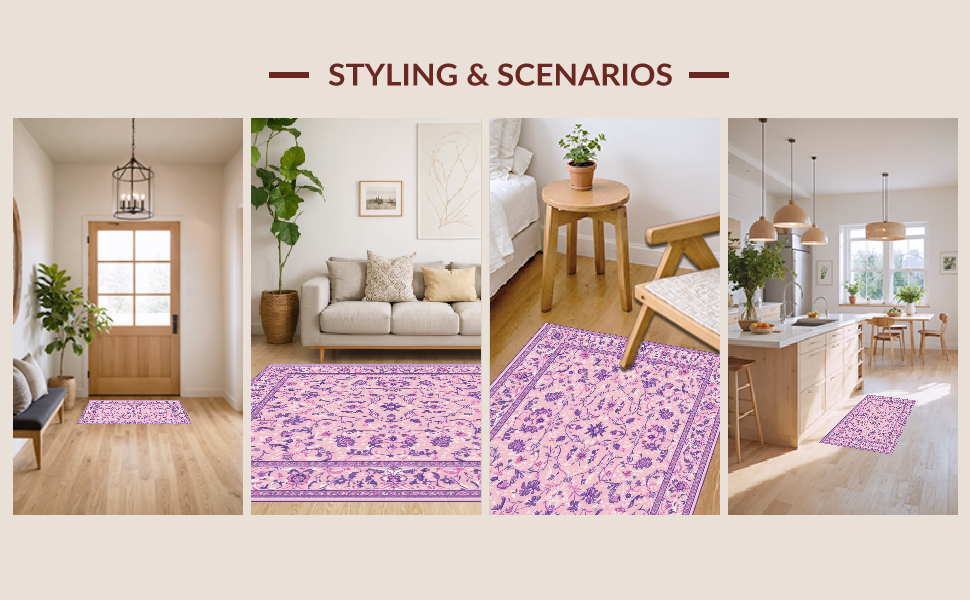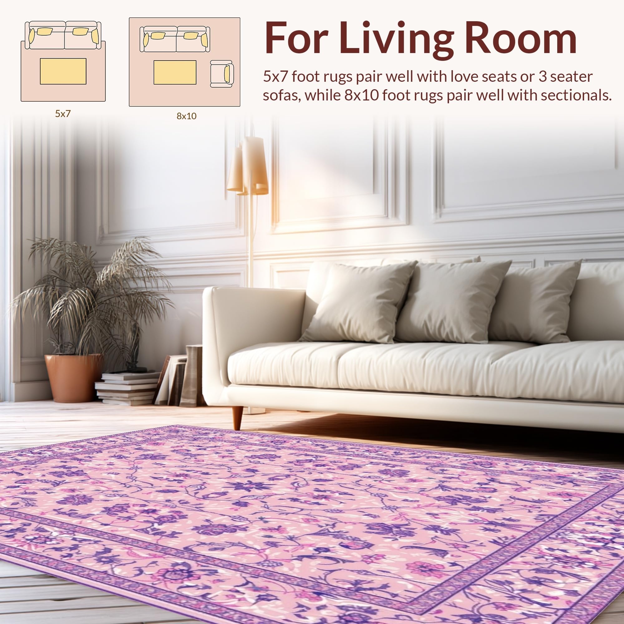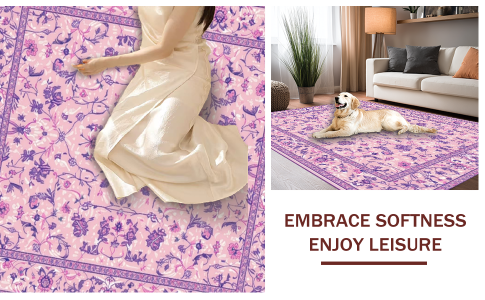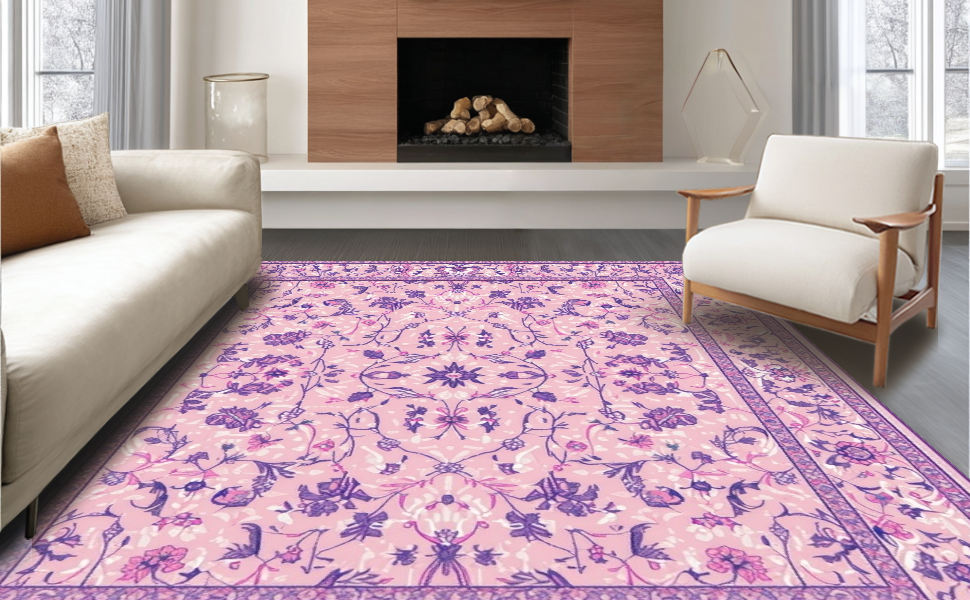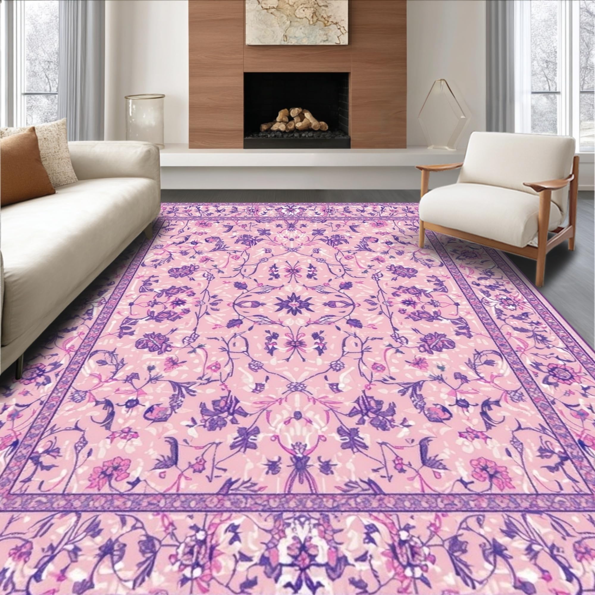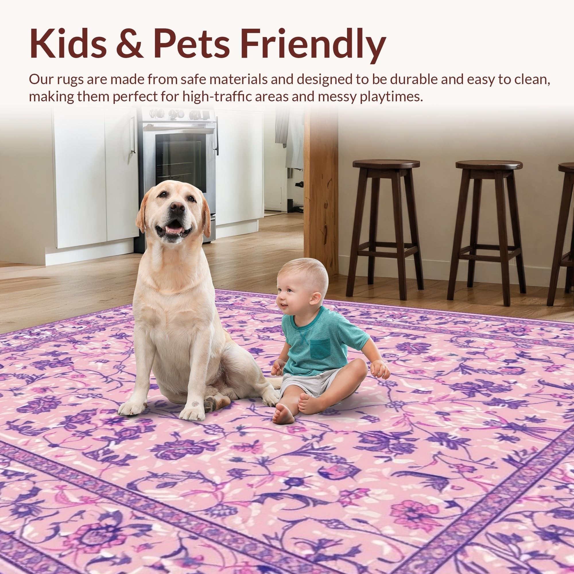 Ultra Soft Area Rug, Non Slip, Stain Resistant, Washable Area Rugs for Living Room, Bedroom, Joyful Bright Colorful Imagery(Pink) Overview: