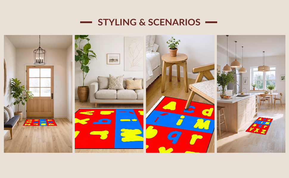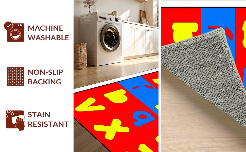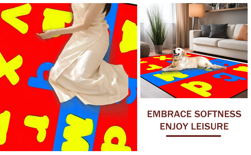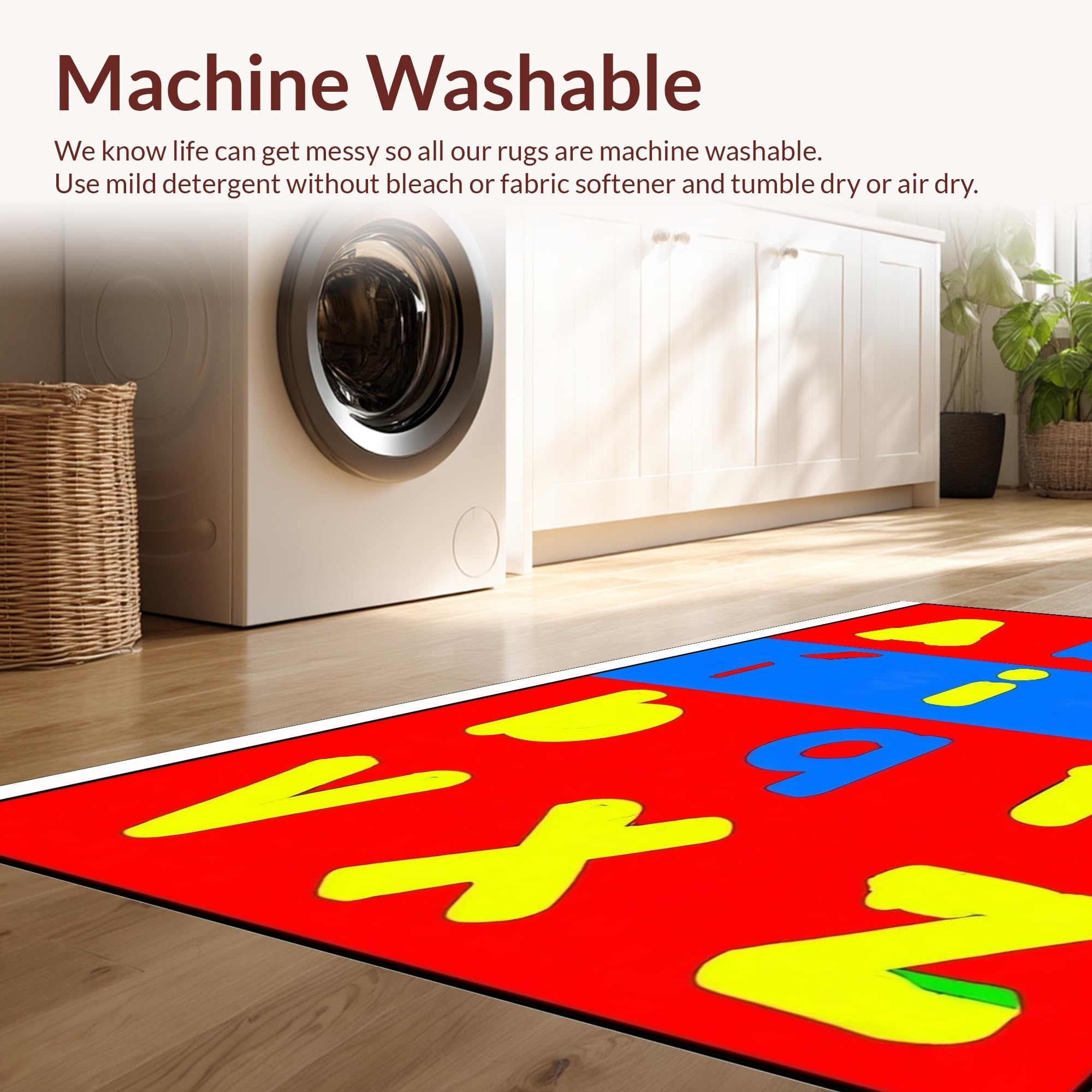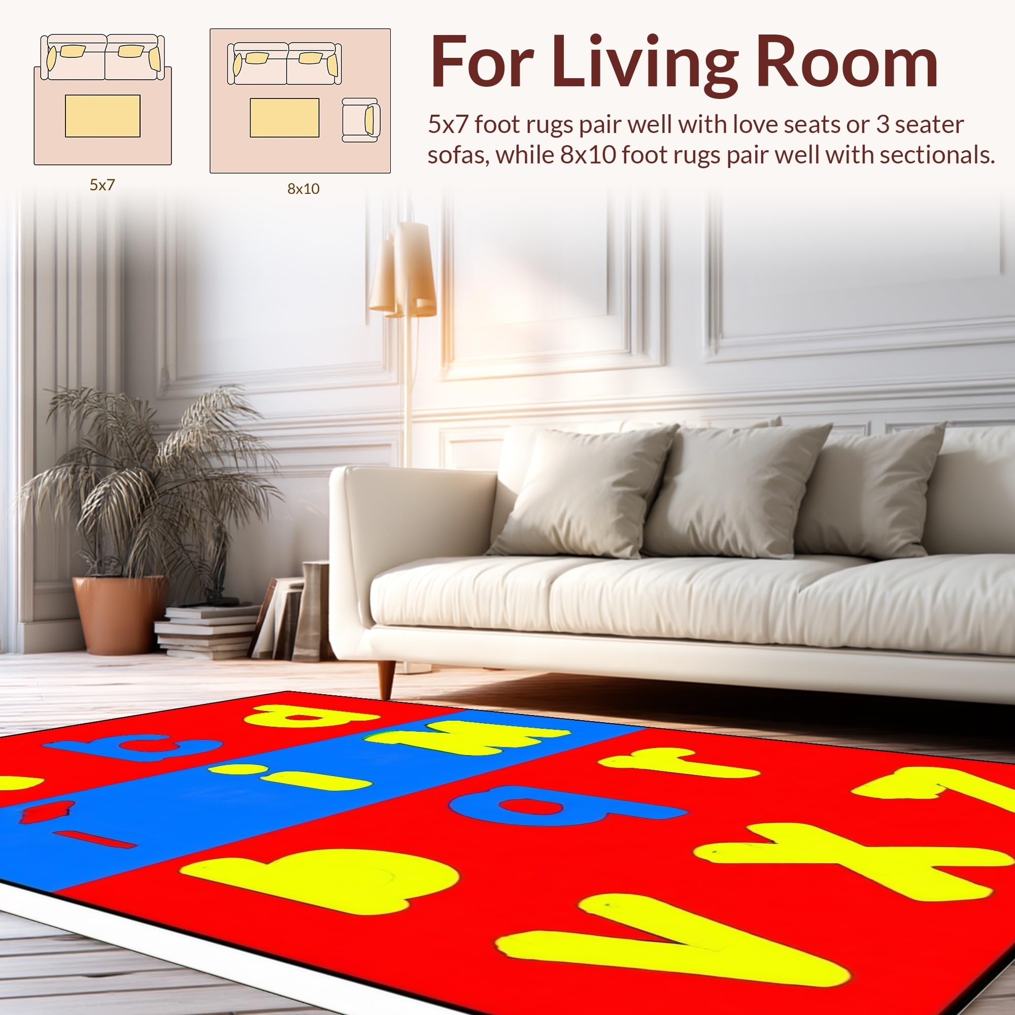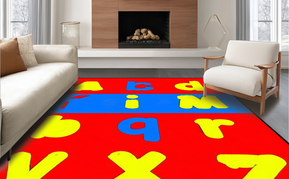 Ultra Soft Area Rug, Non Slip, Stain Resistant, Washable Area Rugs for Living Room, Bedroom, Joyful Bright Lettering Play Scene(Red) Overview: