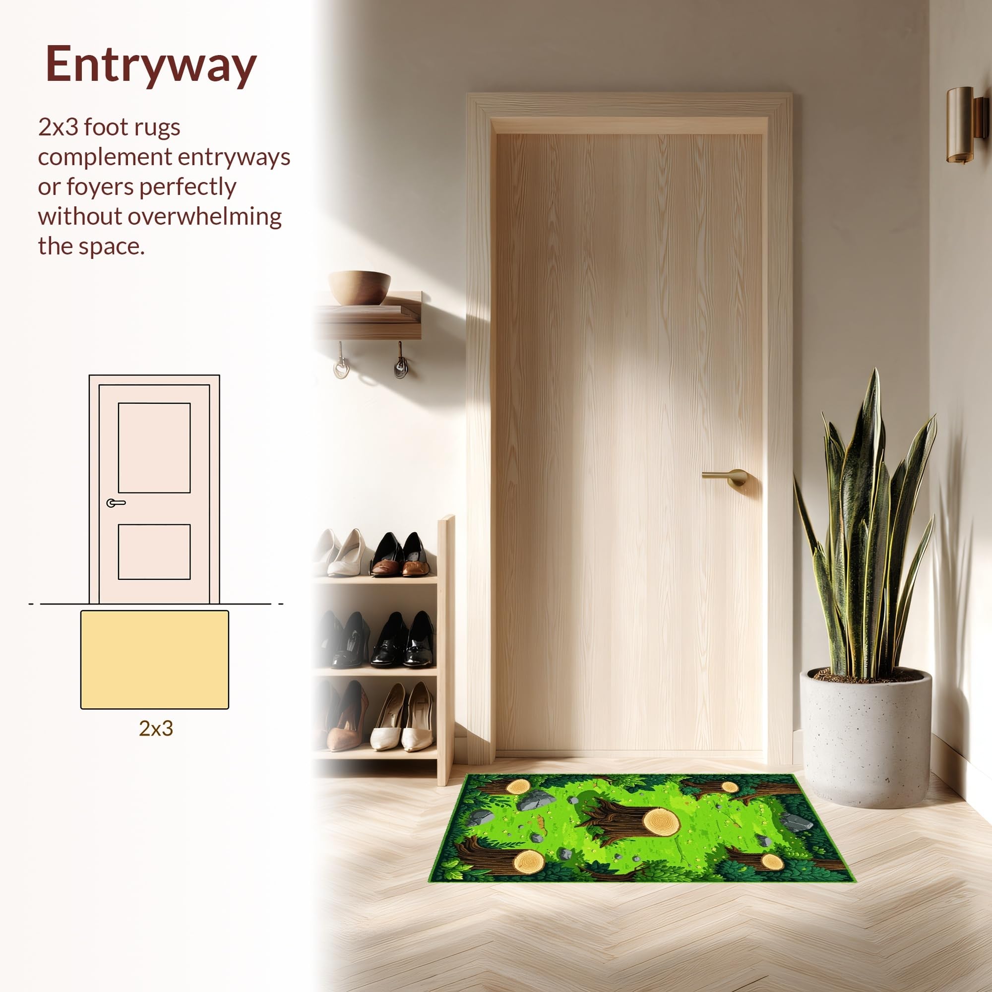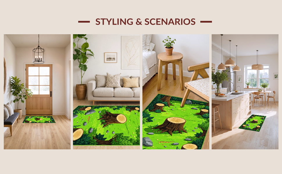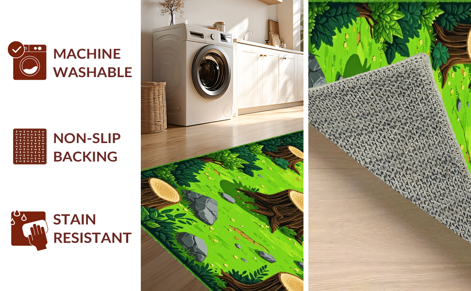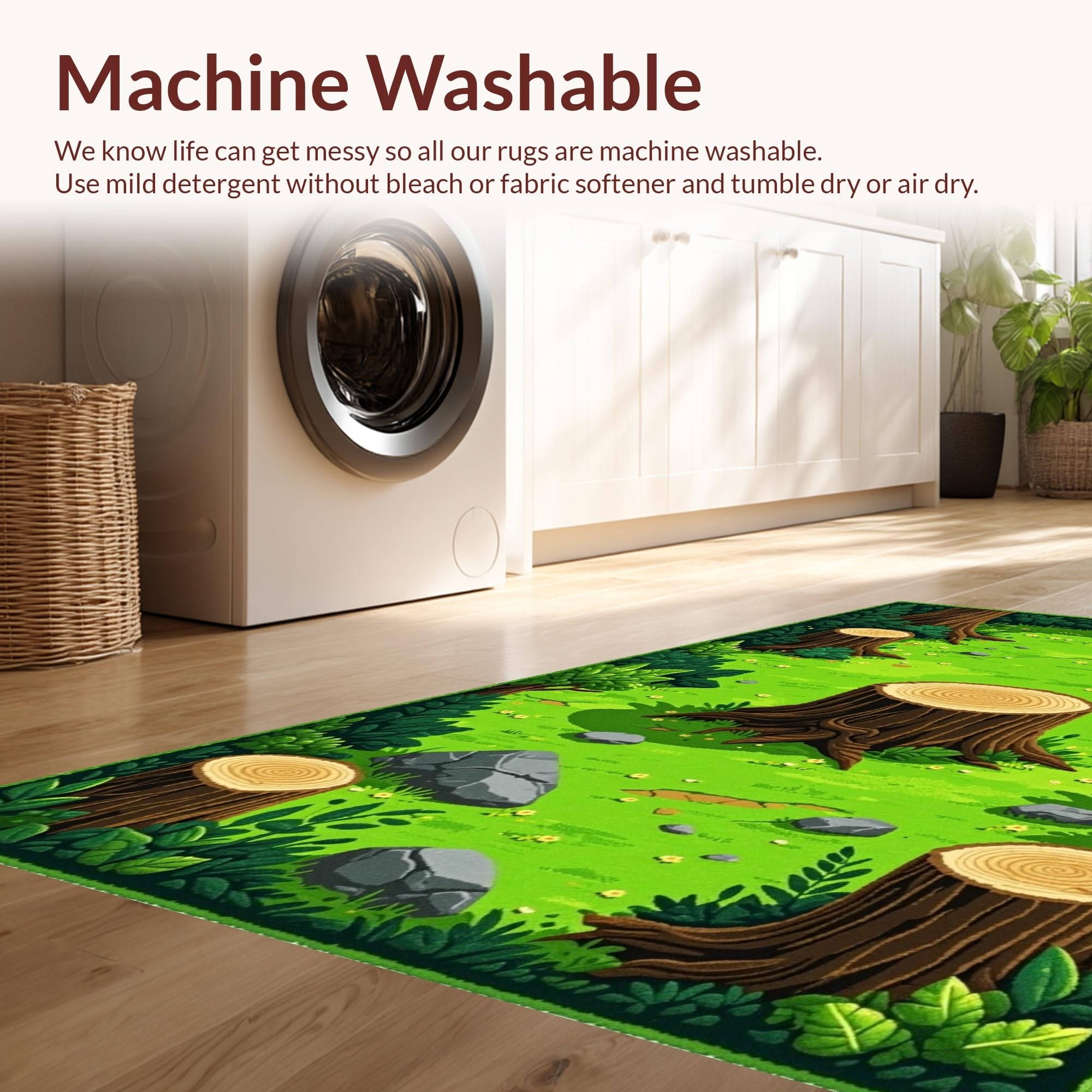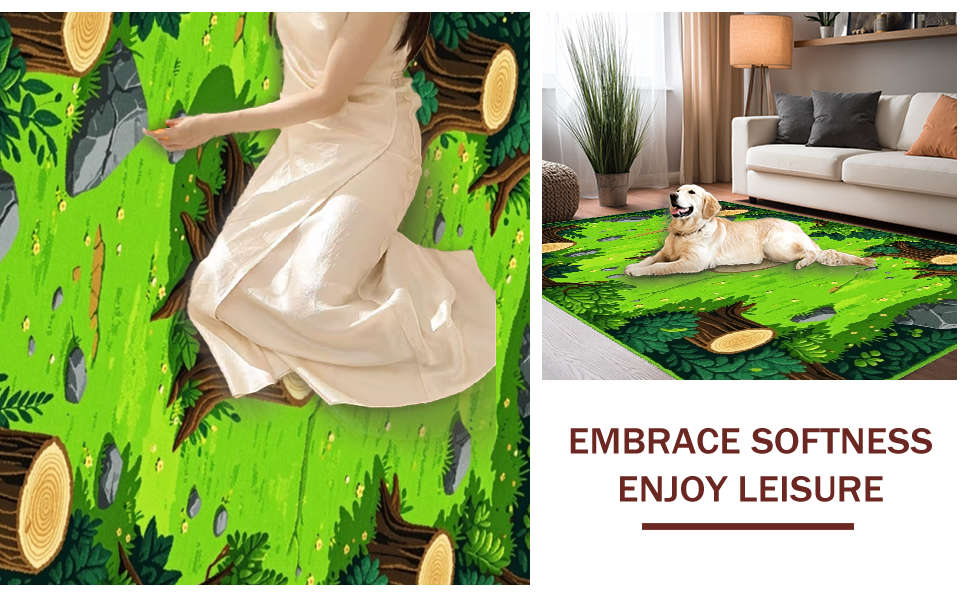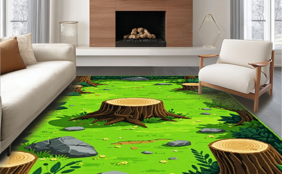Ultra Soft Area Rug, Non Slip, Stain Resistant, Washable Area Rugs for Living Room, Bedroom, Joyful Cartoonish Outdoor Scene(Green) Overview: