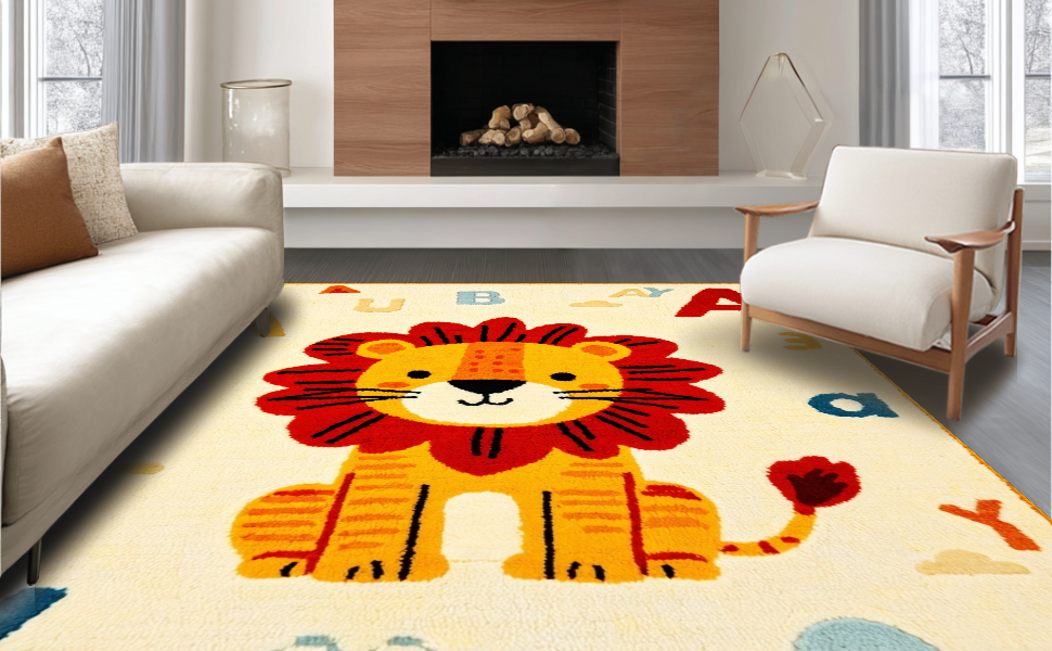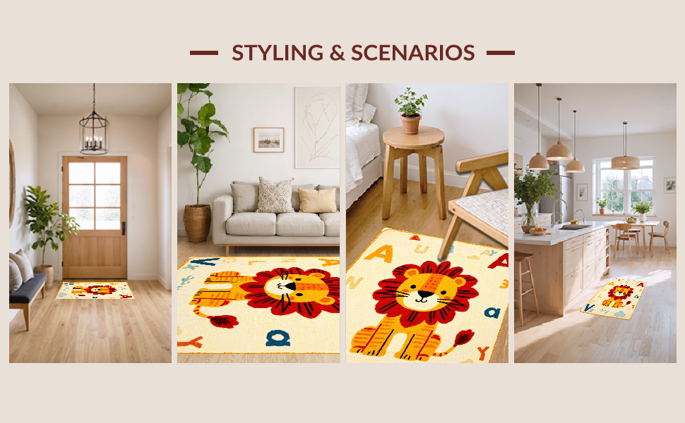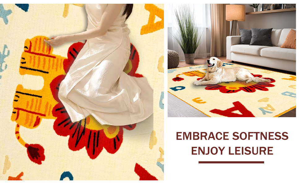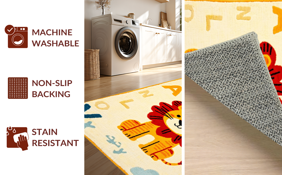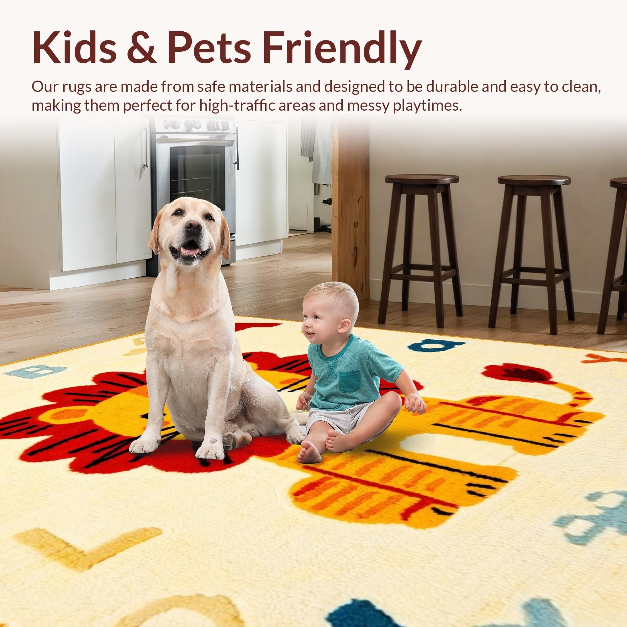 Ultra Soft Area Rug, Non Slip, Stain Resistant, Washable Area Rugs for Living Room, Bedroom, Joyful Child-Friendly Visuals(Beige) Overview:
