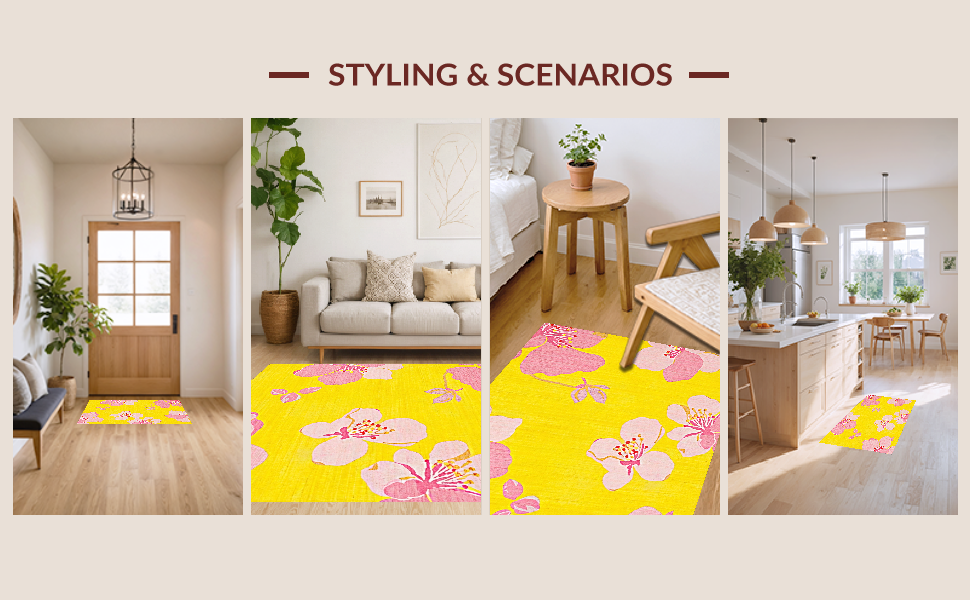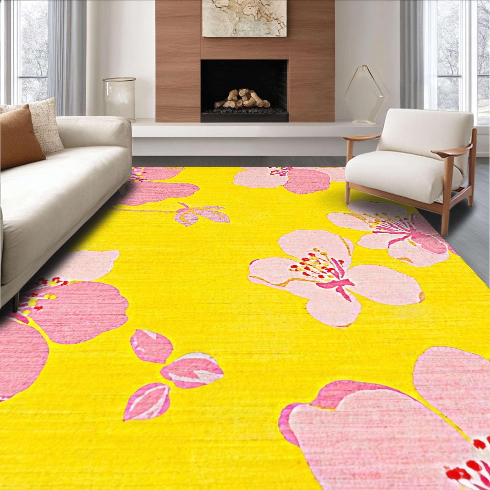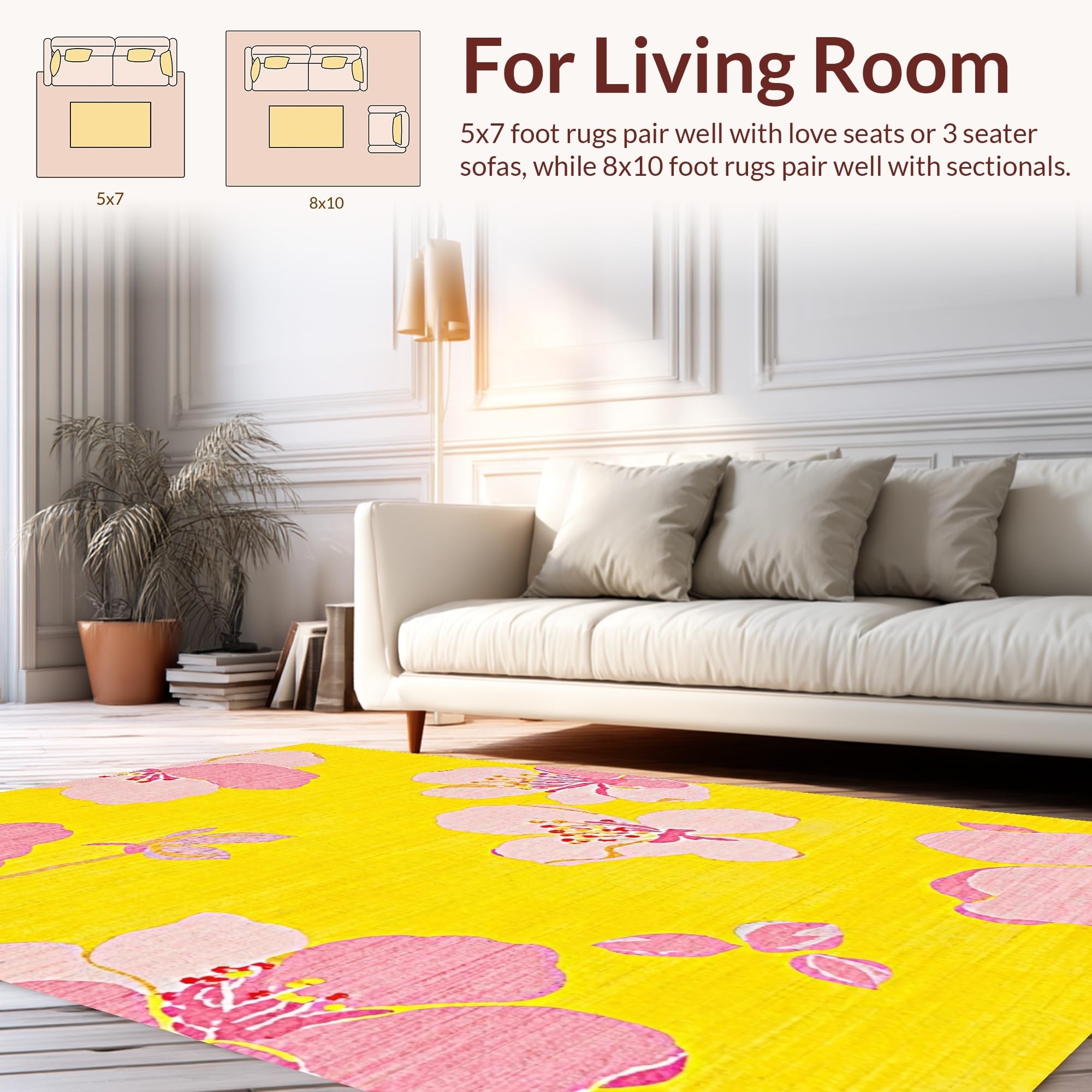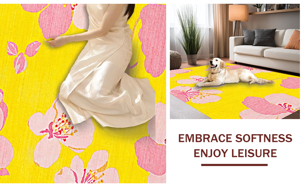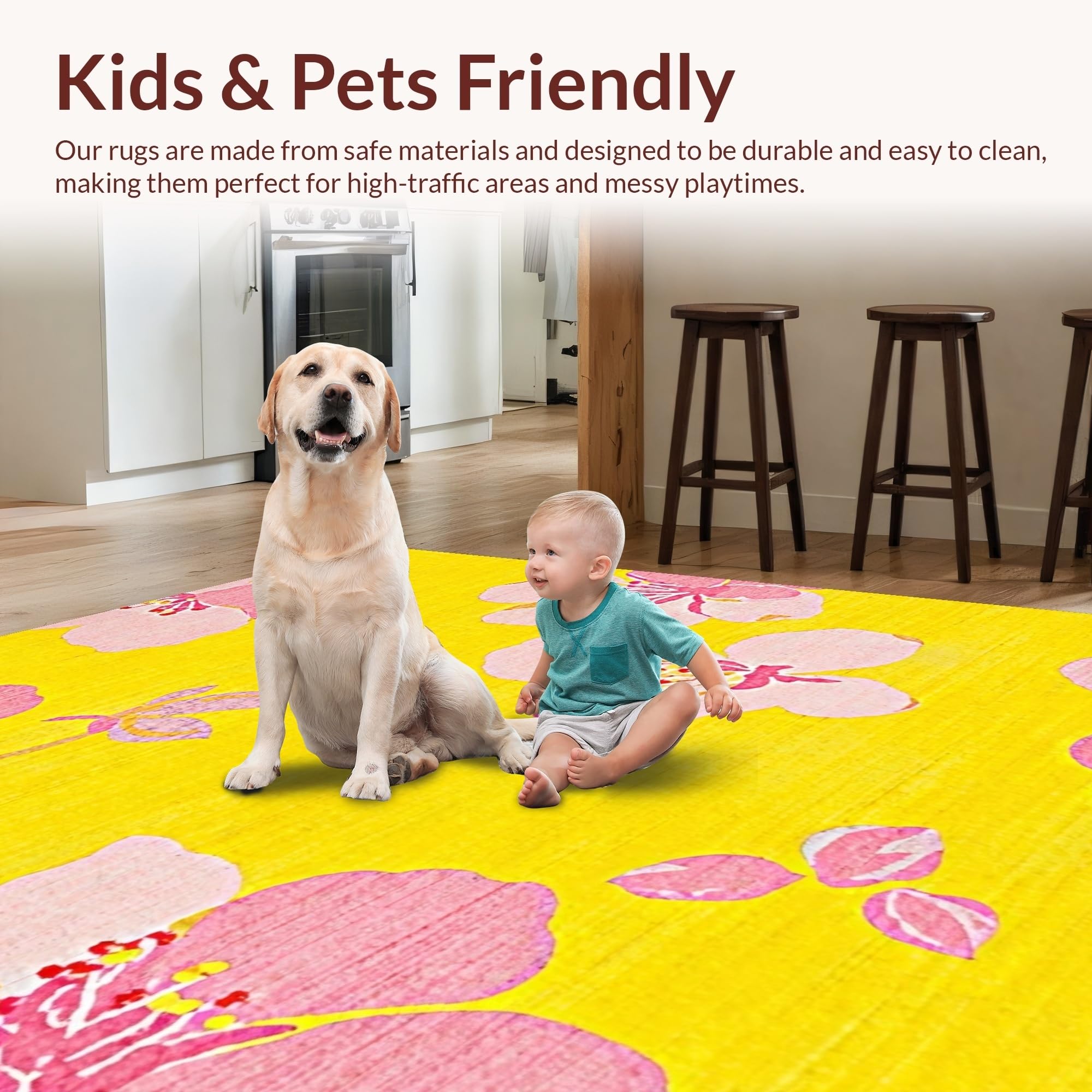 Ultra Soft Area Rug, Non Slip, Stain Resistant, Washable Area Rugs for Living Room, Bedroom, Joyful Circular Floral Fusion(Yellow) Overview: