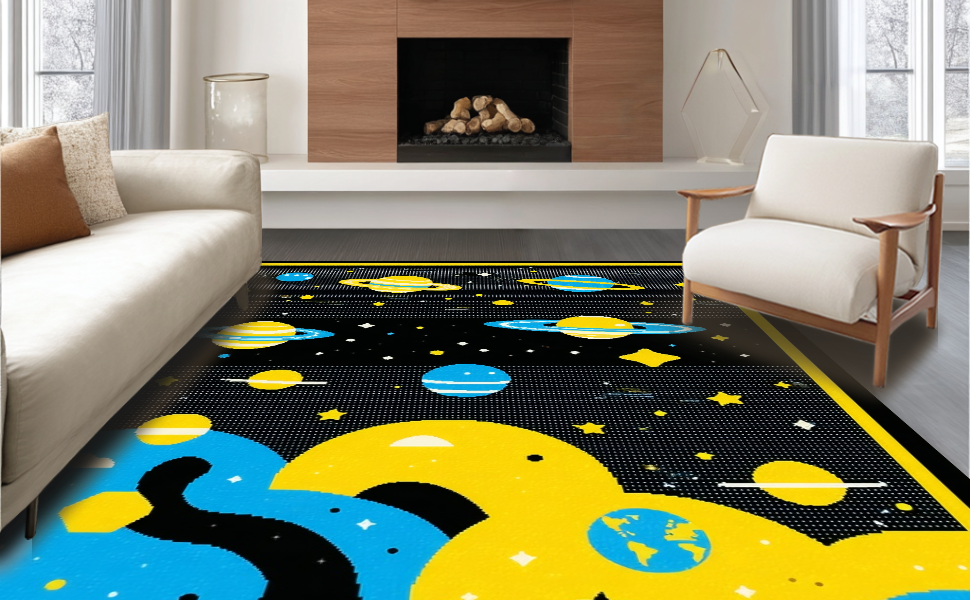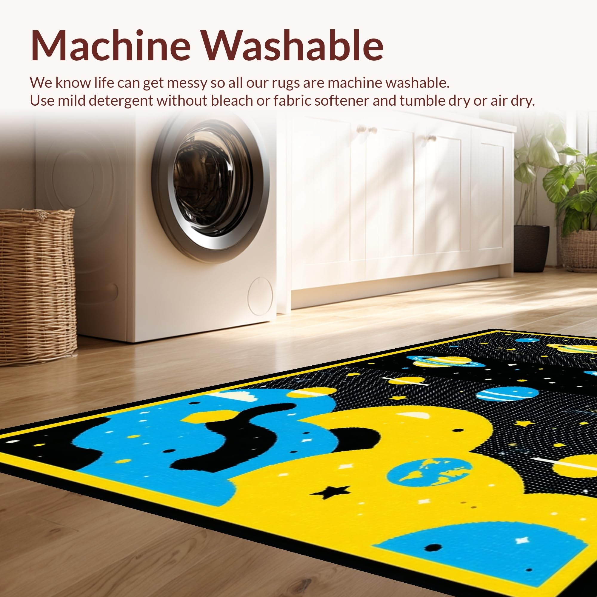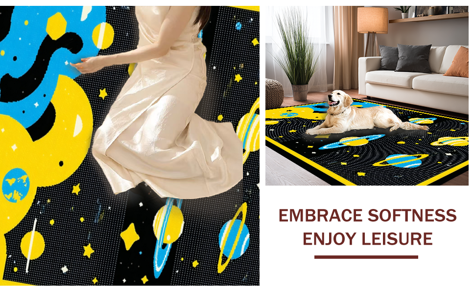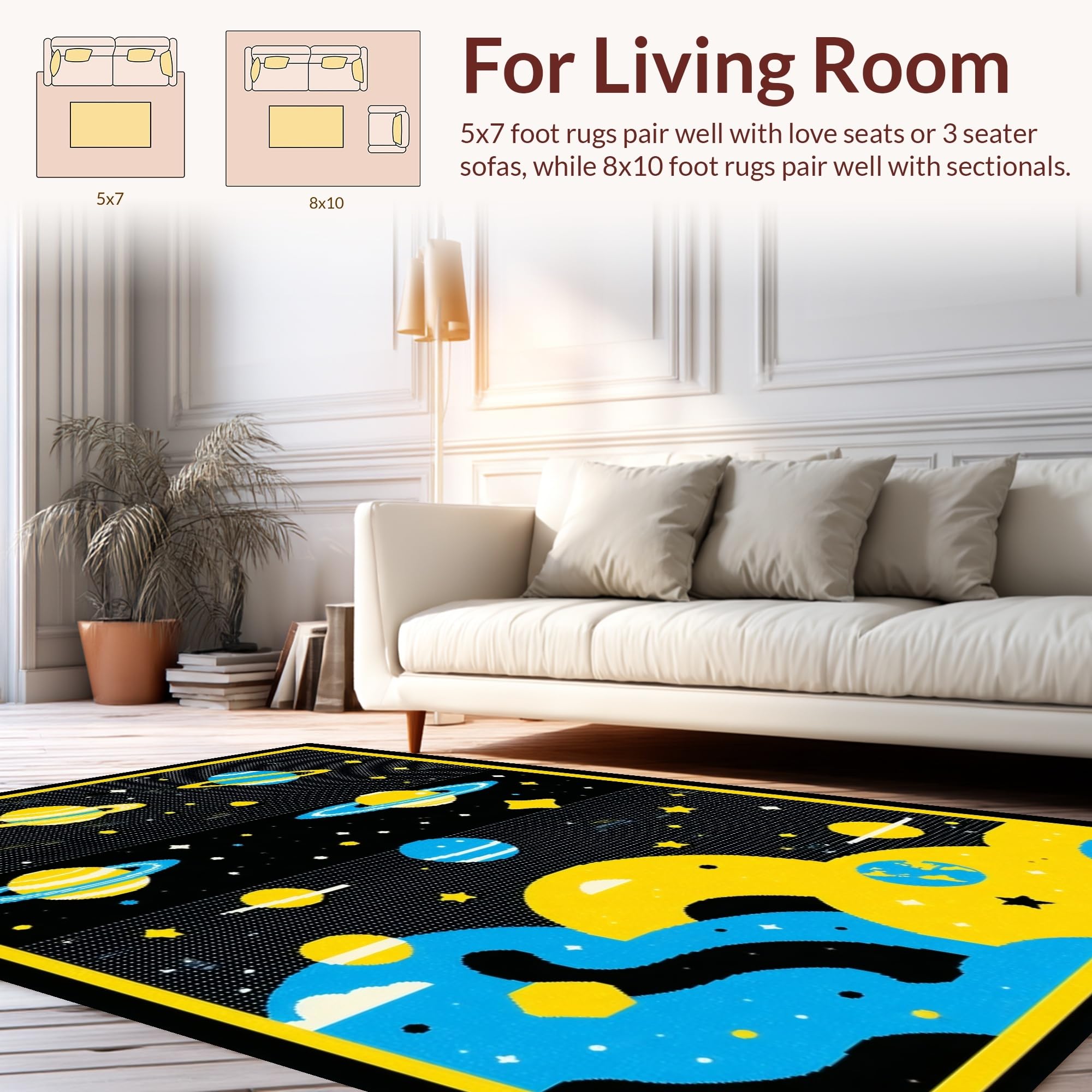 Ultra Soft Area Rug, Non Slip, Stain Resistant, Washable Area Rugs for Living Room, Bedroom, Joyful Cosmic Discovery Visuals(Black) Overview: