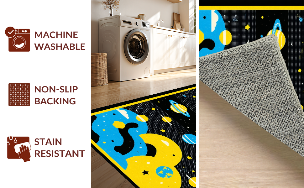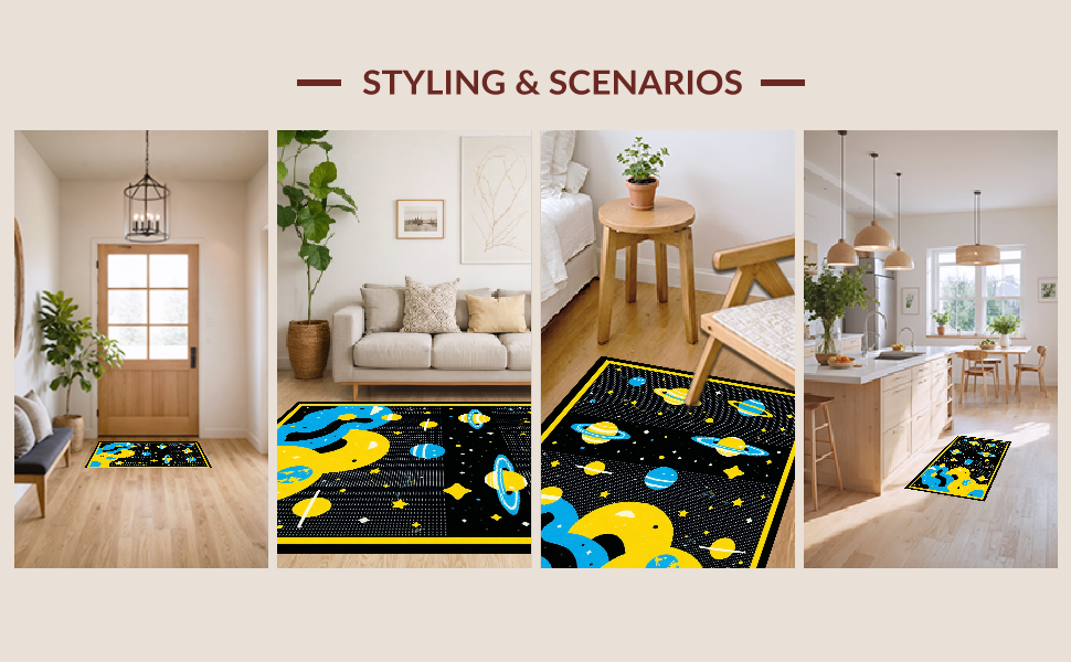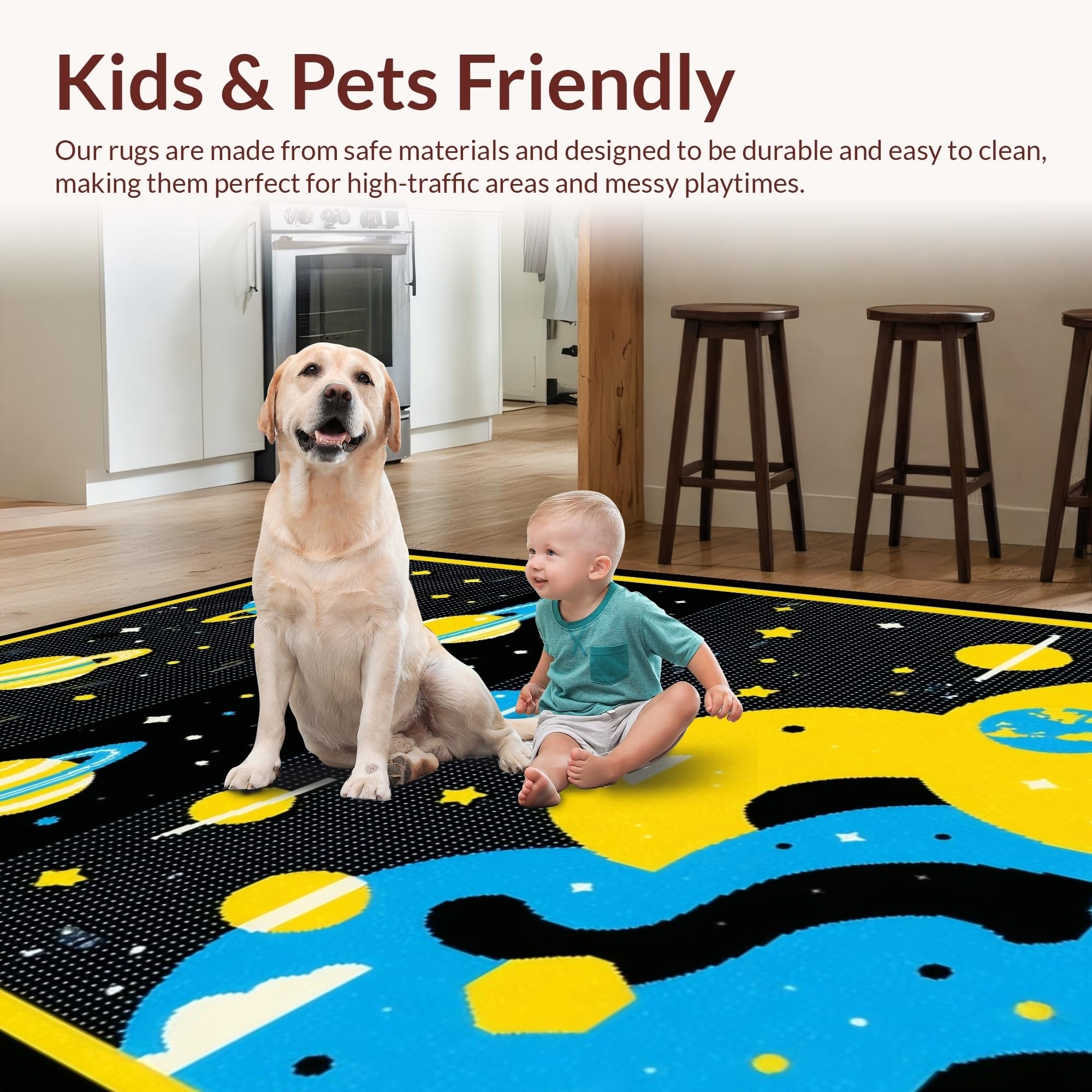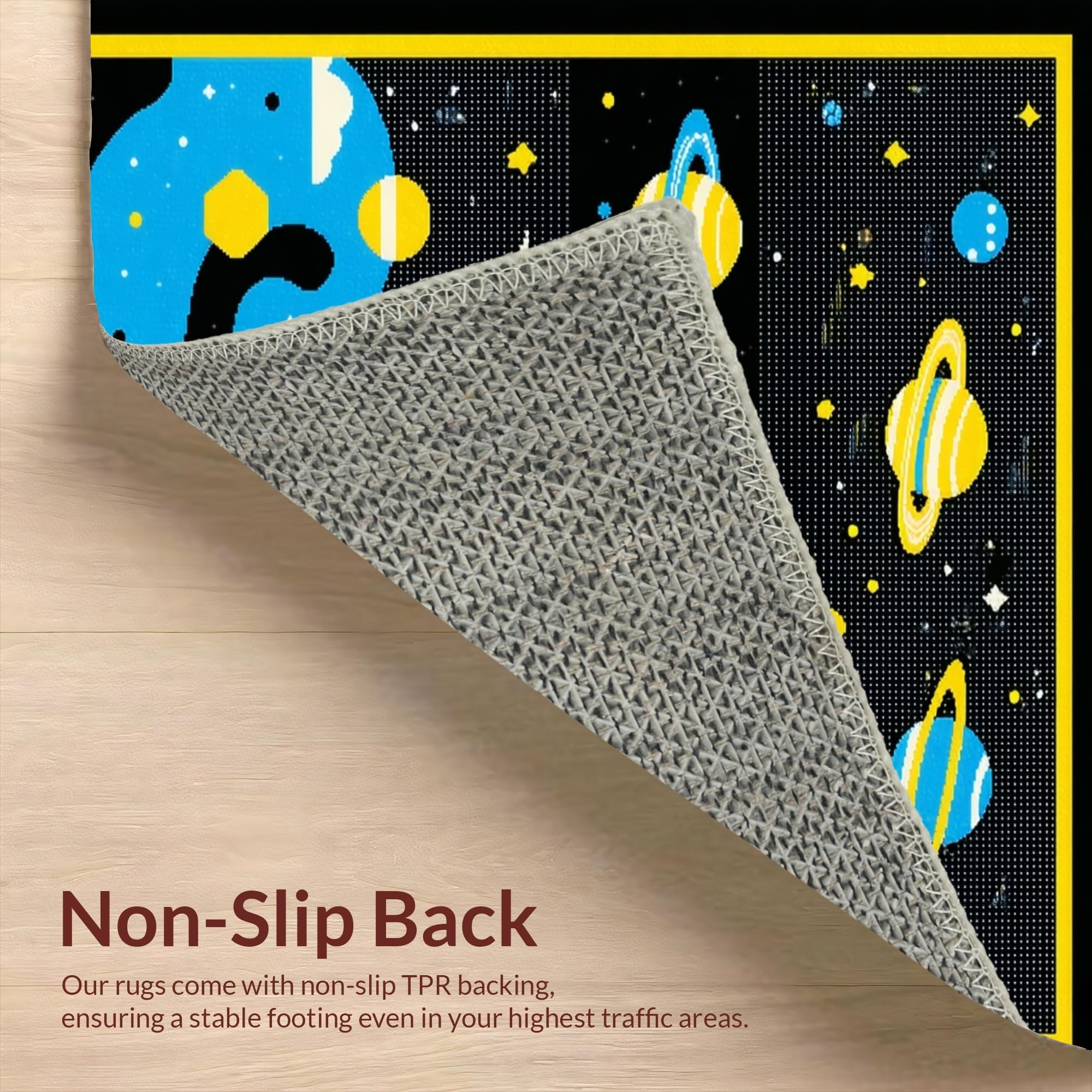 Ultra Soft Area Rug, Non Slip, Stain Resistant, Washable Area Rugs for Living Room, Bedroom, Joyful Cosmic Discovery Visuals(Black) Overview: