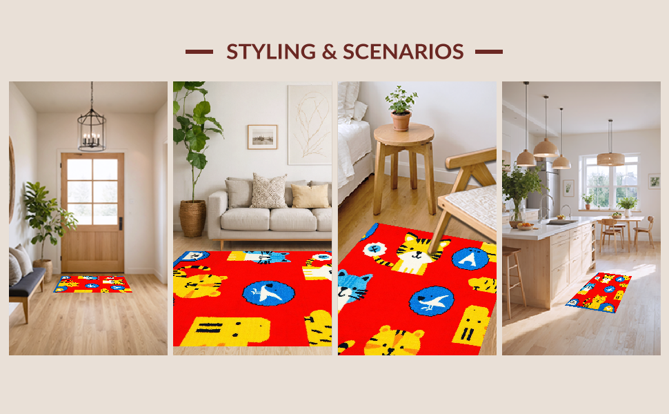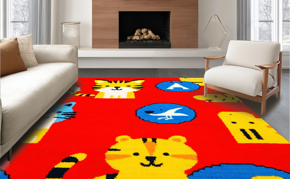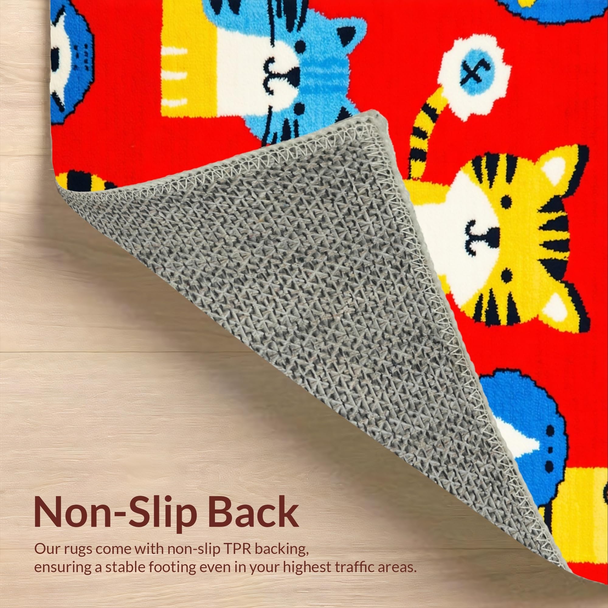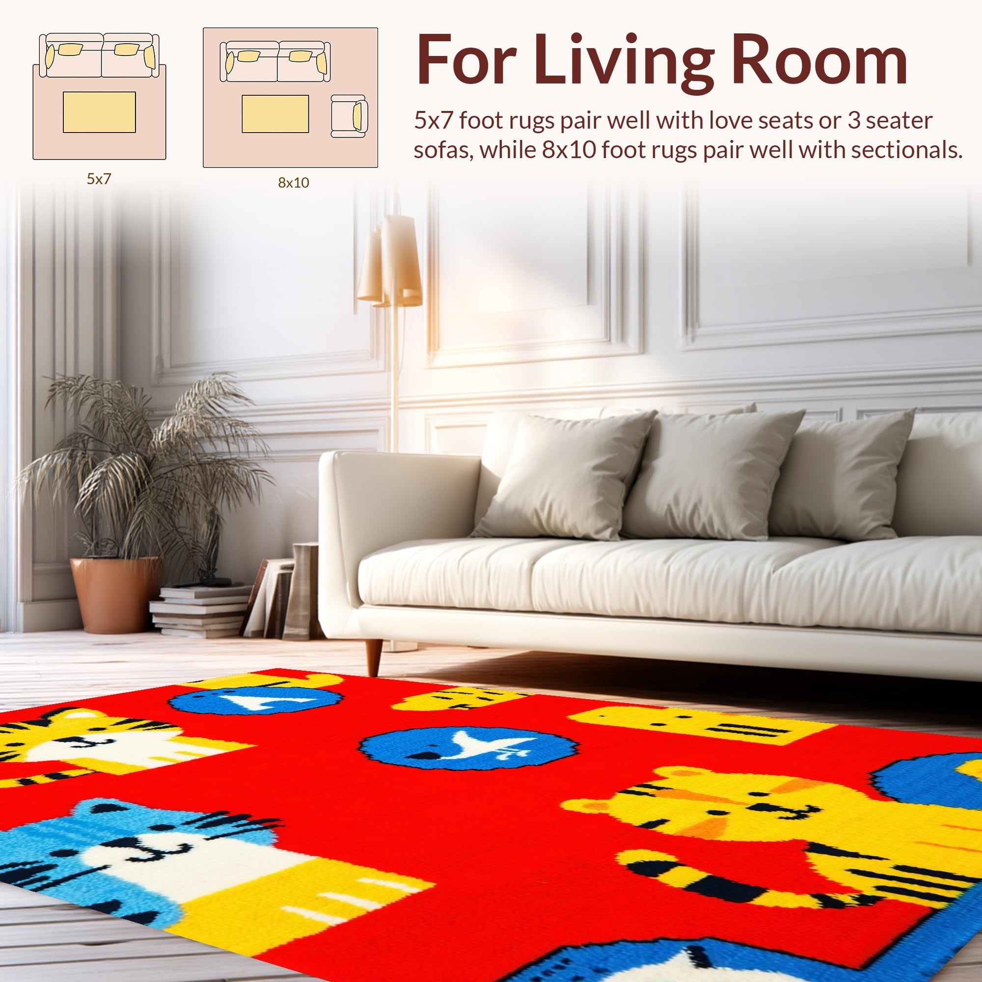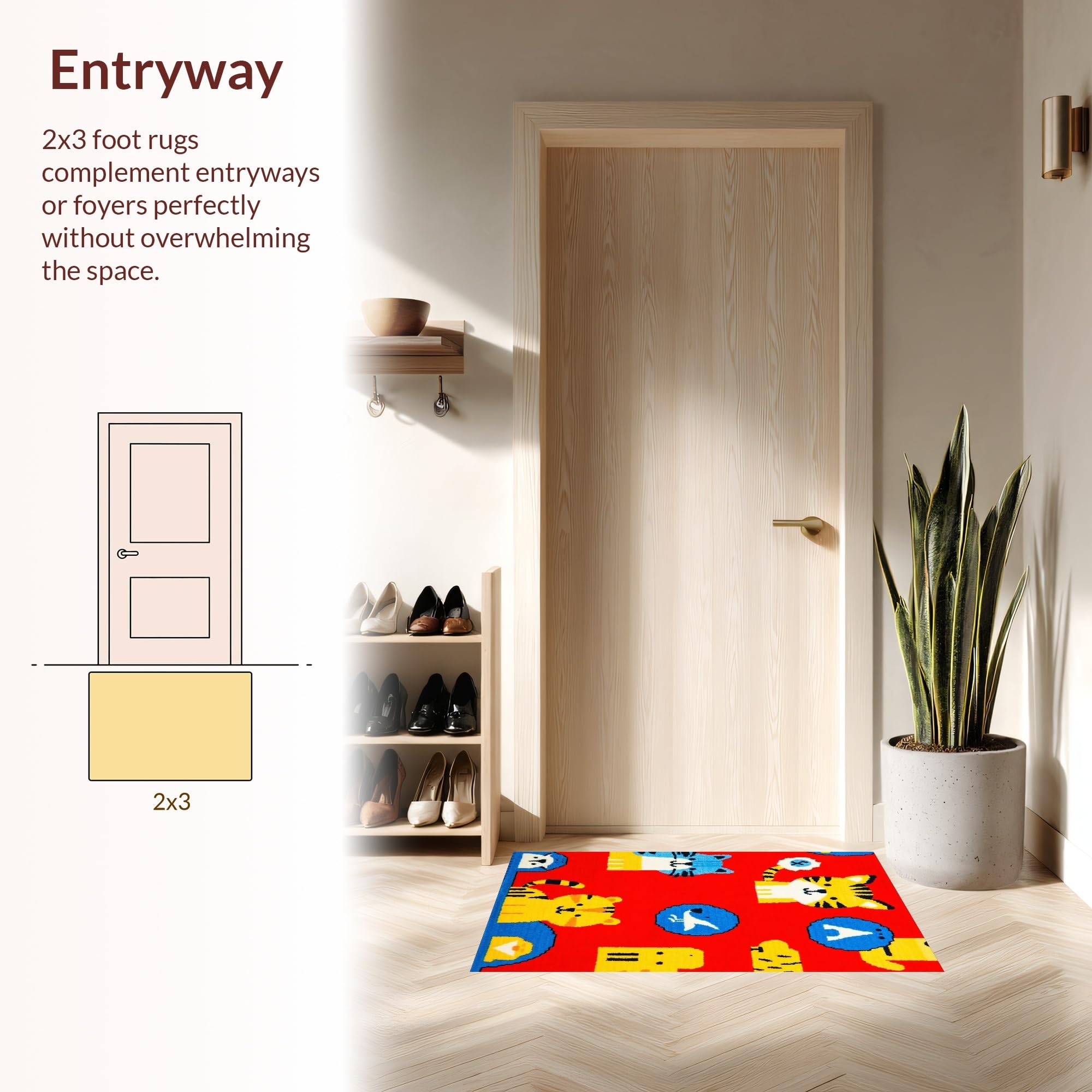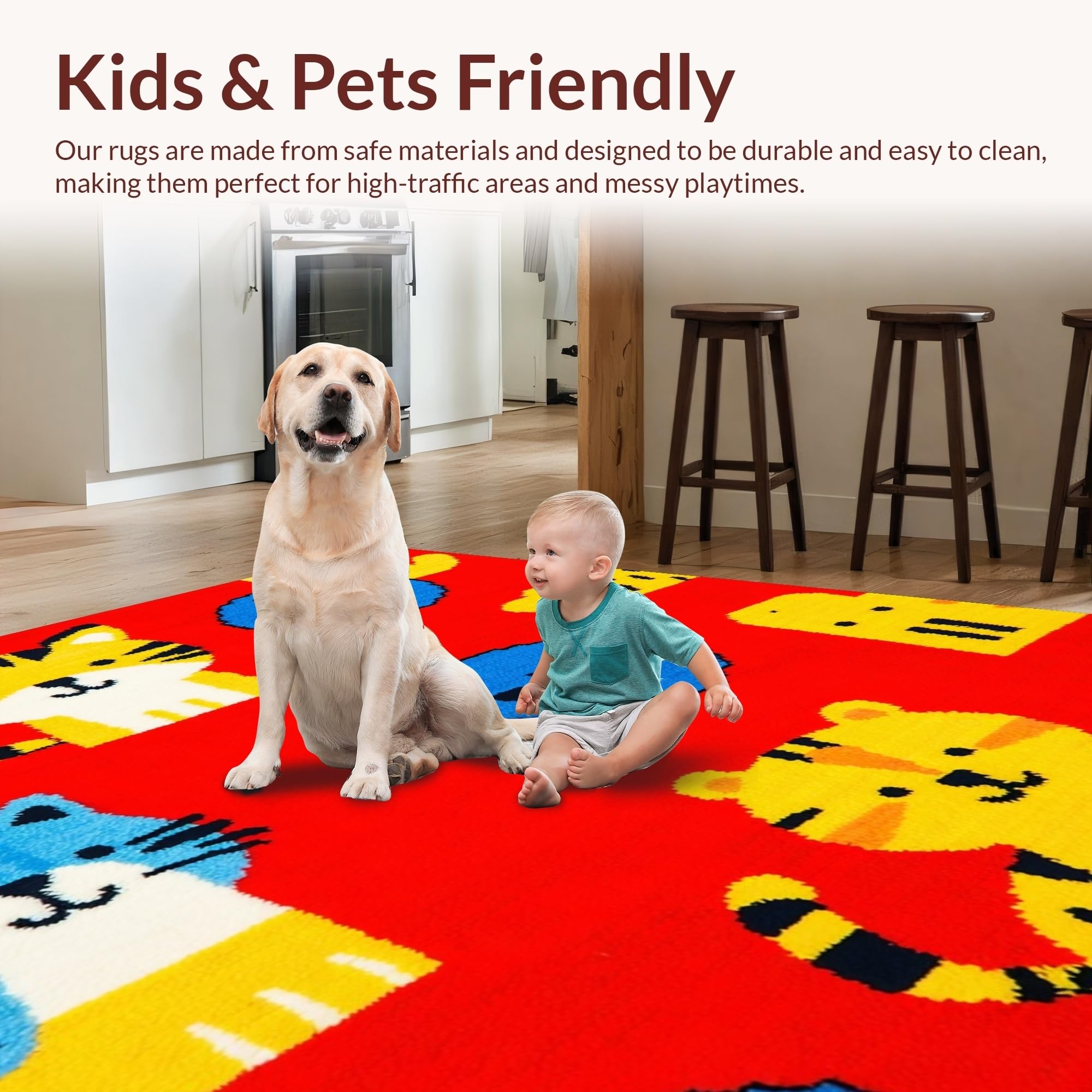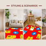 Ultra Soft Area Rug, Non Slip, Stain Resistant, Washable Area Rugs for Living Room, Bedroom, Joyful Educational Graphic Elements(Red) Overview: