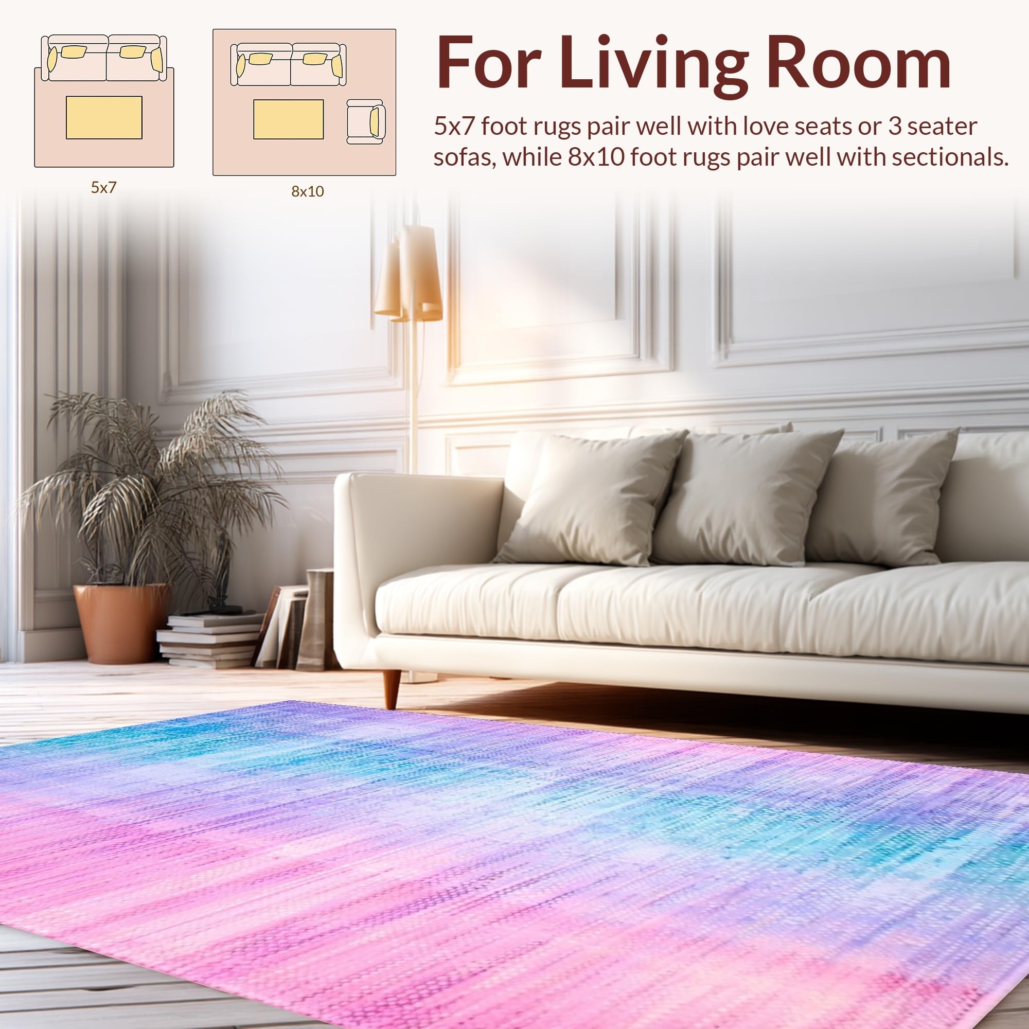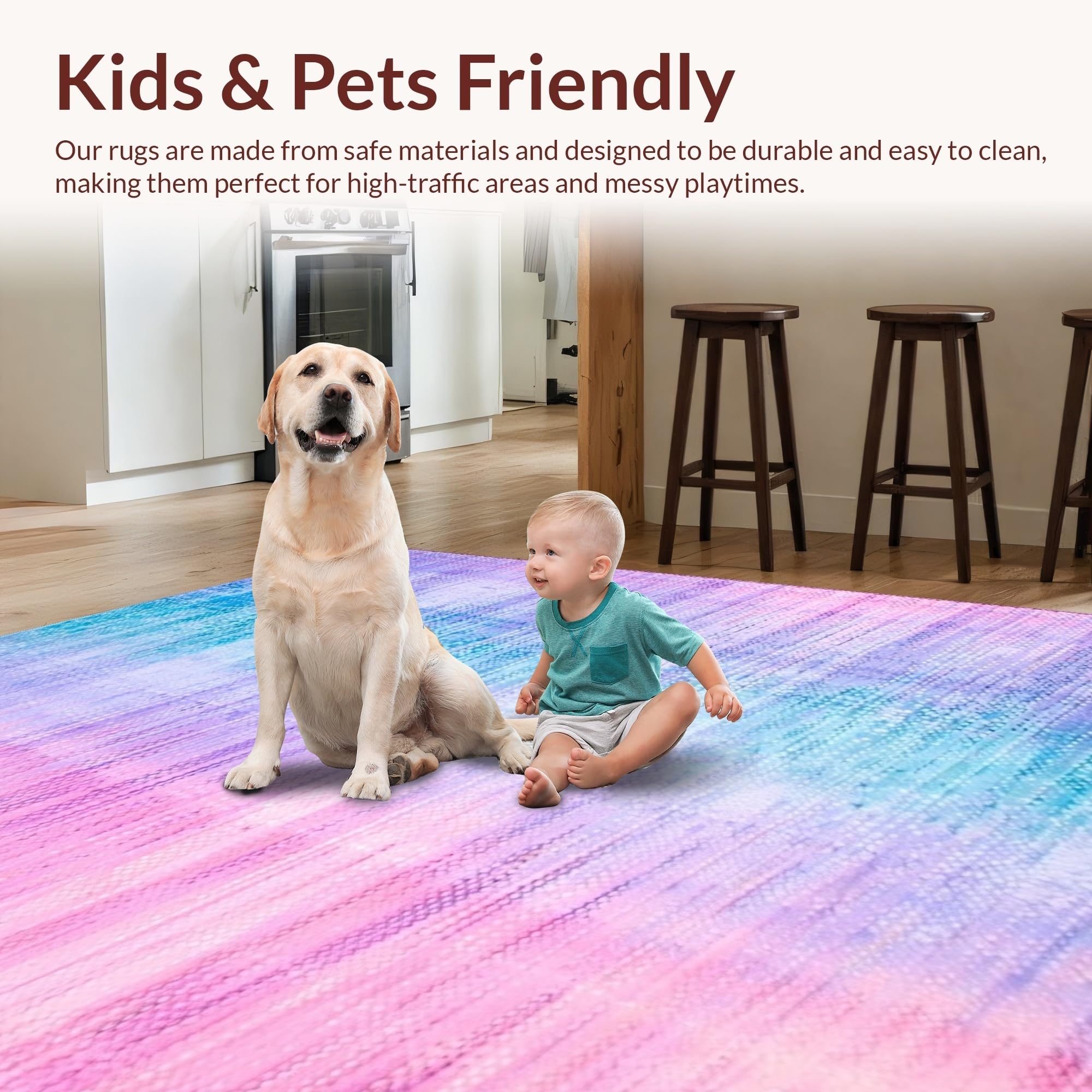 Ultra Soft Area Rug, Non Slip, Stain Resistant, Washable Area Rugs for Living Room, Bedroom, Joyful Ethereal Pastel Motif(Pink) Overview: