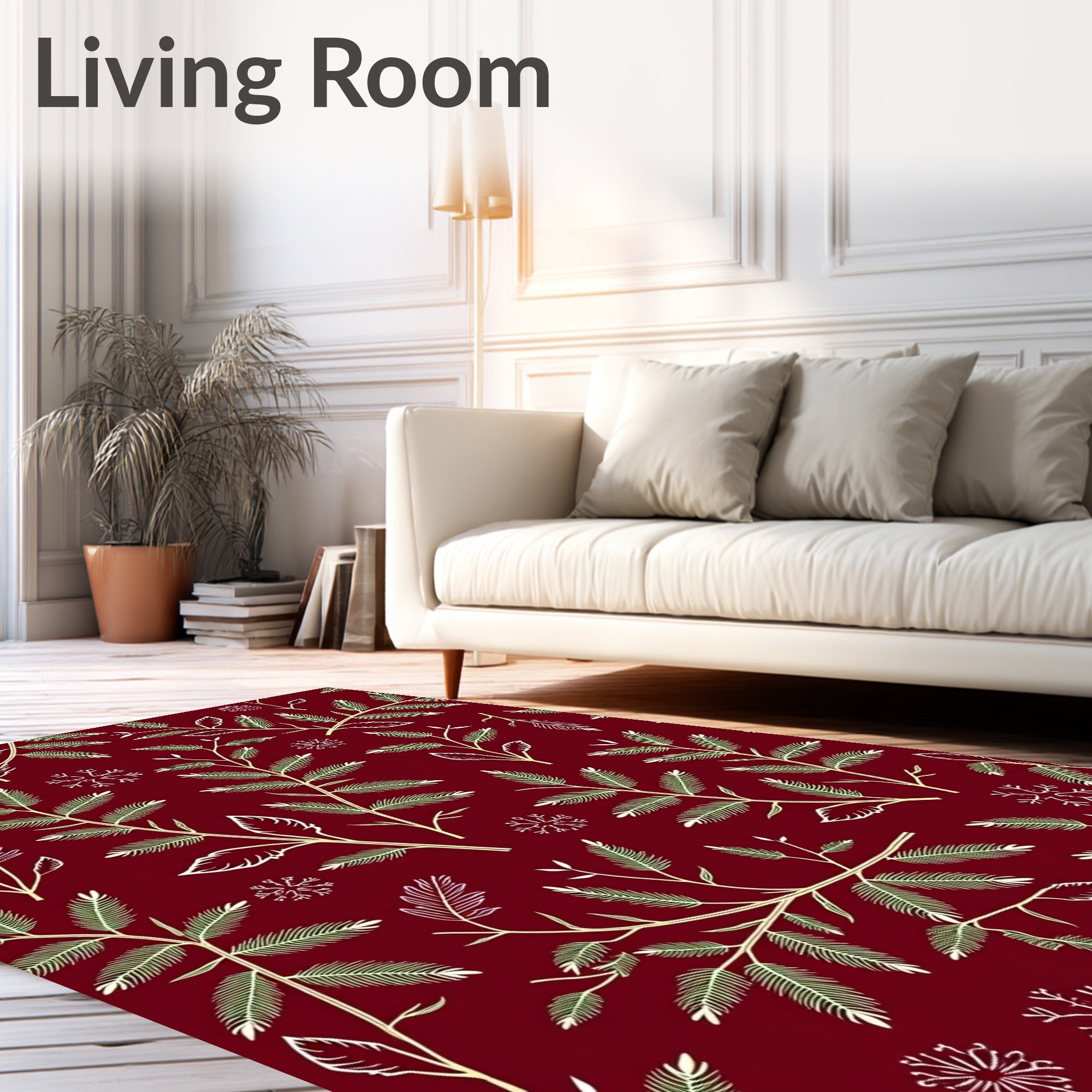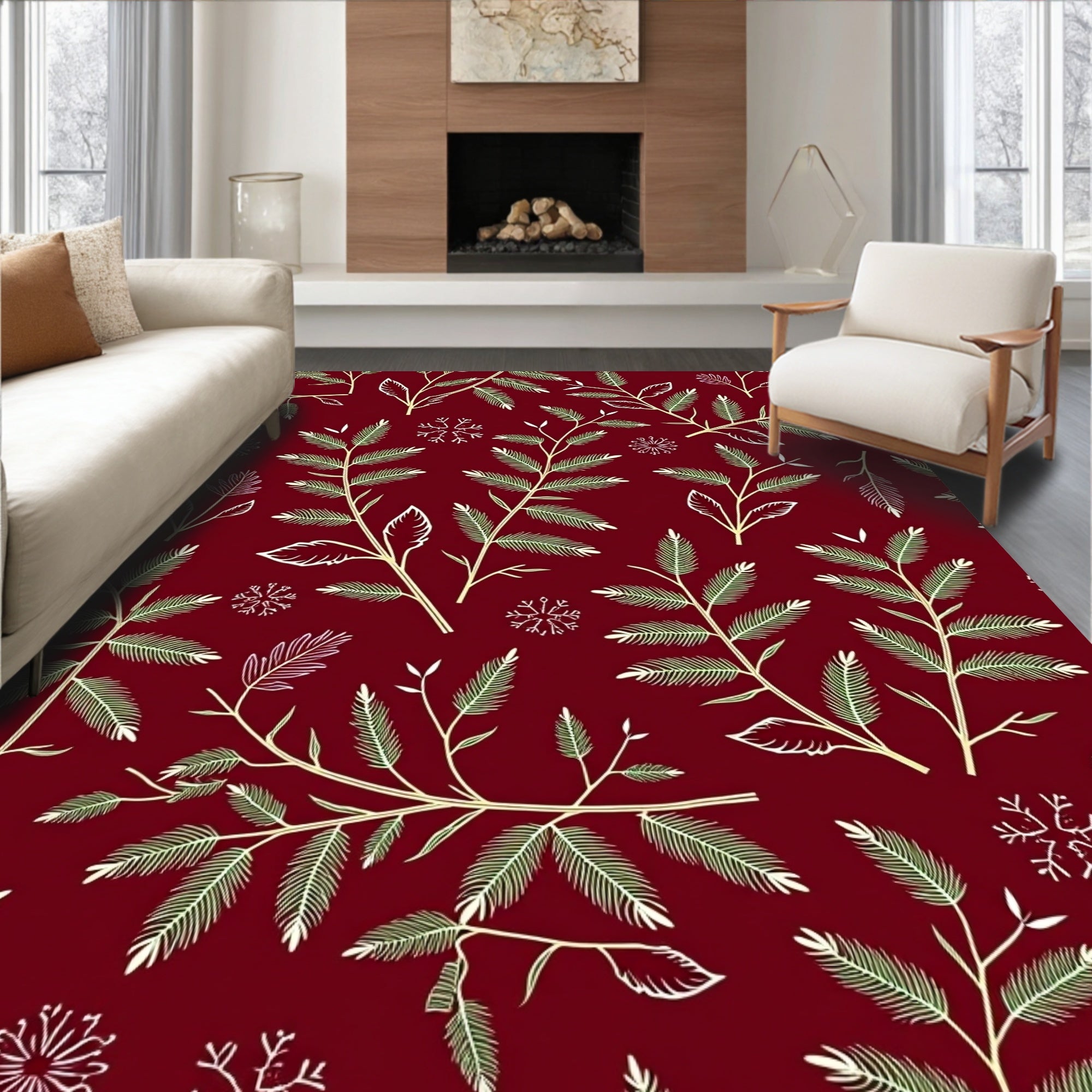 Ultra Soft Area Rug, Non Slip, Stain Resistant, Washable Area Rugs for Living Room, Bedroom, Joyful Evergreen Bough Seasonal Accent Path Cover(Red) Overview: