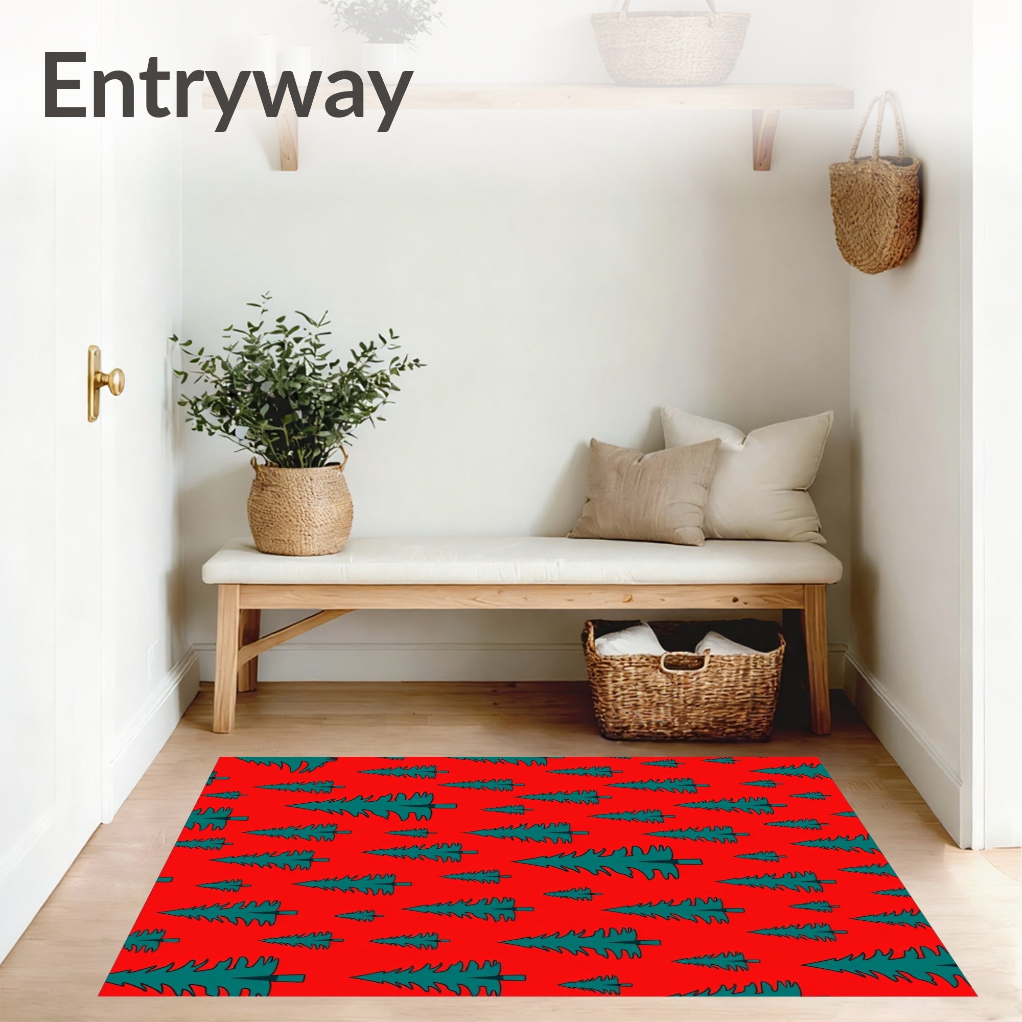 Ultra Soft Area Rug, Non Slip, Stain Resistant, Washable Area Rugs for Living Room, Bedroom, Joyful Evergreen Forest Winter Celebration Pathway Accent(Red) Overview: